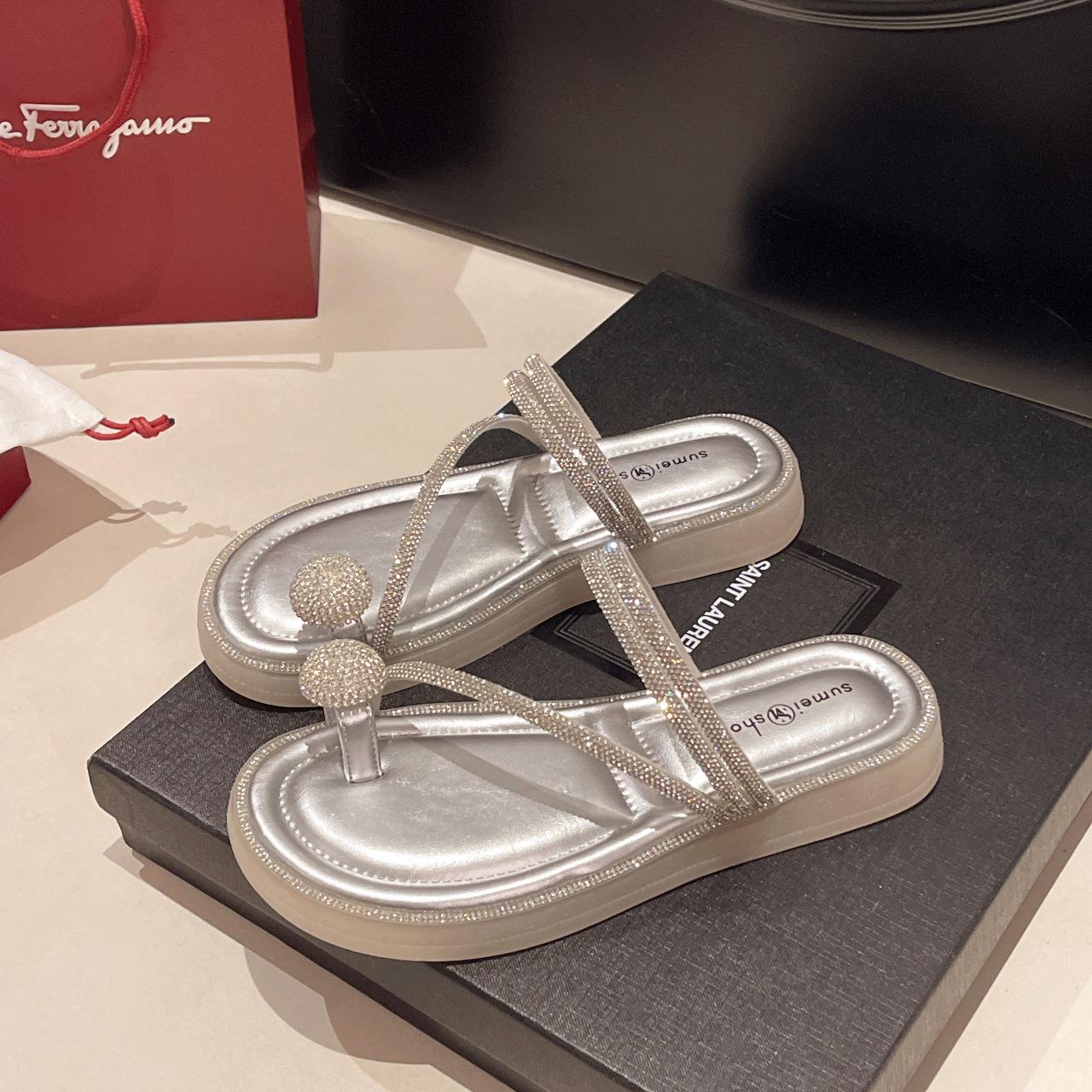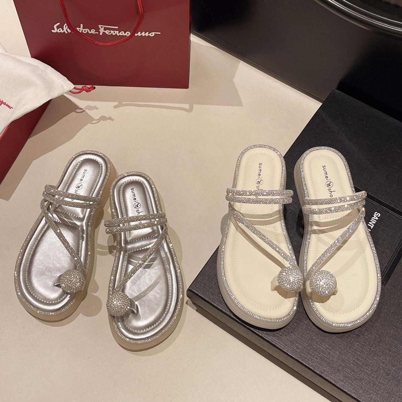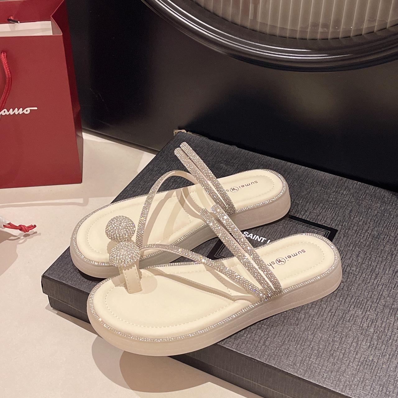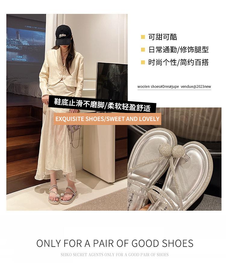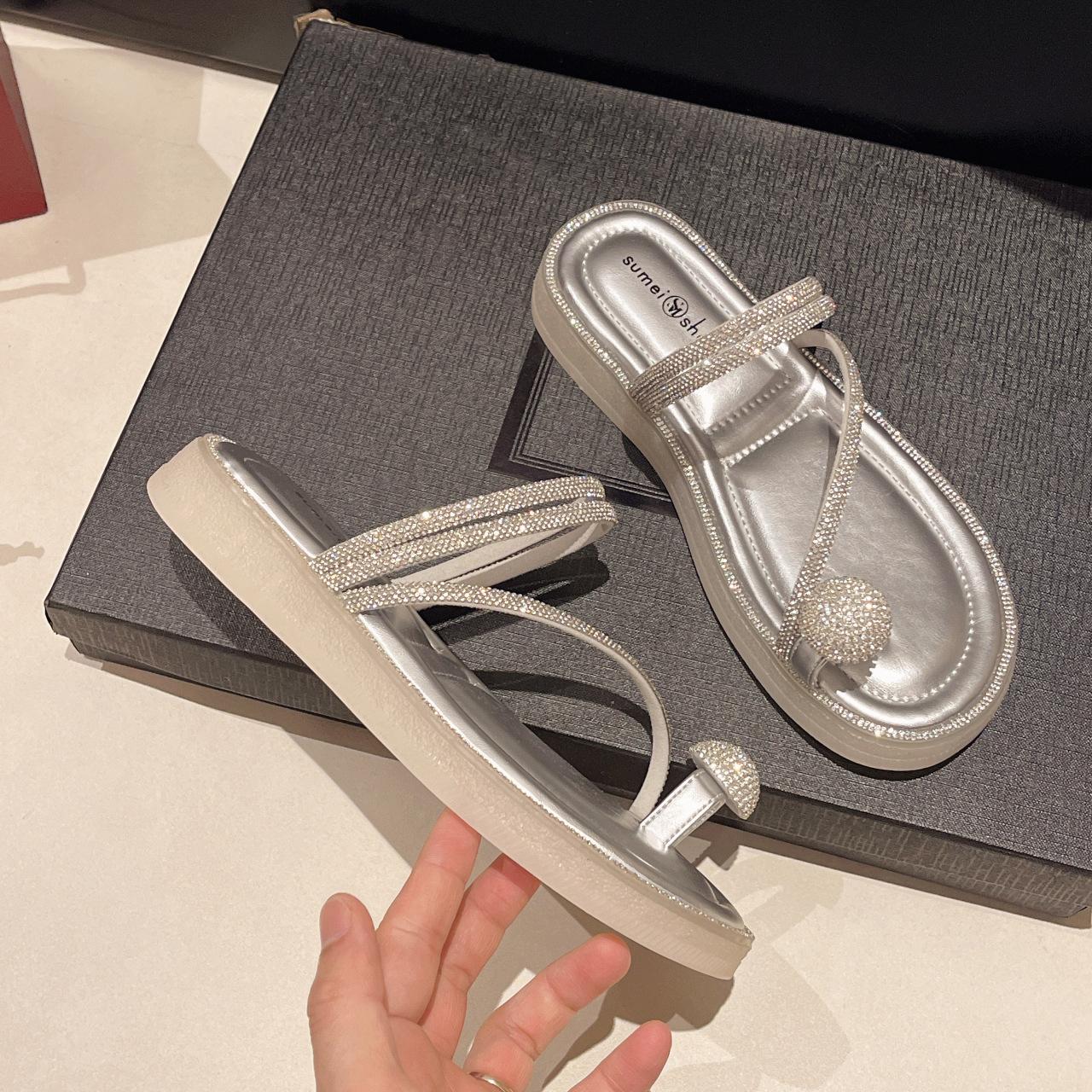 Sandalias Planas de Dedo Chanclas de Perlas para Mujer Verano para Exterior 2025 Nueva Moda Estilo Hada Sandalias de Vacaciones de Playa