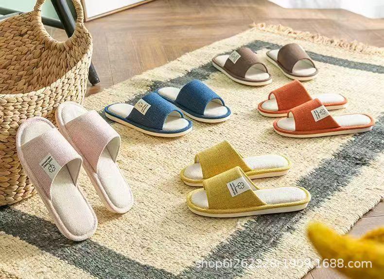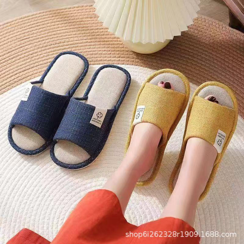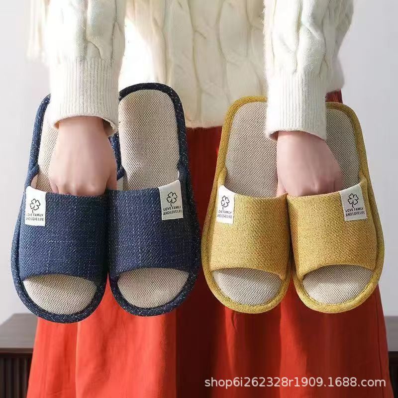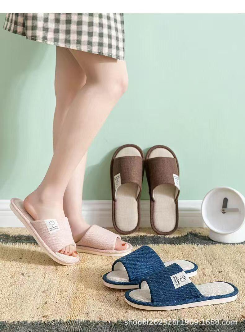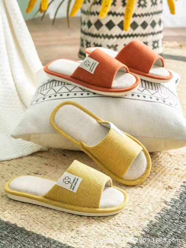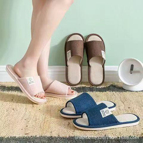 Pantuflas para Mujer Primavera y Otoño Lino Interior Algodón y Lino Hogar Hogar Cuatro Estaciones Pareja Tela Trapeadores de Piso para Hombre Verano Antideslizantes