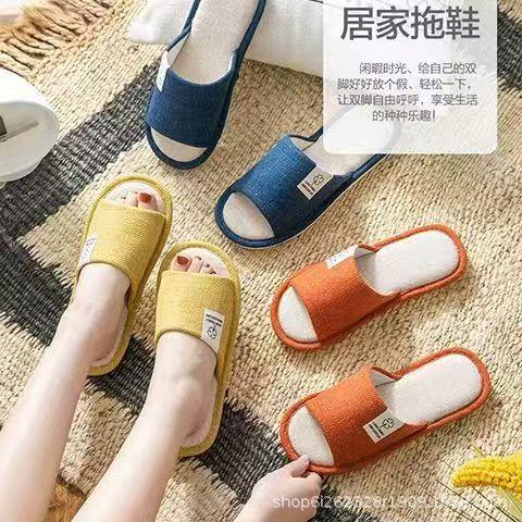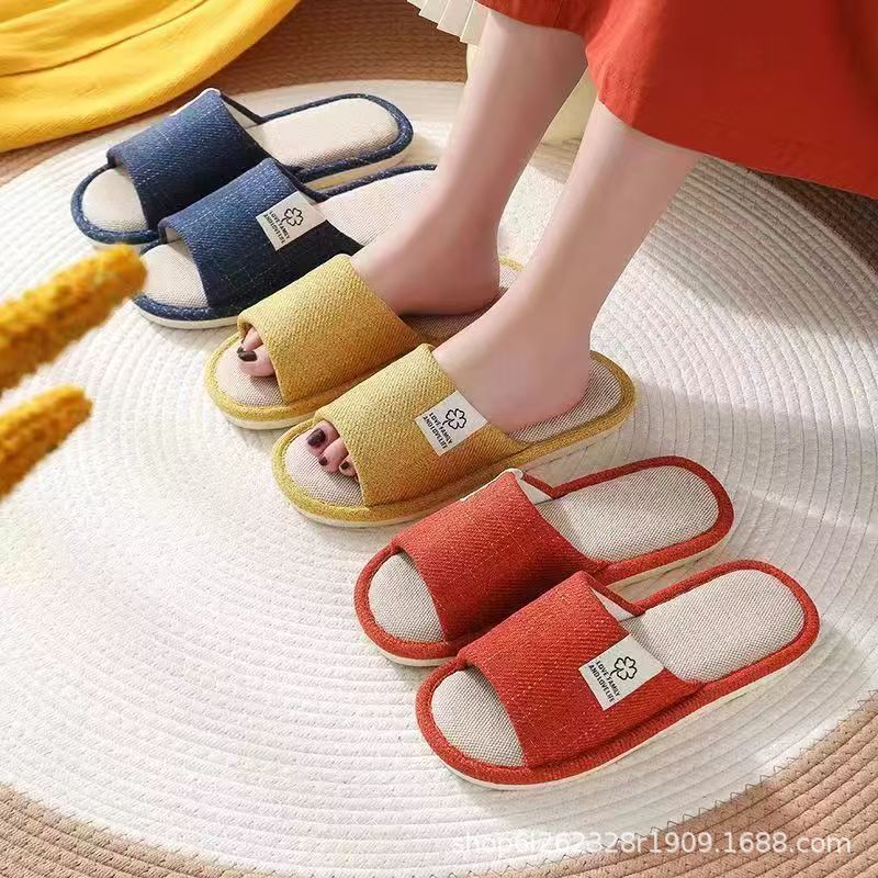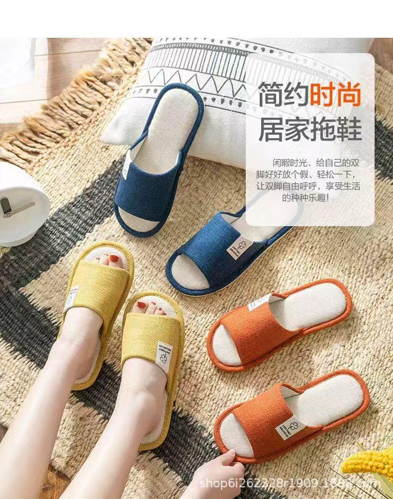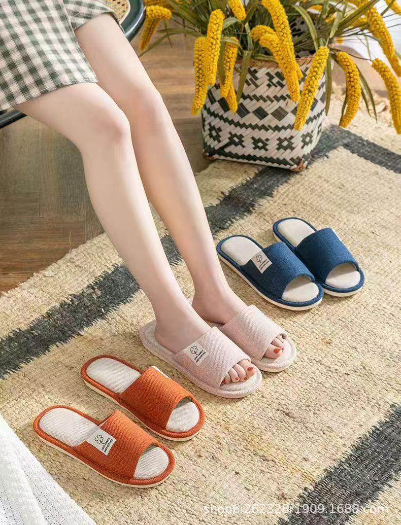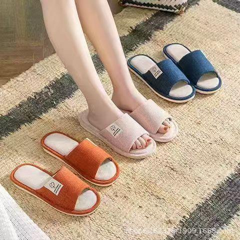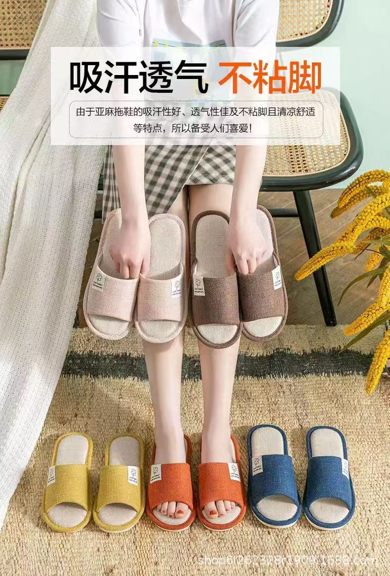 Pantuflas para Mujer Primavera y Otoño Lino Interior Algodón y Lino Hogar Hogar Cuatro Estaciones Pareja Tela Trapeadores de Piso para Hombre Verano Antideslizantes