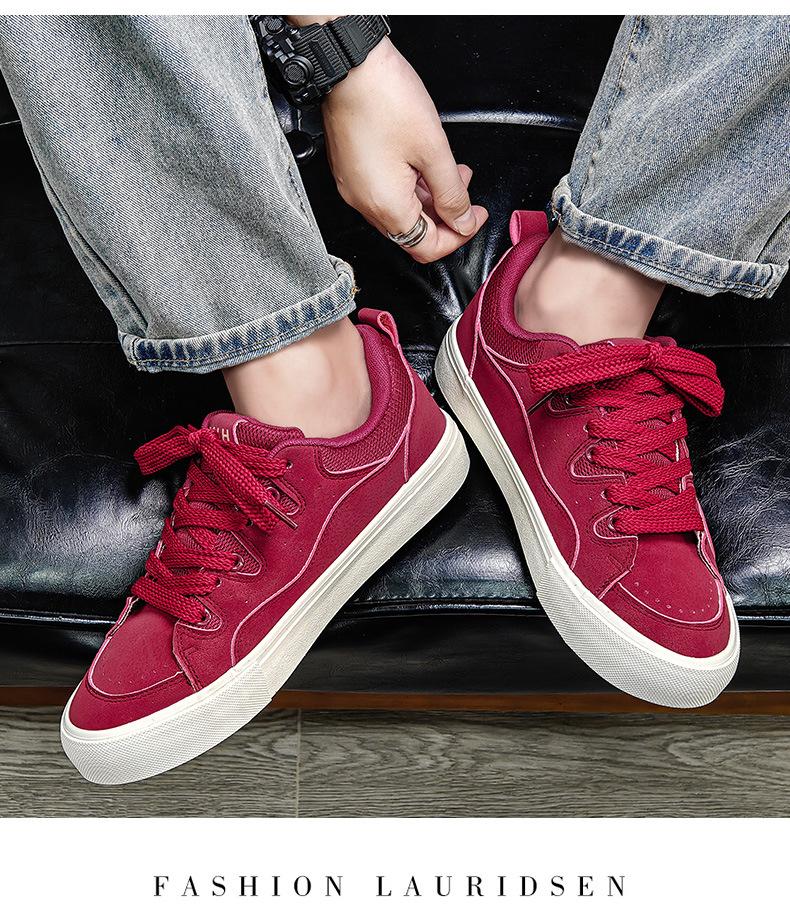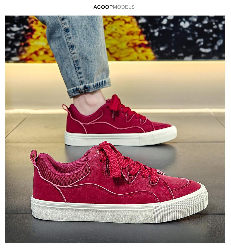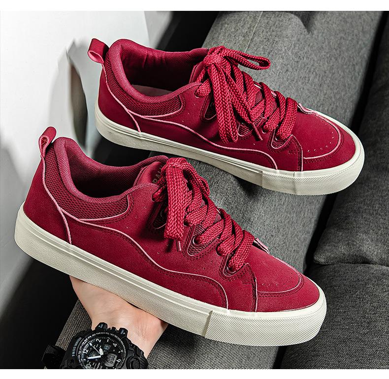 Dou Chuan Primavera Verano Nuevo Nicho Bajo Transpirable Zapatos de Lona Zapatos de Hombre Rojo Angora Zapatos Casuales de Pareja Hombre