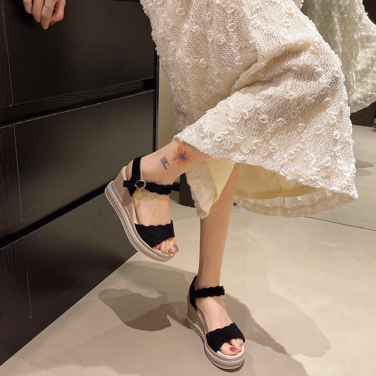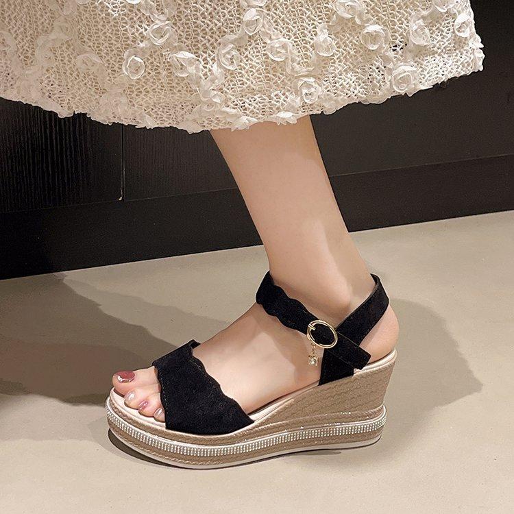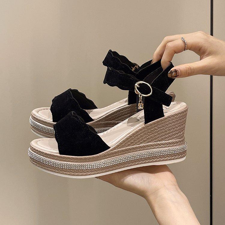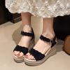 Sandalias de Cuña para Mujer Verano 2025 Cómodos Tacones Altos Casual Versátil Zapatos de Plataforma de Suela Gruesa Hebilla de Una Línea Zapatos Romanos