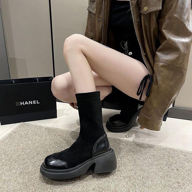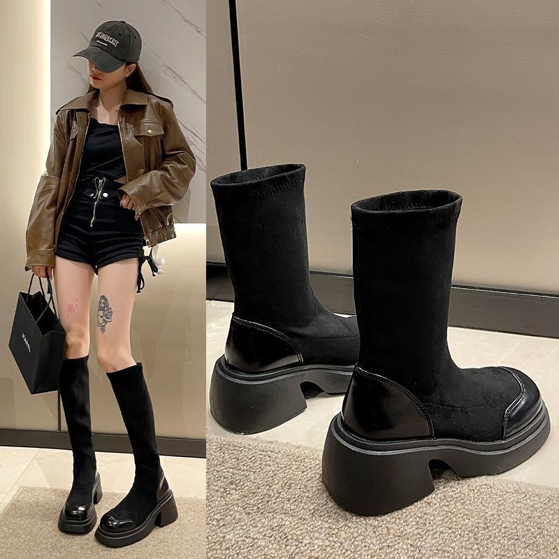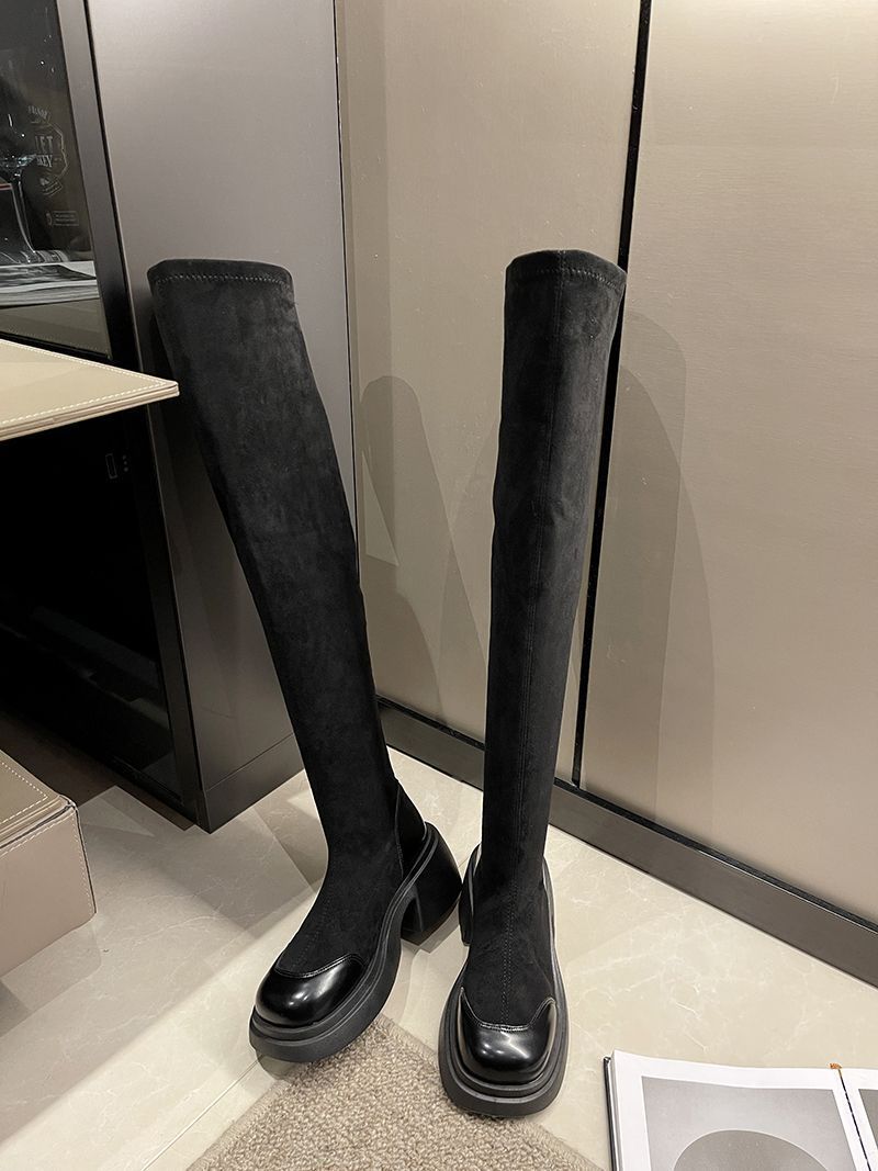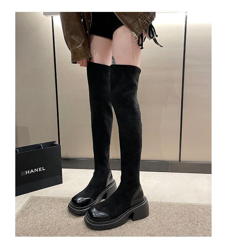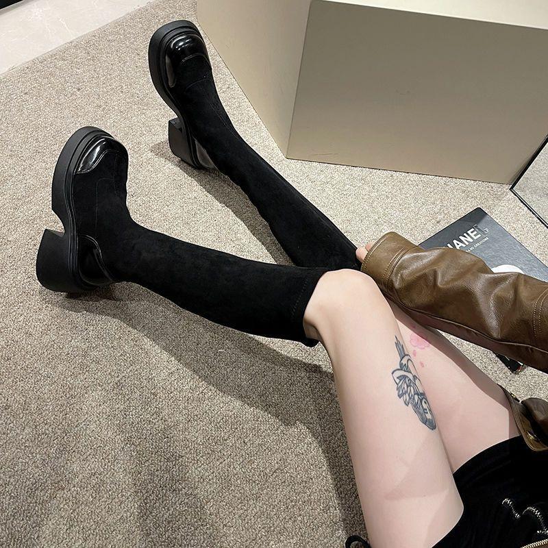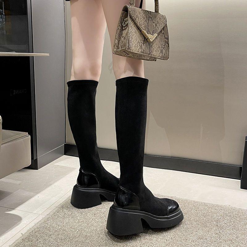 Botas largas de gamuza para mujer 2023 otoño e invierno Nuevas Botas calcetín elásticas de tacón alto por encima de la rodilla Botas altas delgadas moda ins