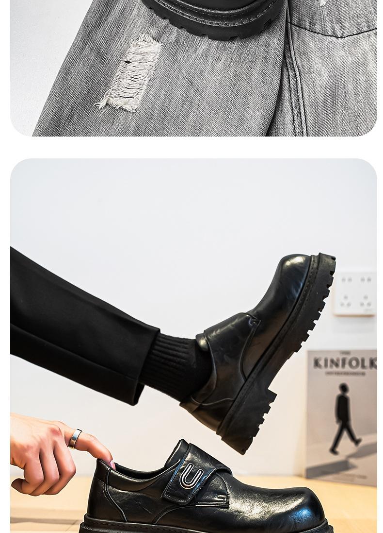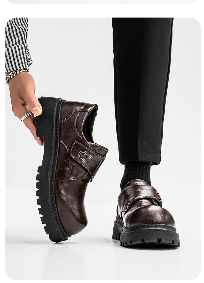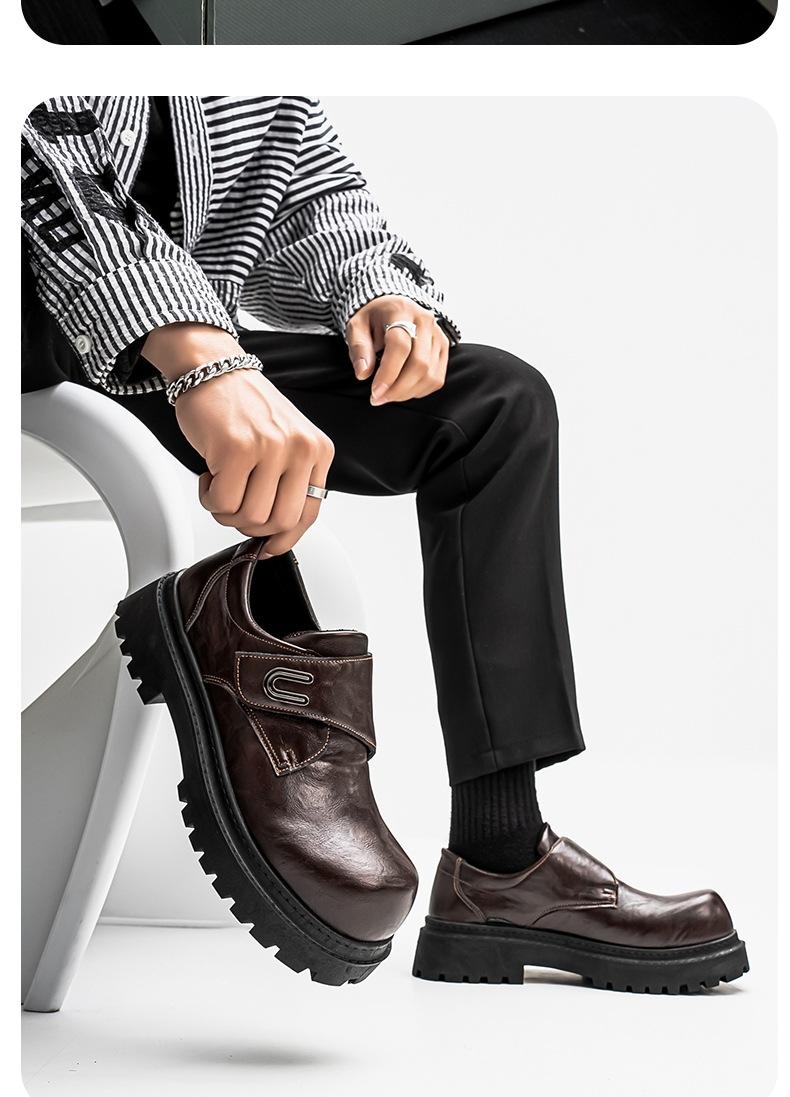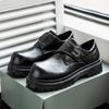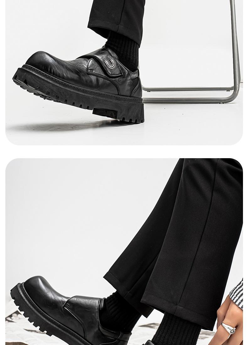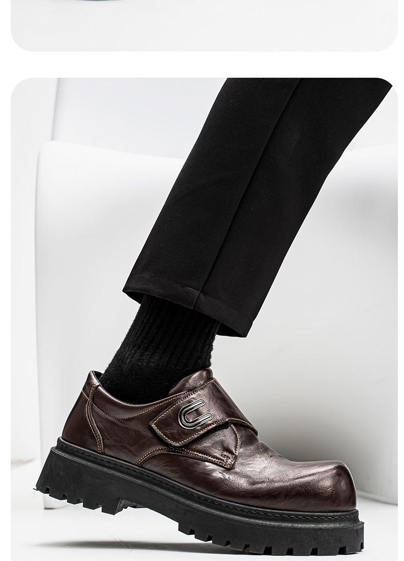 Zapatos de cuero para hombre, estilo británico de verano, zapatos formales de suela gruesa con velcro, zapatos casuales negros, zapatos bajos para bodas transfronterizas para hombre.