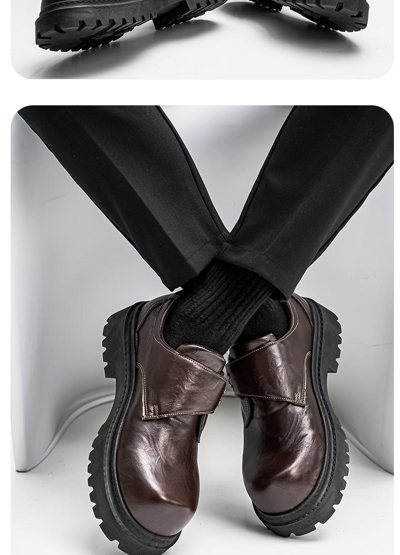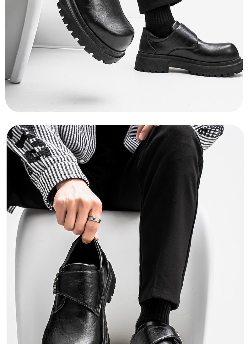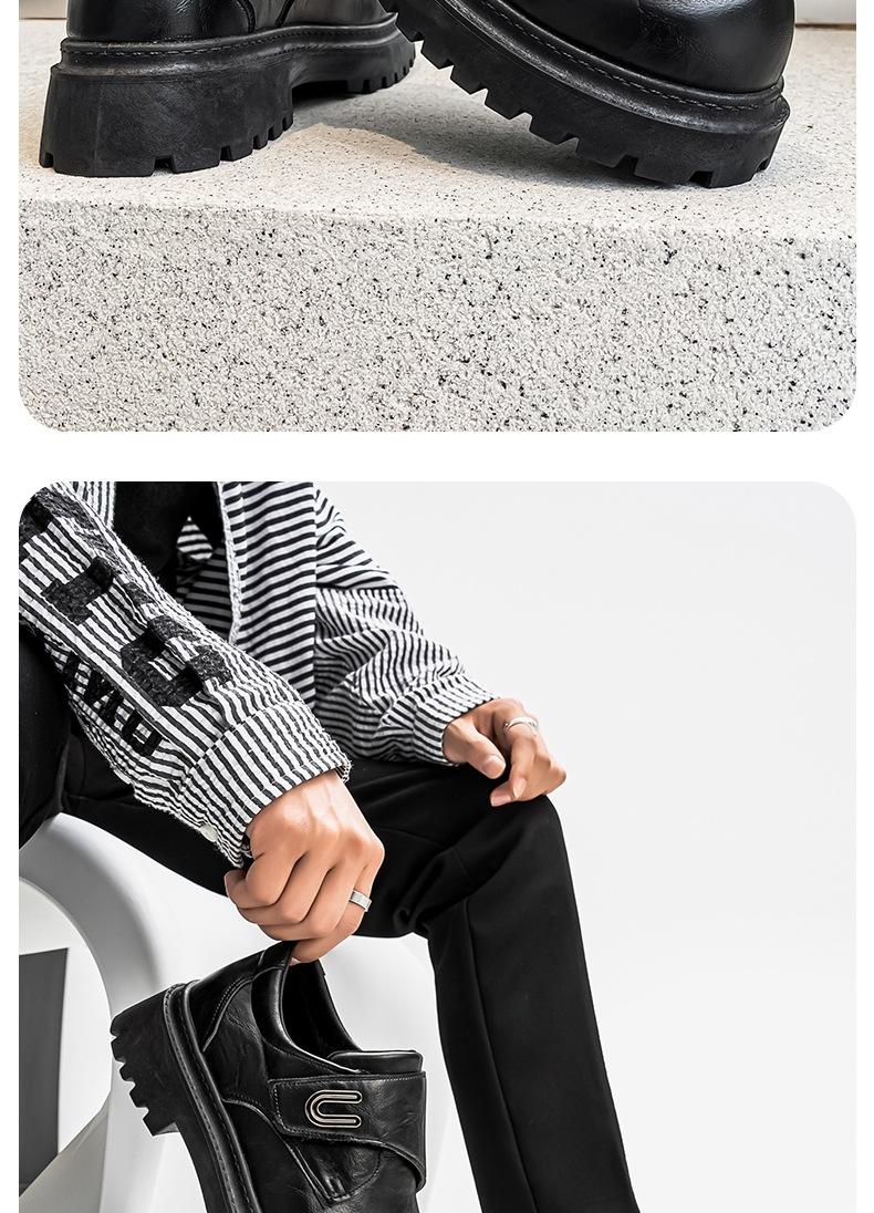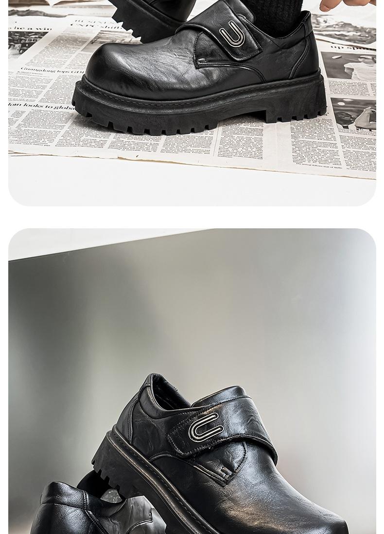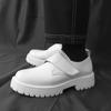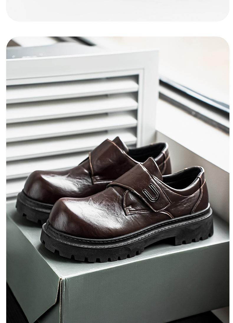 Zapatos de cuero para hombre, estilo británico de verano, zapatos formales de suela gruesa con velcro, zapatos casuales negros, zapatos bajos para bodas transfronterizas para hombre.