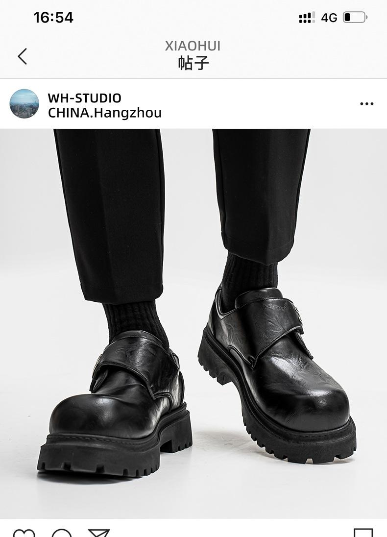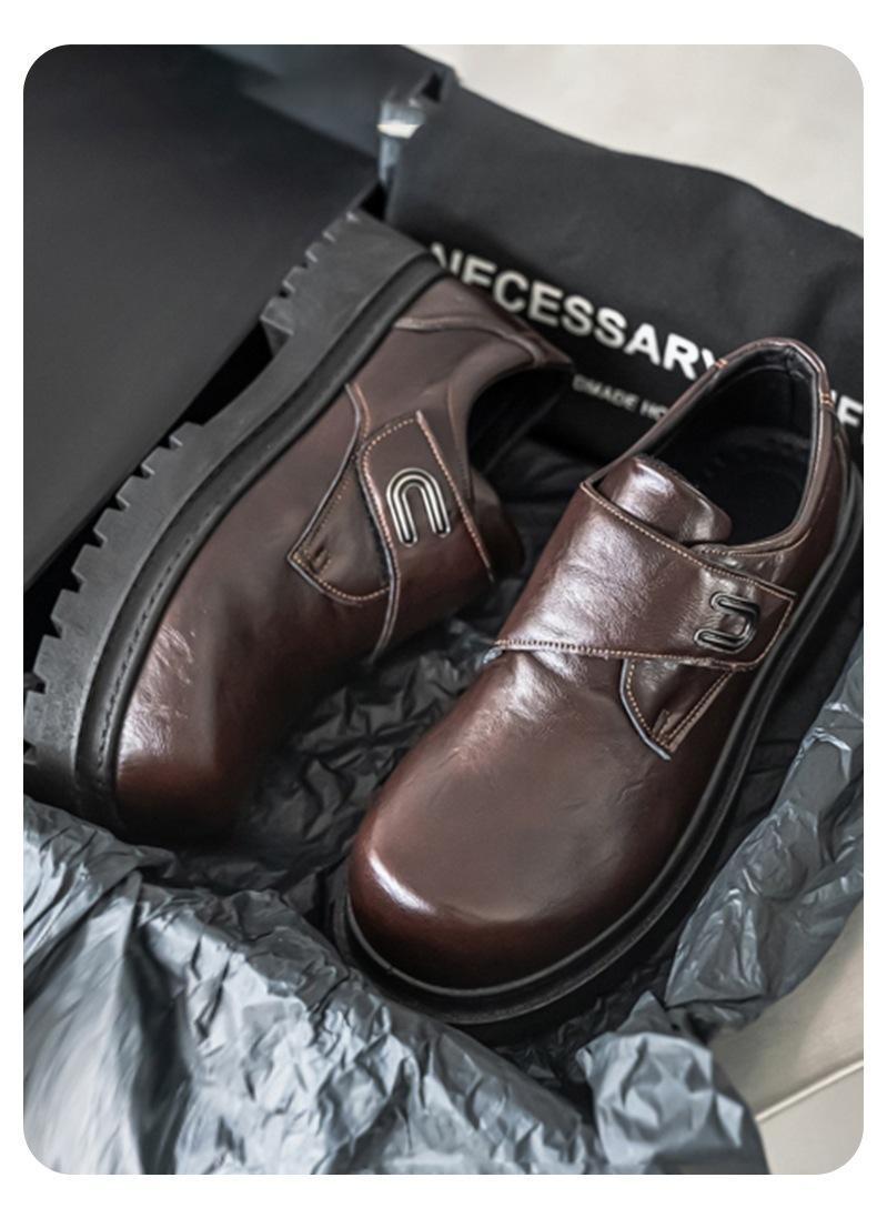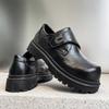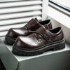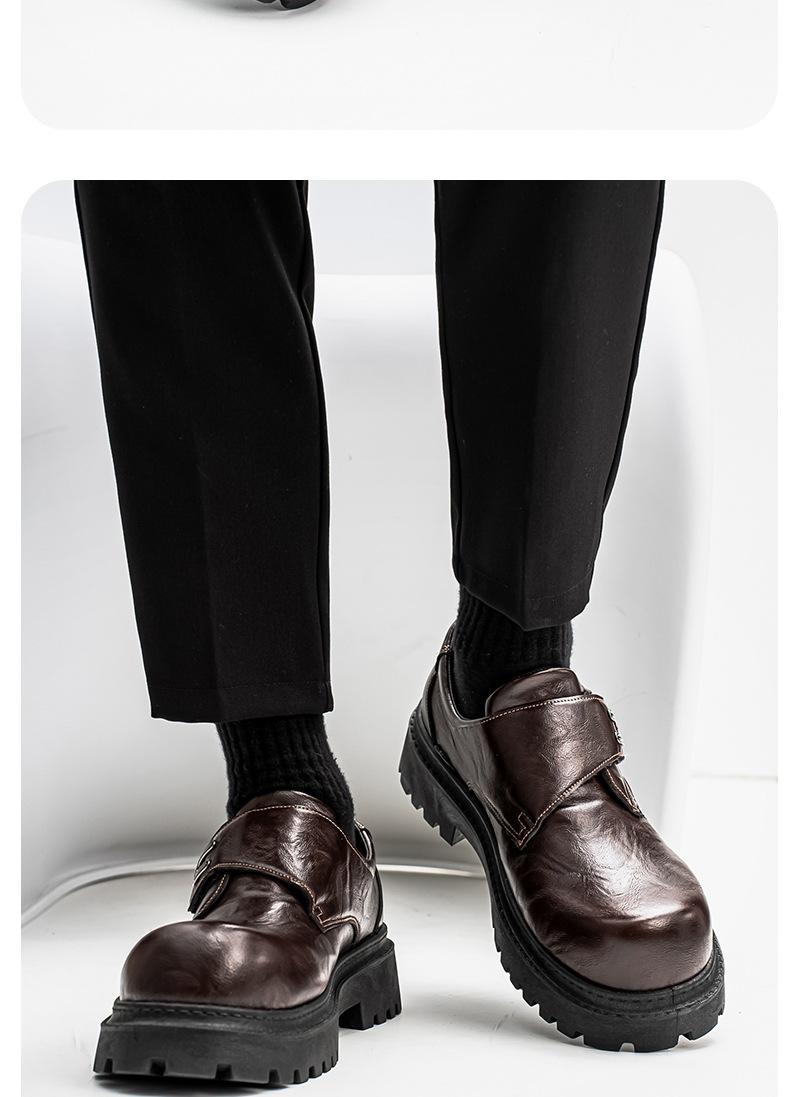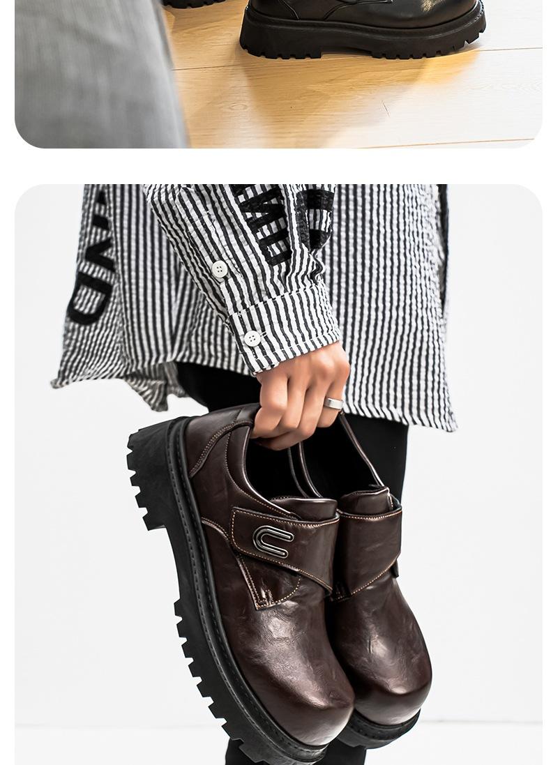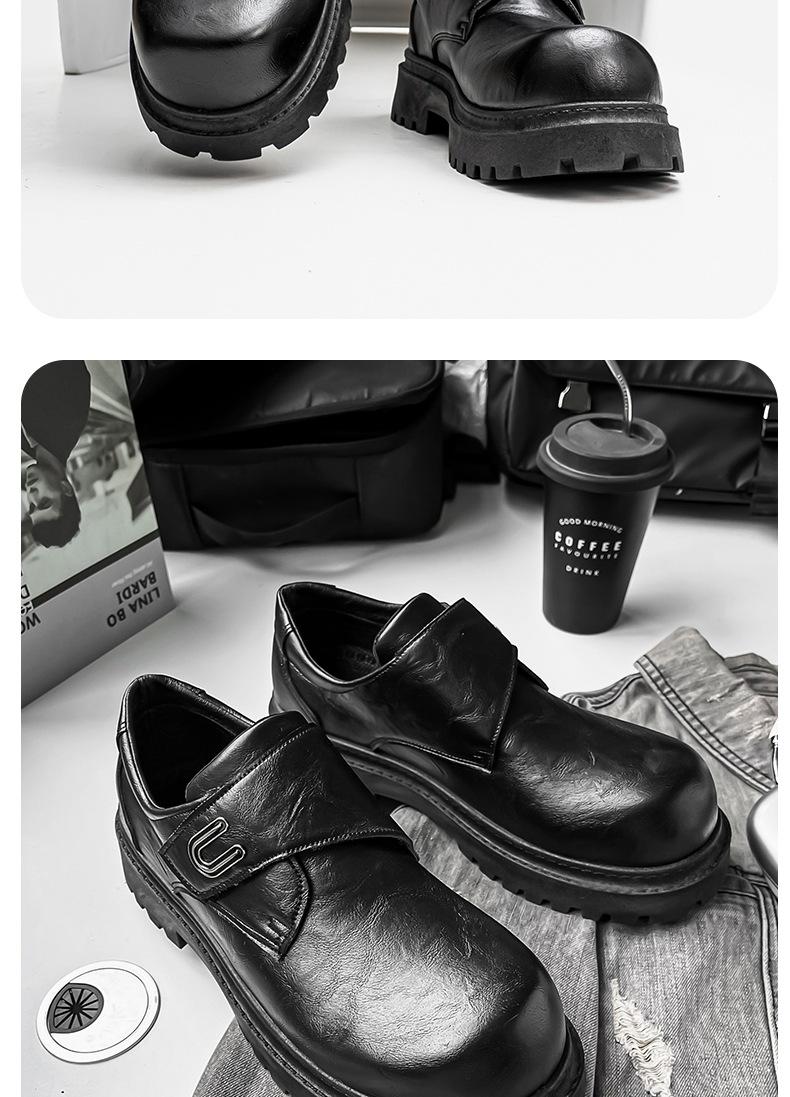 Zapatos de cuero para hombre, estilo británico de verano, zapatos formales de suela gruesa con velcro, zapatos casuales negros, zapatos bajos para bodas transfronterizas para hombre.