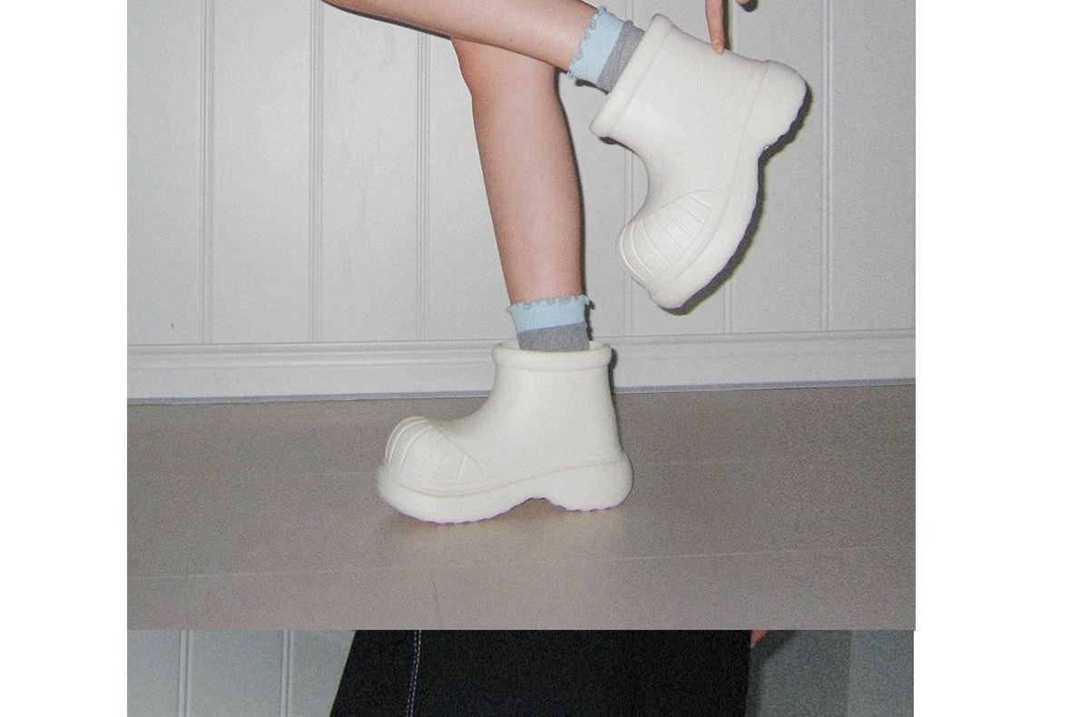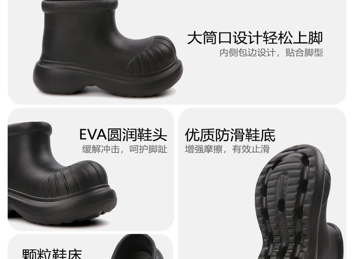 Zapatos de goma cómodos para mujer de color sólido, feos pero lindos, de punta redonda, para estudiante, impermeables, universales para las cuatro estaciones, para exterior, botas de lluvia cortas para adulto