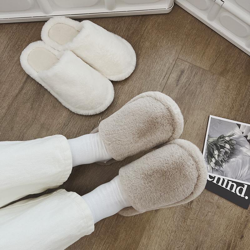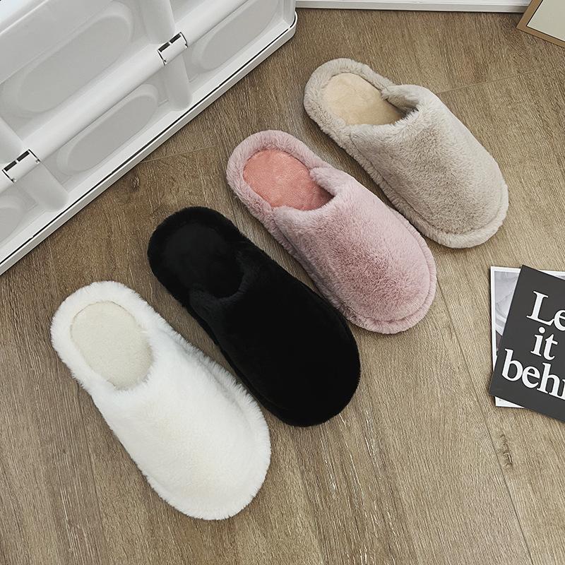2023 nuevas pantuflas para casa antideslizantes de felpa con punta cerrada de suela suave cálidas para invierno pantuflas de algodón para piso pantuflas de felpa para mujer