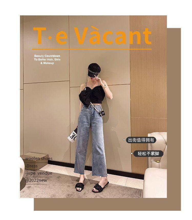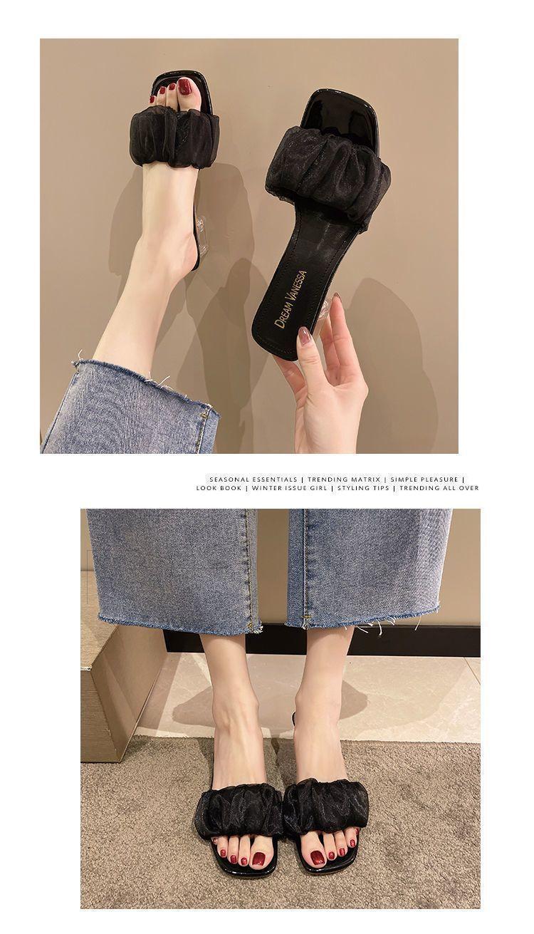Pantuflas Traje de Verano para Mujer Nuevo Estilo Tacón Grueso Combinación Total Tacón Cuadrado Tacón Medio Chanclas Estilo Hada Pantuflas de Falda