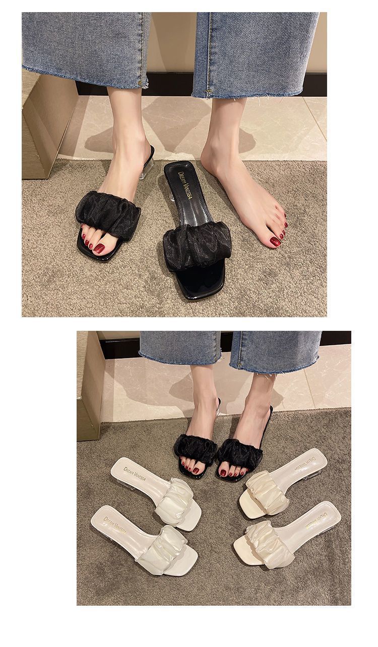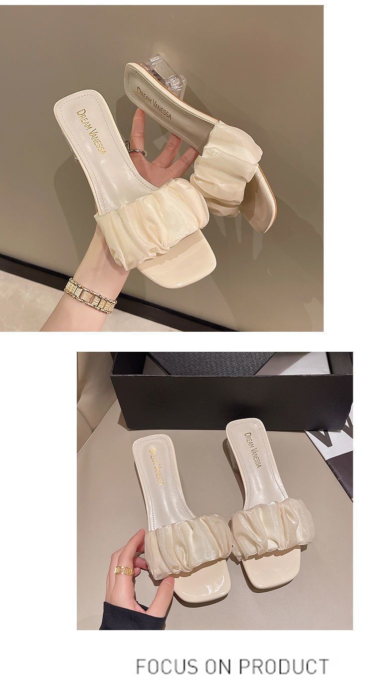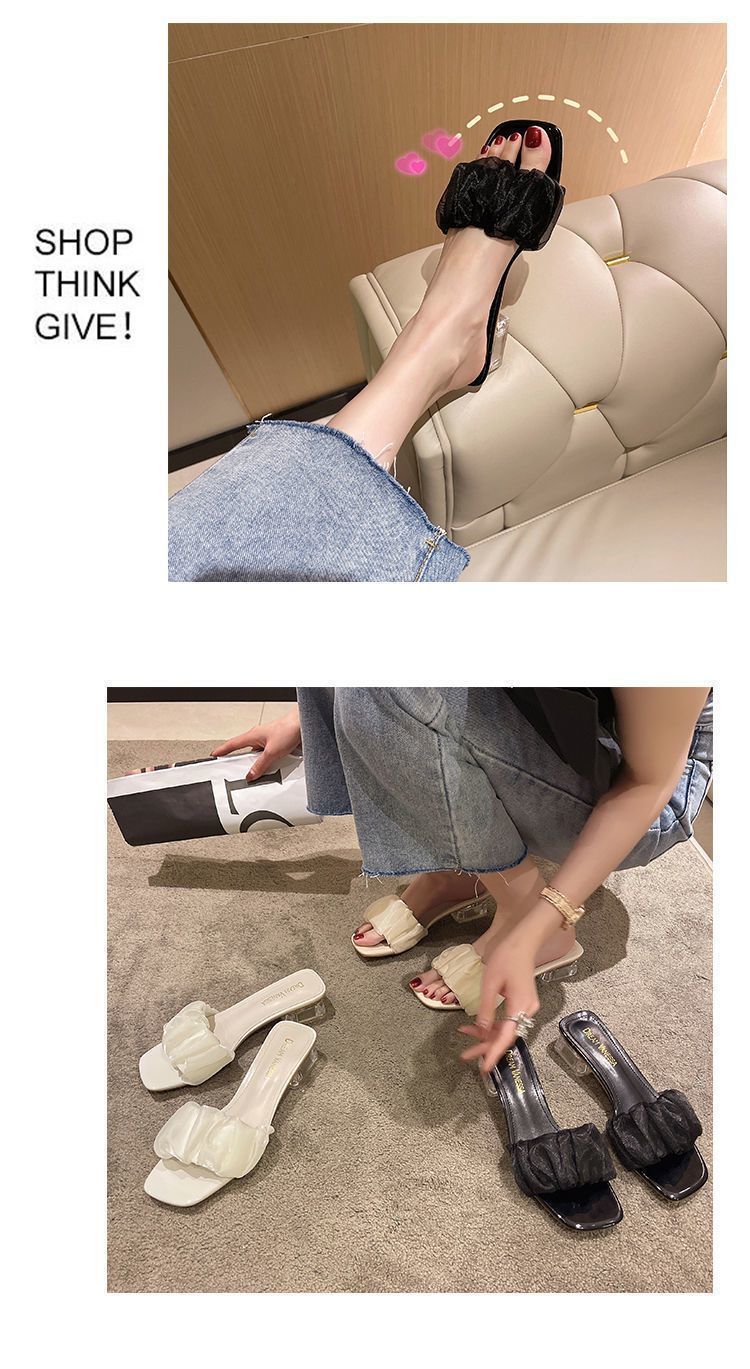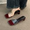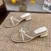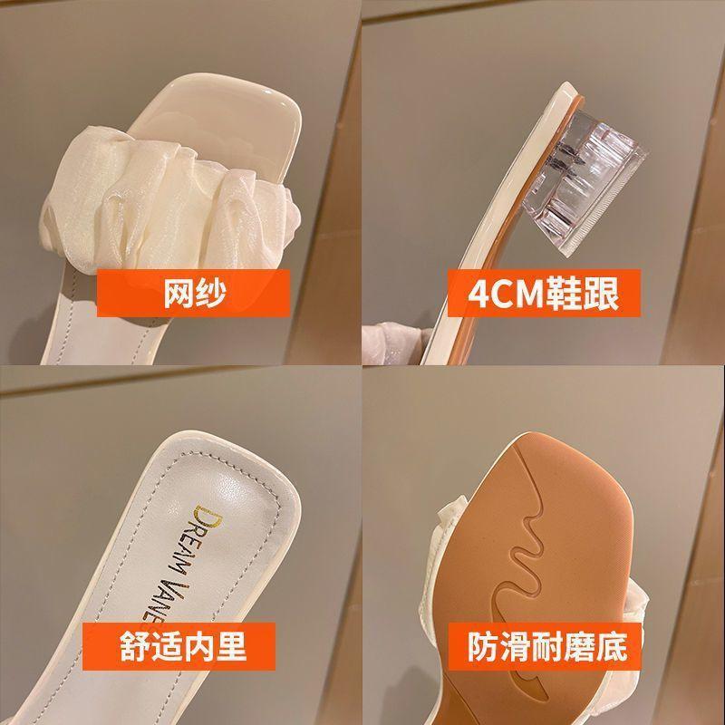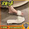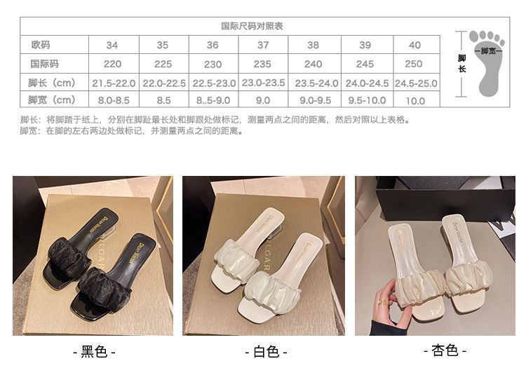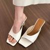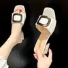 Pantuflas para Mujer Verano 2024 Nuevas Tacón Grueso Versátil Punta Cuadrada Tacón Medio Chanclas Estilo Hada para Combinar con Faldas Pantuflas Frescas