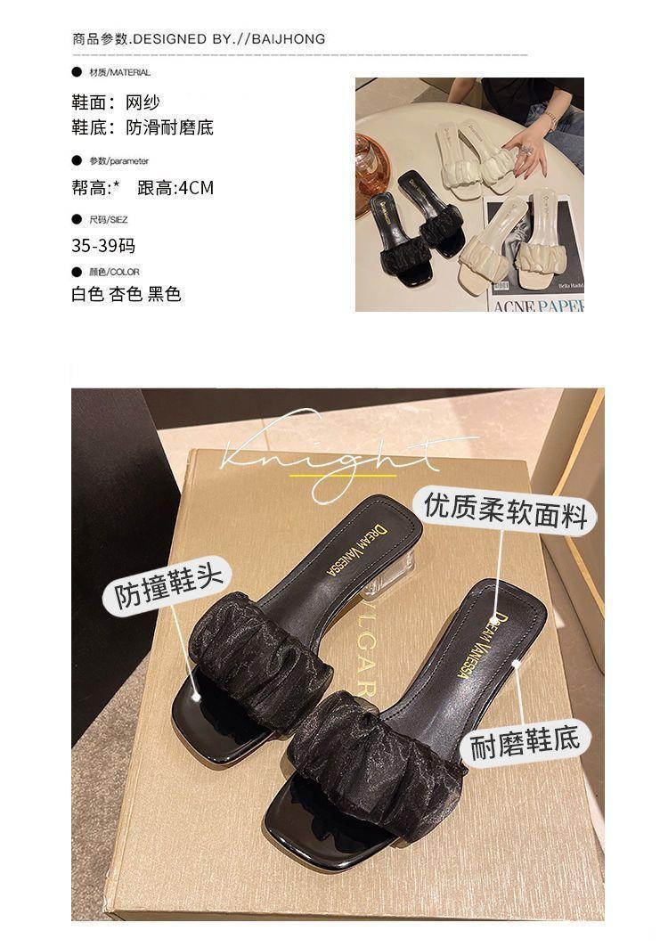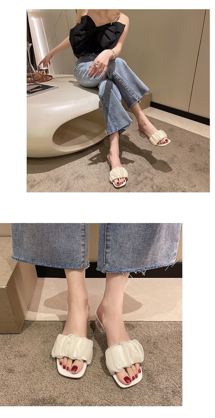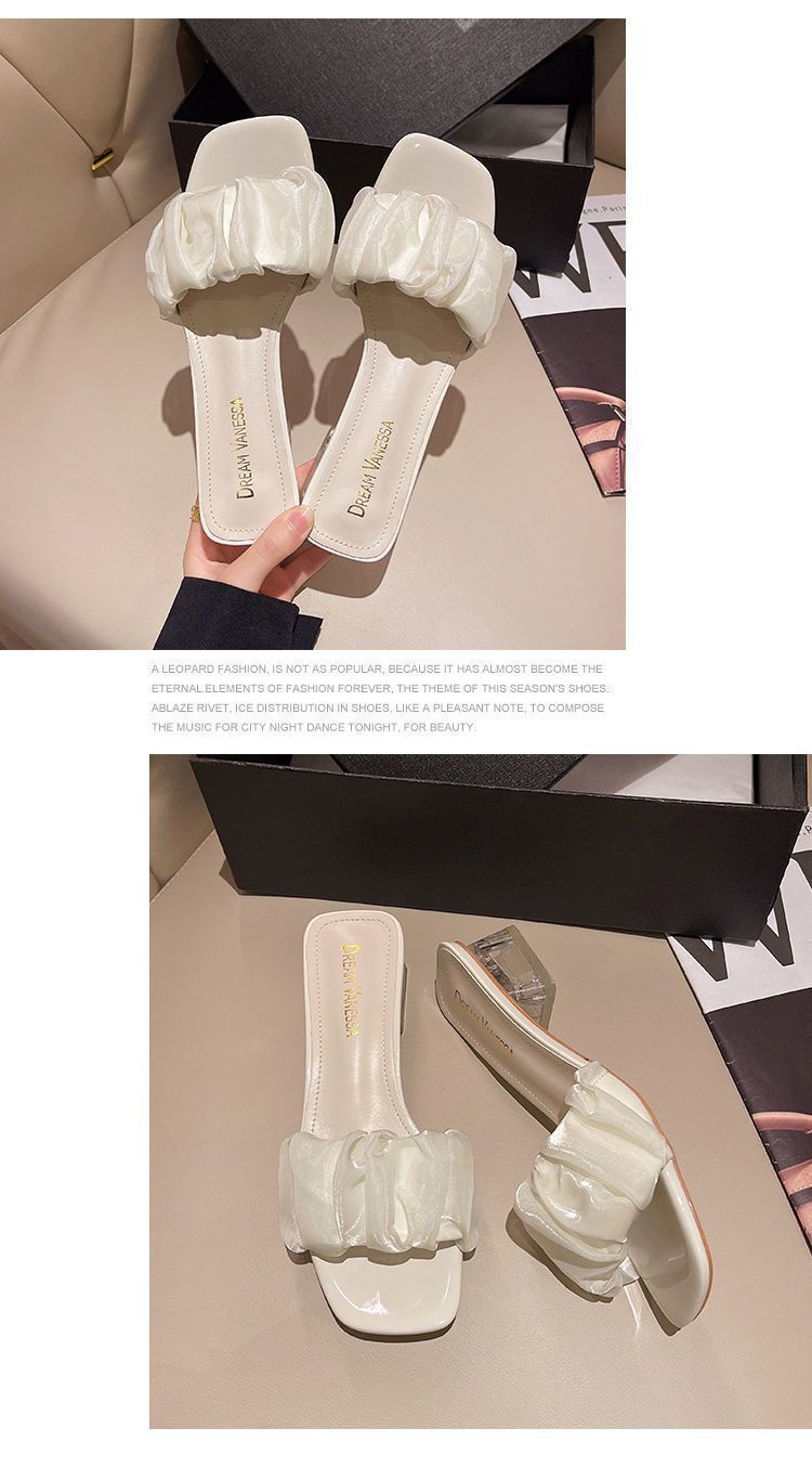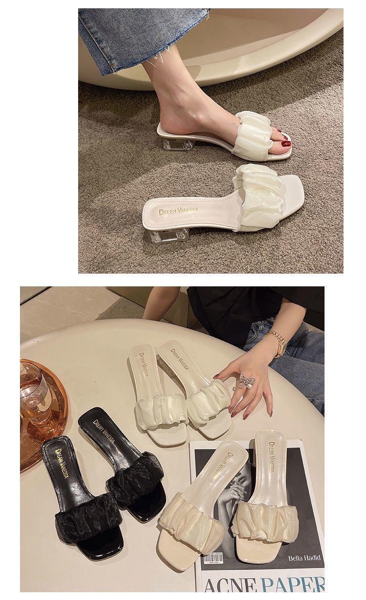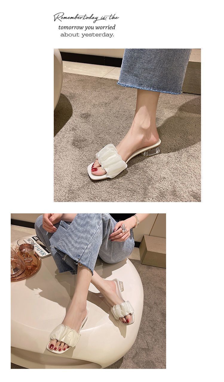 Pantuflas para Mujer Verano 2024 Nuevas Tacón Grueso Versátil Punta Cuadrada Tacón Medio Chanclas Estilo Hada para Combinar con Faldas Pantuflas Frescas