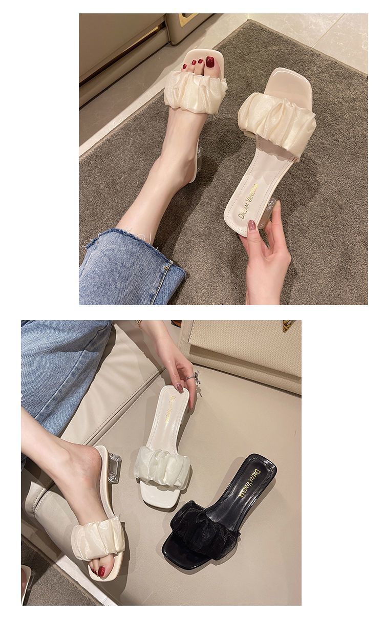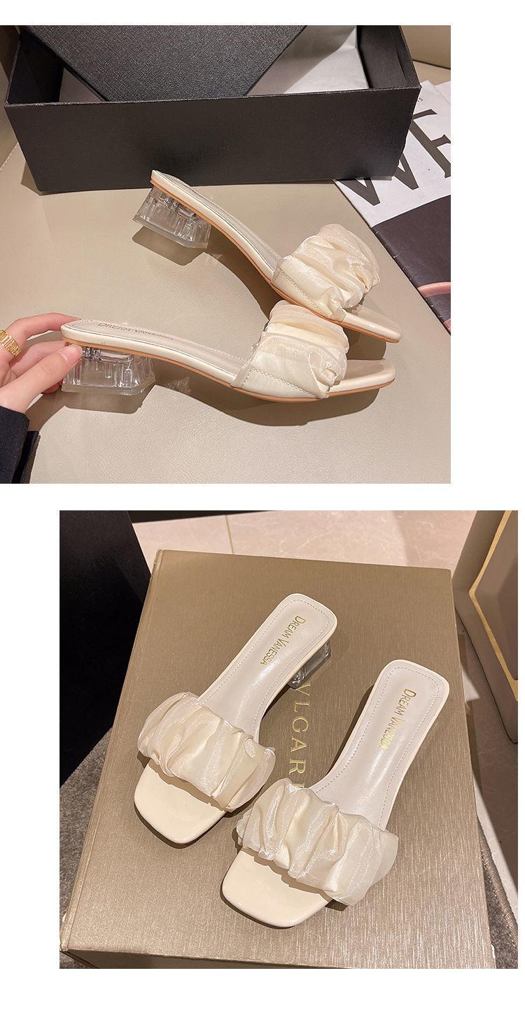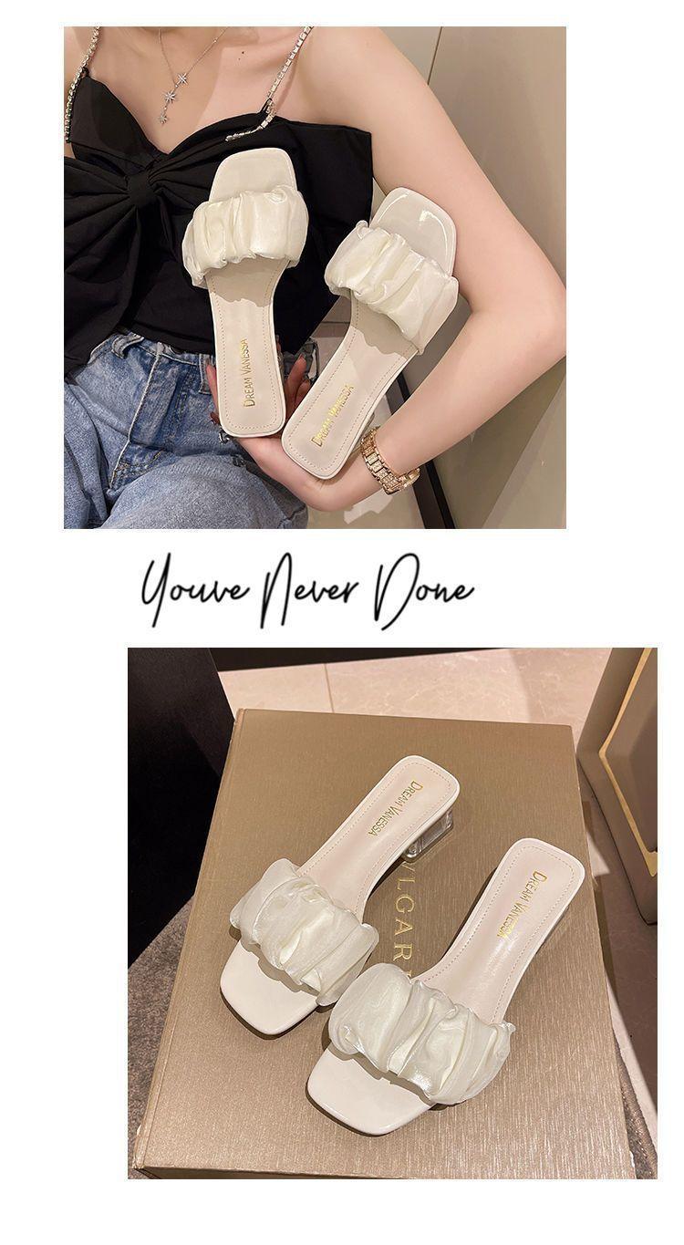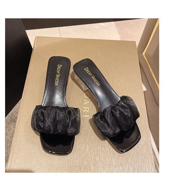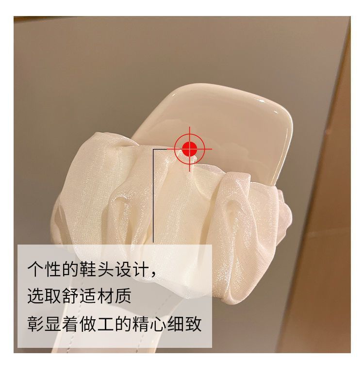Pantuflas para Mujer Verano 2024 Nuevas Tacón Grueso Versátil Punta Cuadrada Tacón Medio Chanclas Estilo Hada para Combinar con Faldas Pantuflas Frescas