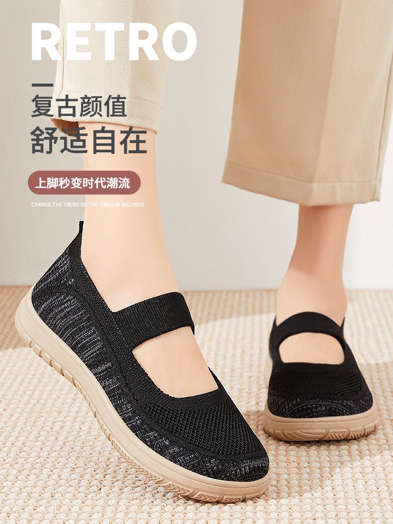 Zapatos de tela de Pekín antiguos para mujer, Versátil estilo nuevo de verano, Zapatos de mamá sin cordones transpirables, Suela blanda, Zapatos casuales cómodos para mujer, Planos