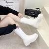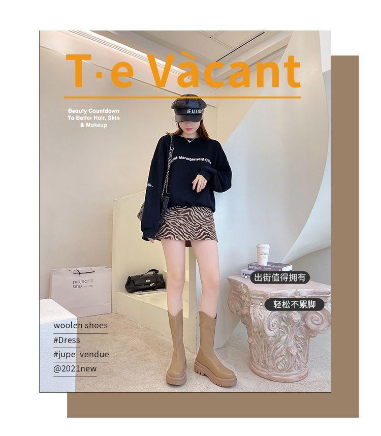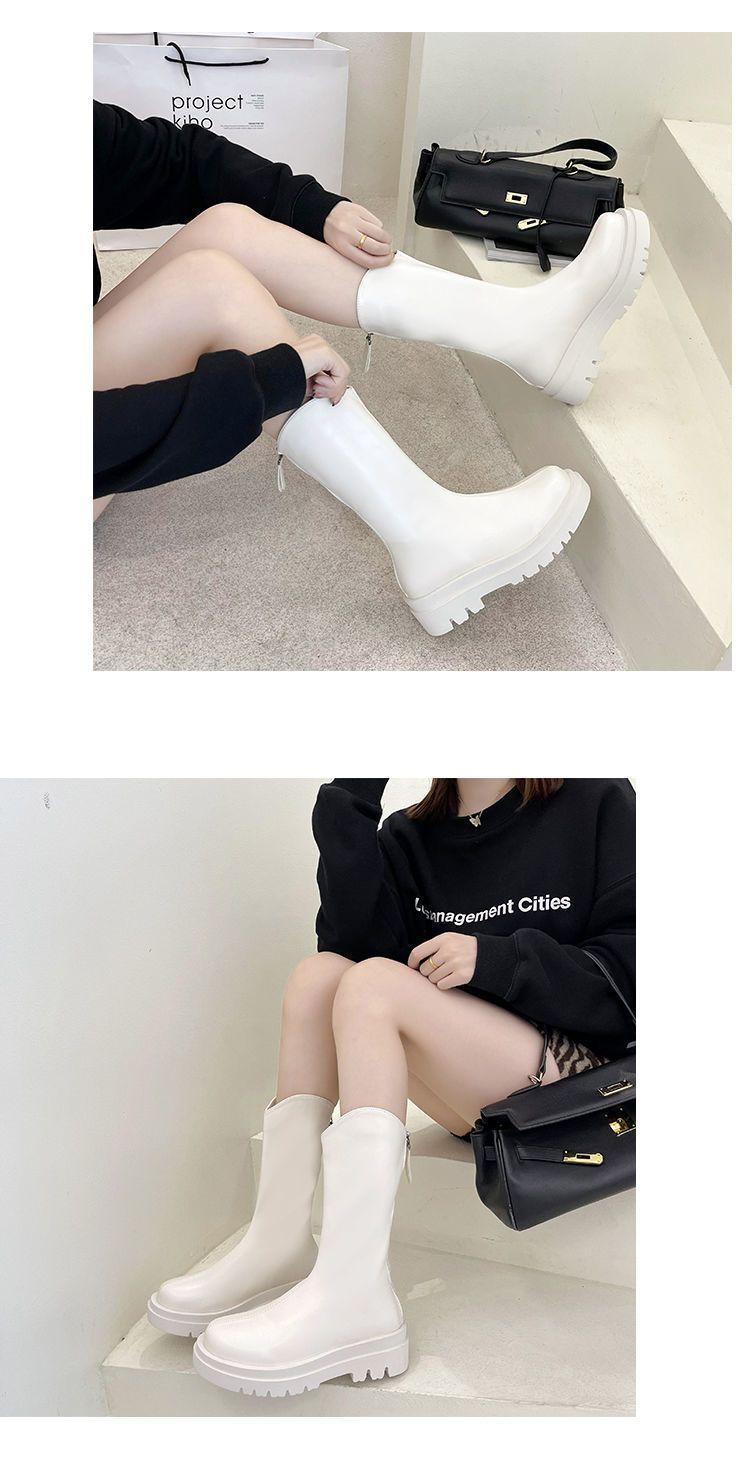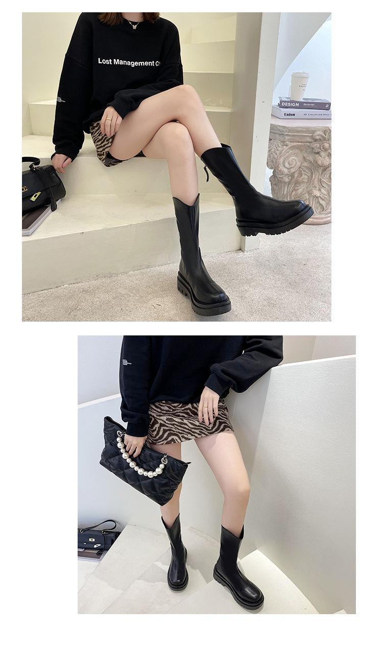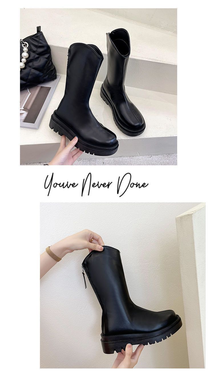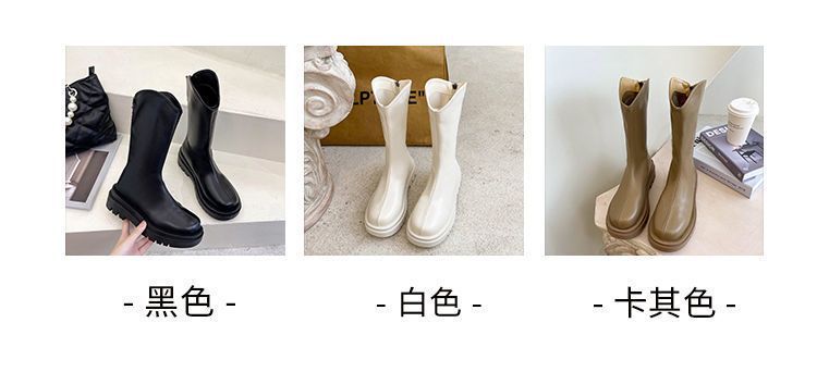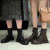 Botas planas de media caña con suela gruesa adelgazantes 2021 nuevas de punta redonda estilo británico estudiante Negro botas Martin botas delgadas celebridad de internet