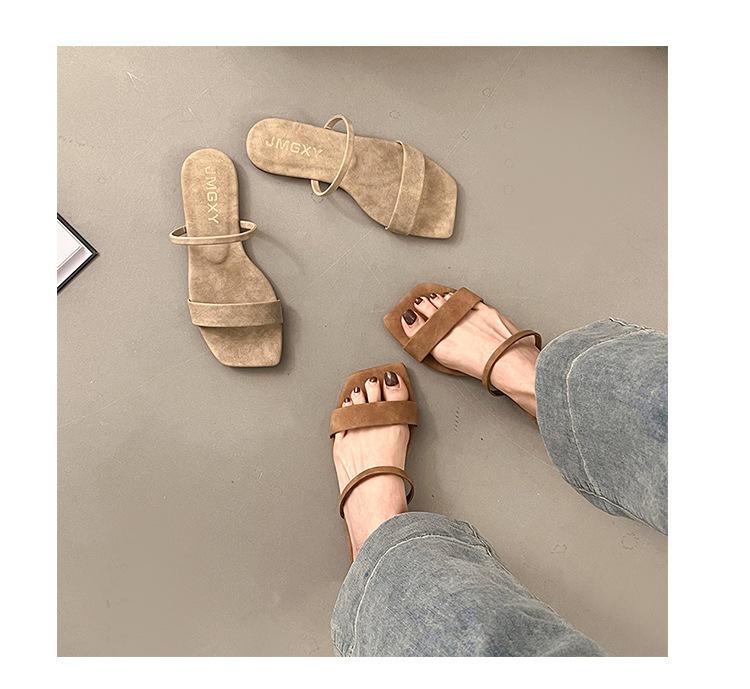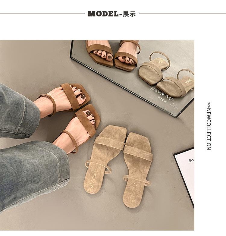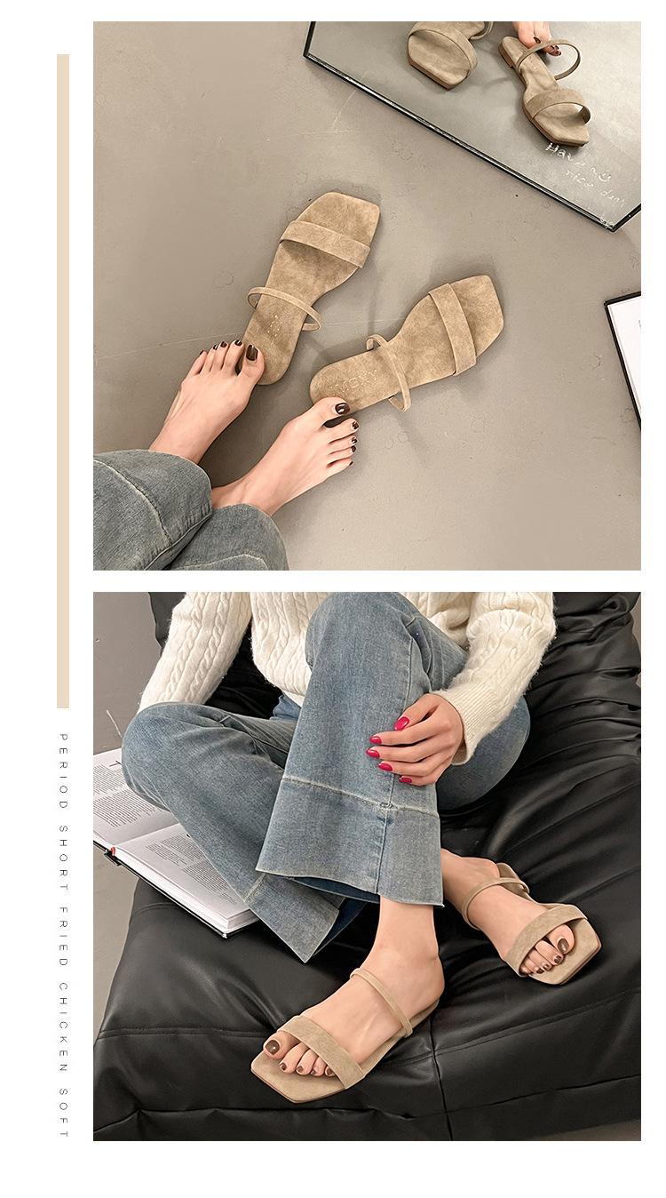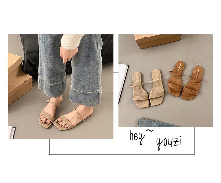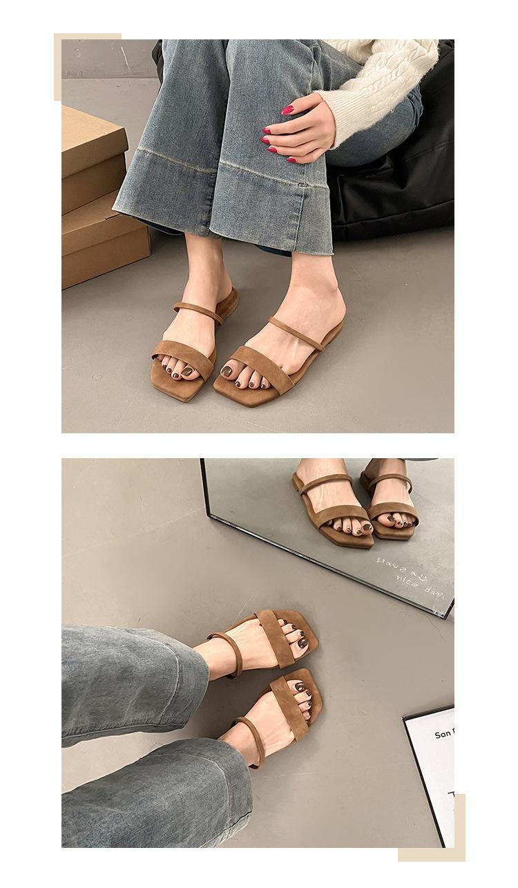 Verano Estilo Coreano Punta Cuadrada Boca de Pescado Sandalias para Mujer Zapatillas Planas 2025 Nuevos Zapatos de Mujer Zapatillas para Mujer