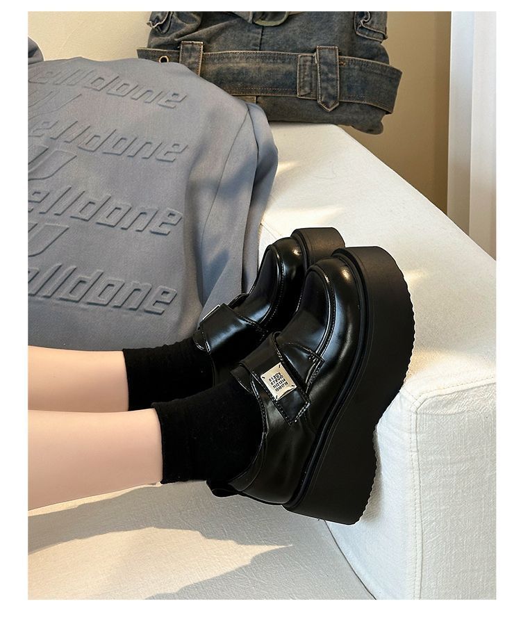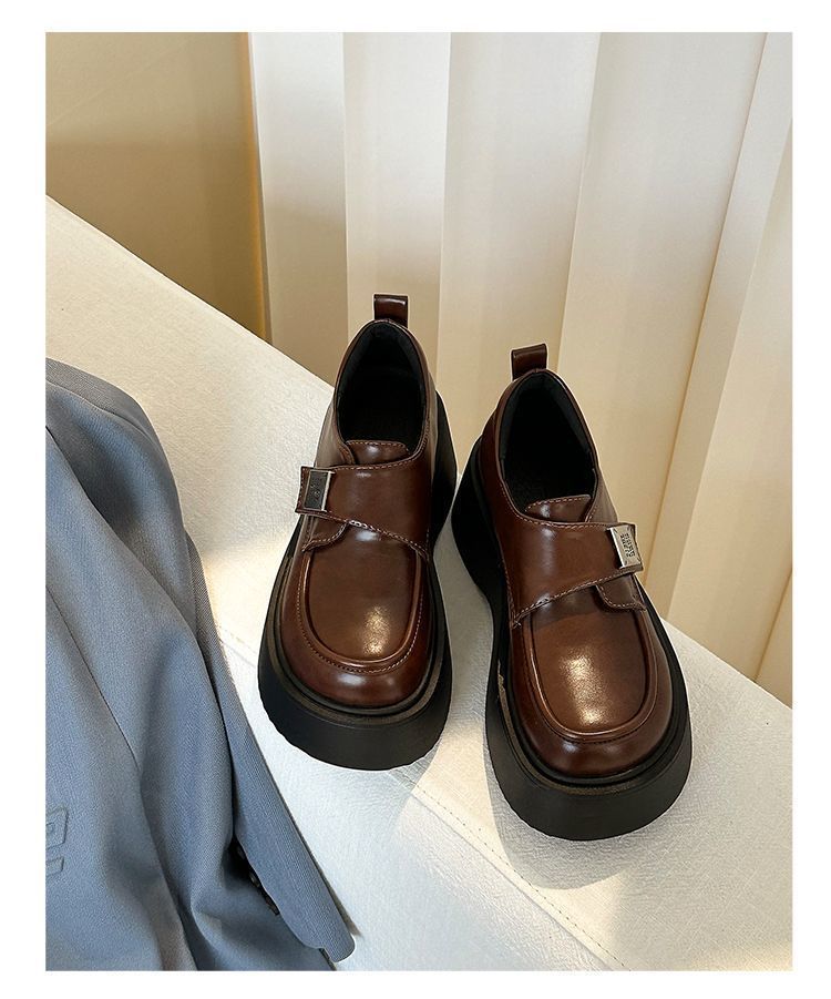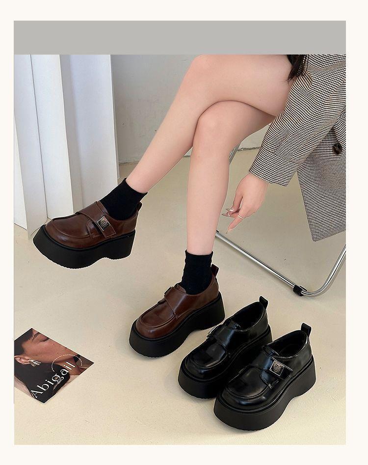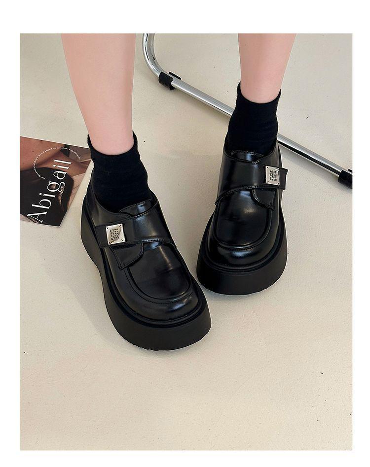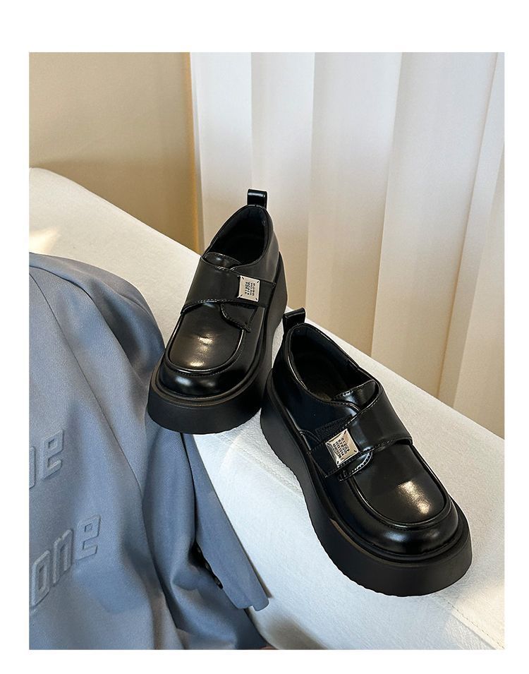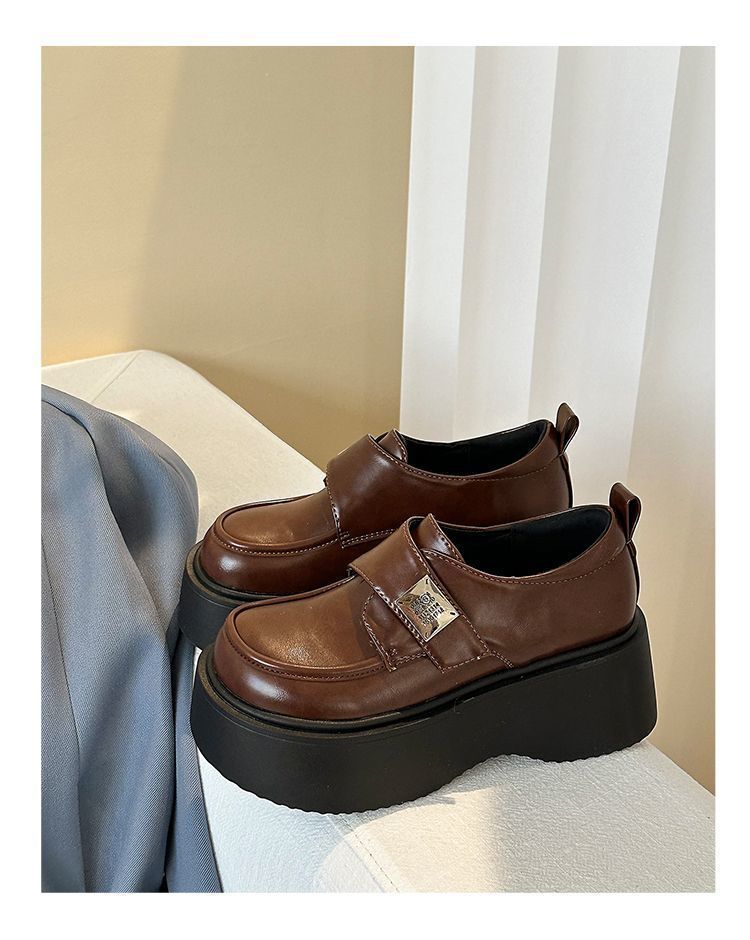 Zapatos de Piel Pequeños de Estilo Británico Retro de Punta Grande 2025 Verano Nuevo Celebridad de Internet Plataforma Slip-On de Suela Gruesa Zapatos Cómodos para Mujer