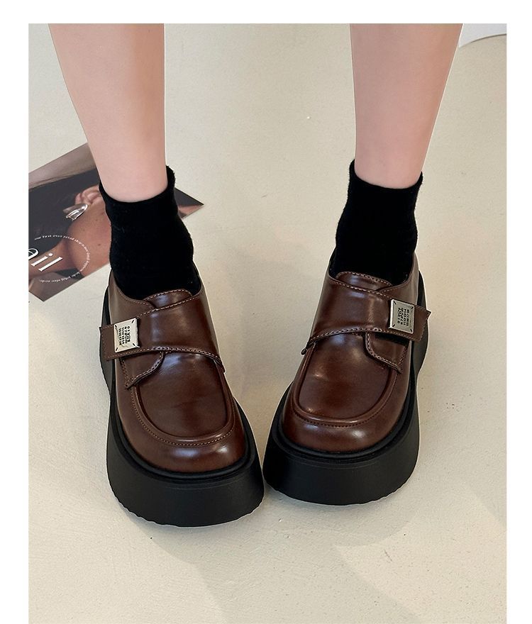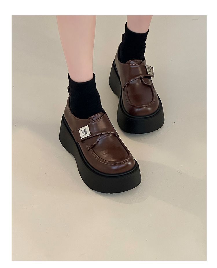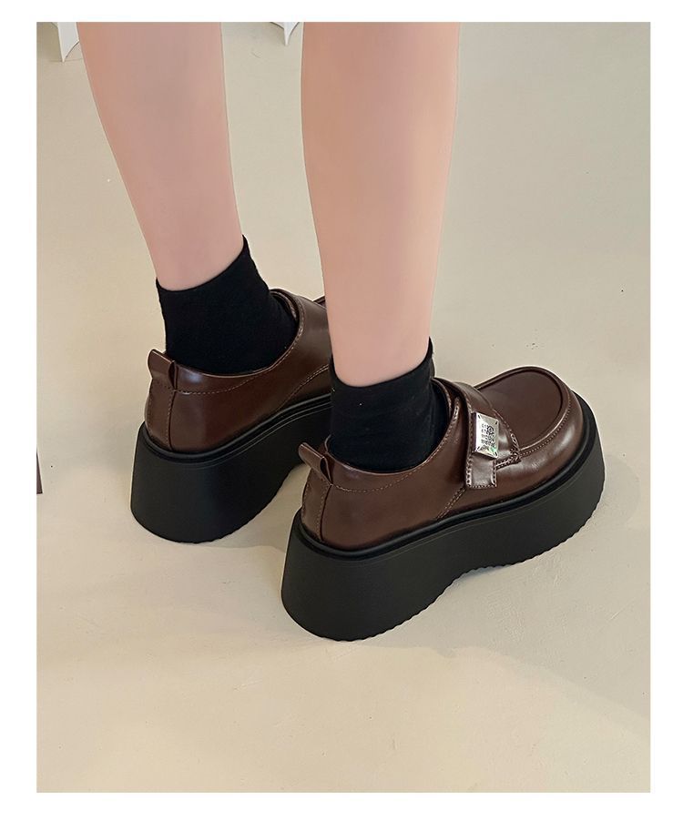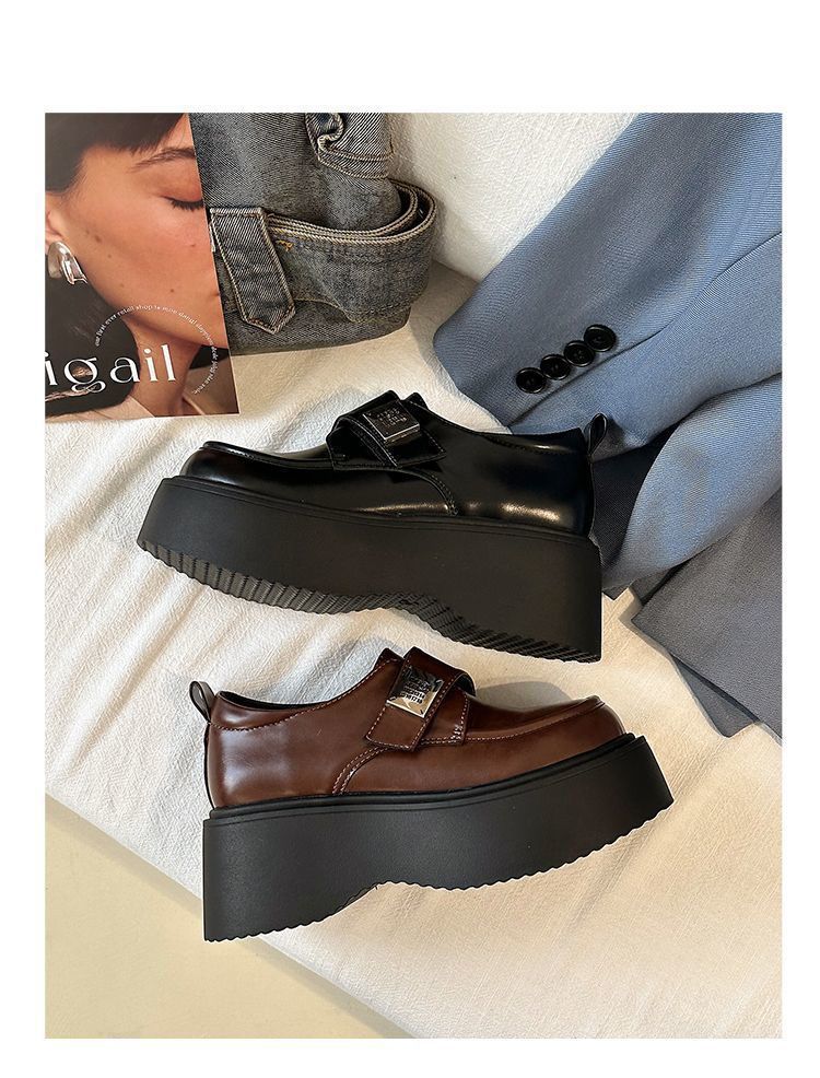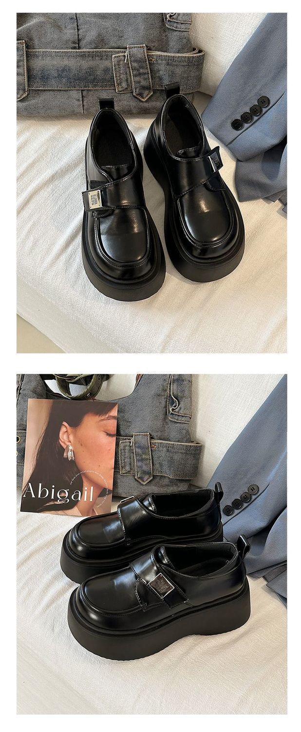 Zapatos de Piel Pequeños de Estilo Británico Retro de Punta Grande 2025 Verano Nuevo Celebridad de Internet Plataforma Slip-On de Suela Gruesa Zapatos Cómodos para Mujer