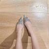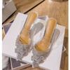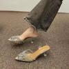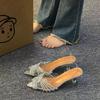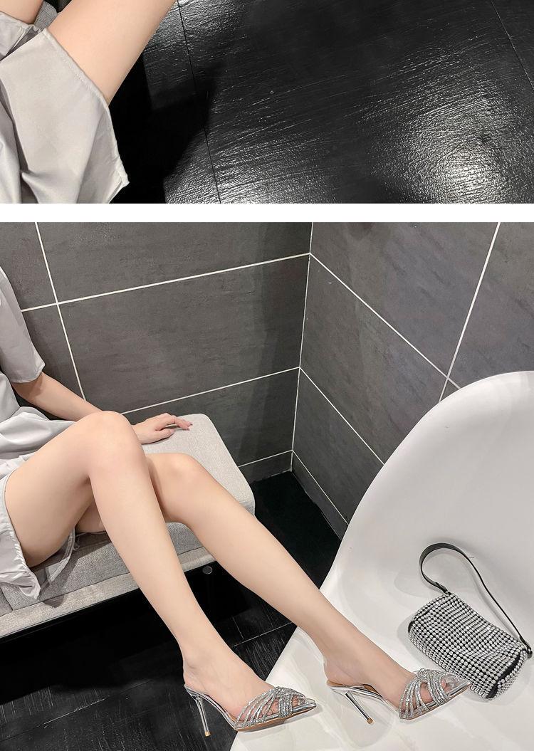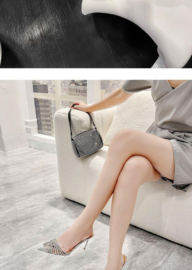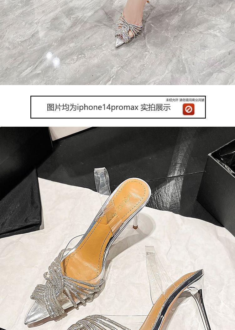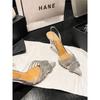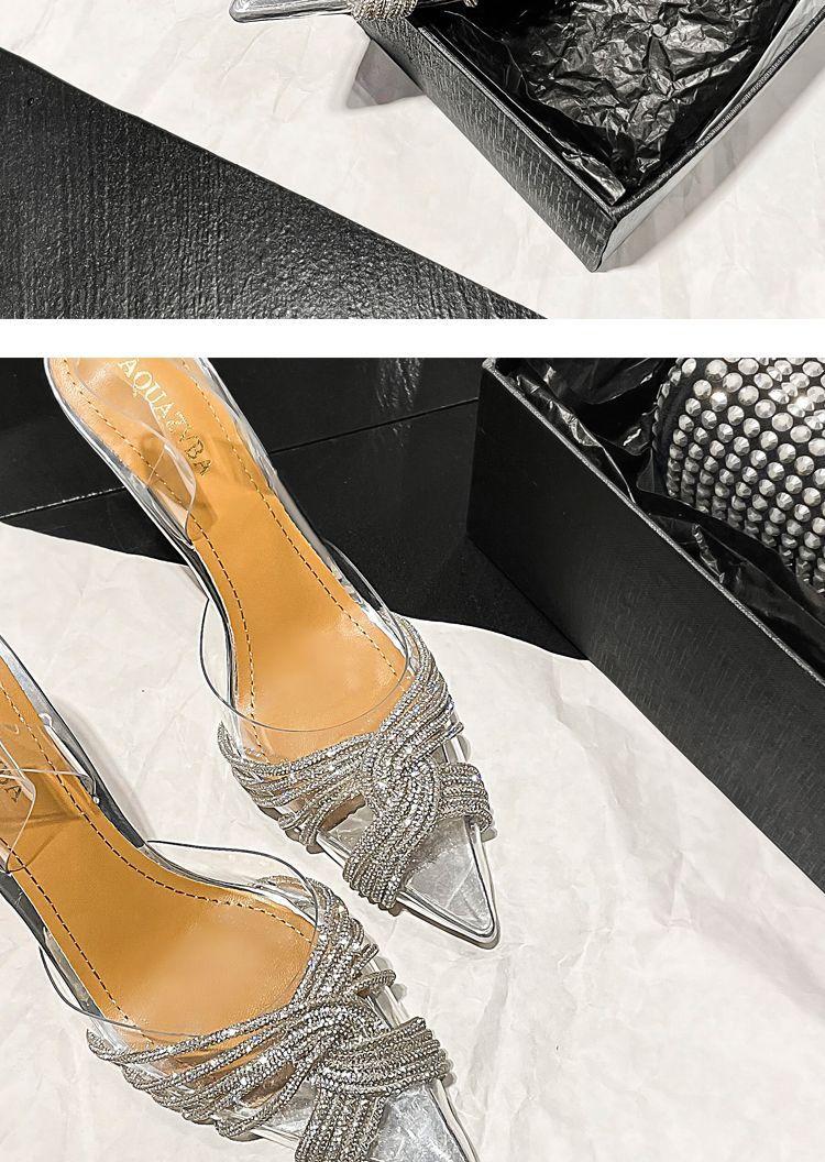 Sandalias Baotou con Pedrería Cruzada, Modernas y Elegantes, Tacones Altos Plateados Transparentes para Mujer, Sandalias de Cristal con Pedrería de Punta Stiletto