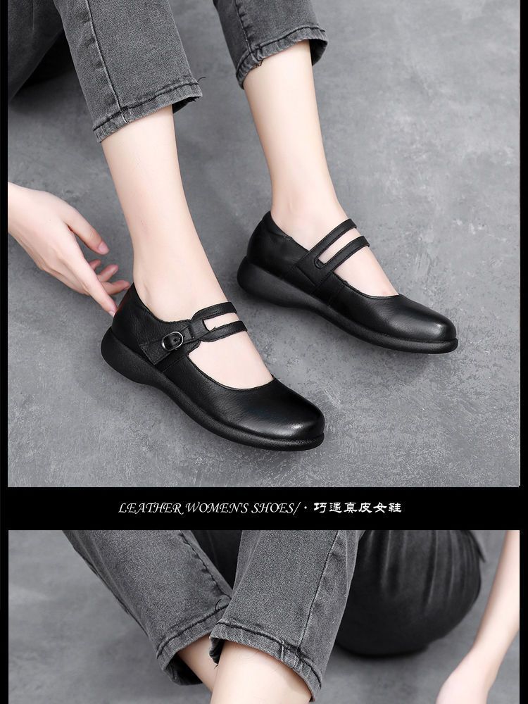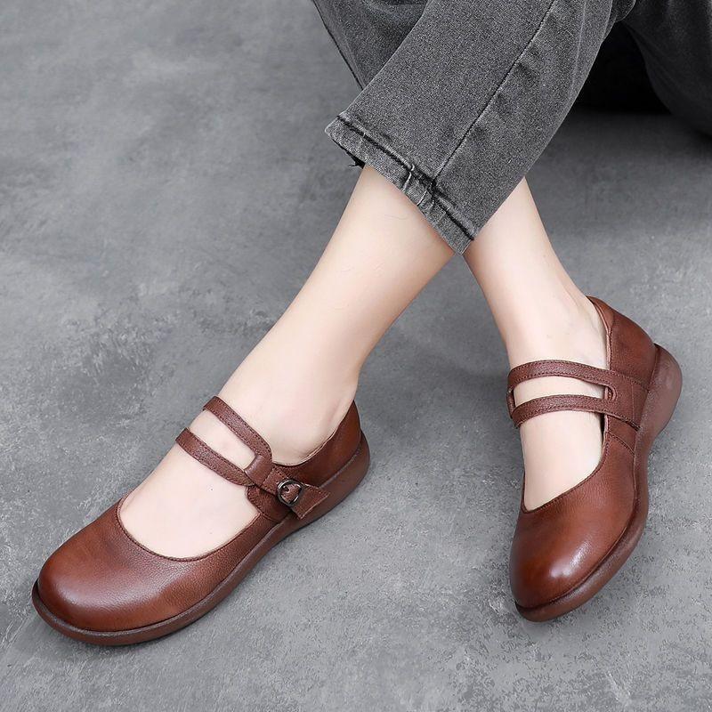 Zapatos de Madre Retro de Mediana Edad con Suela de Tendón, Flats de Cuero Suave con Suela Súper Suave para Primavera y Otoño, Zapatos de Mujer Antideslizantes con Suela Plana, Zapatos de Nicho
