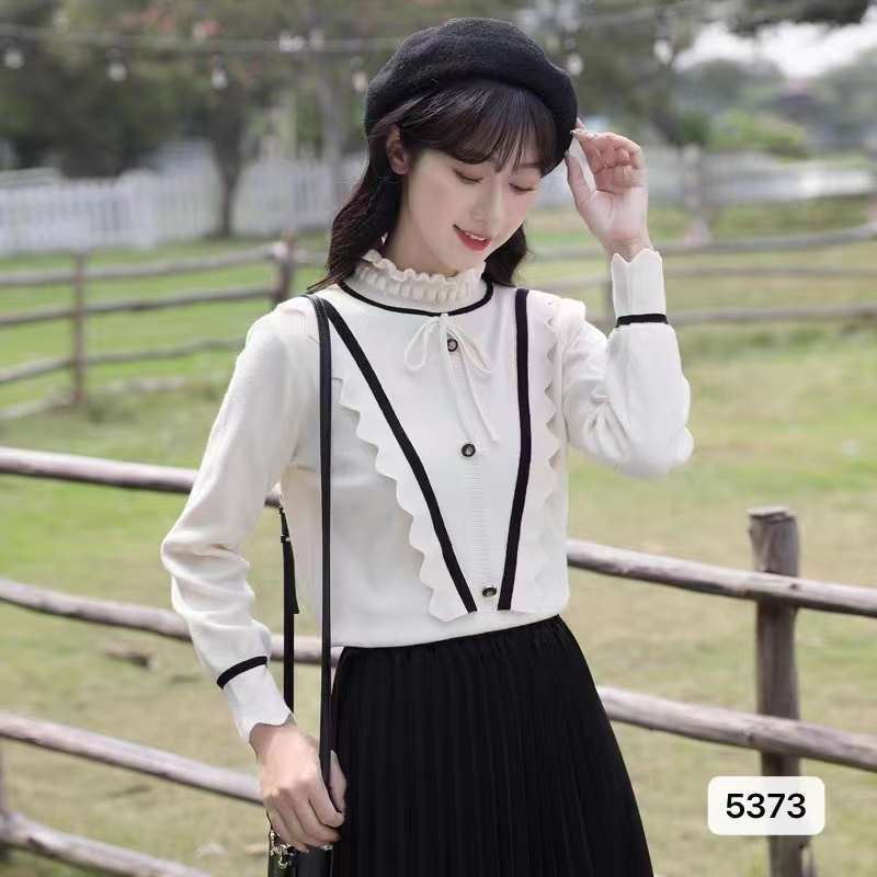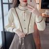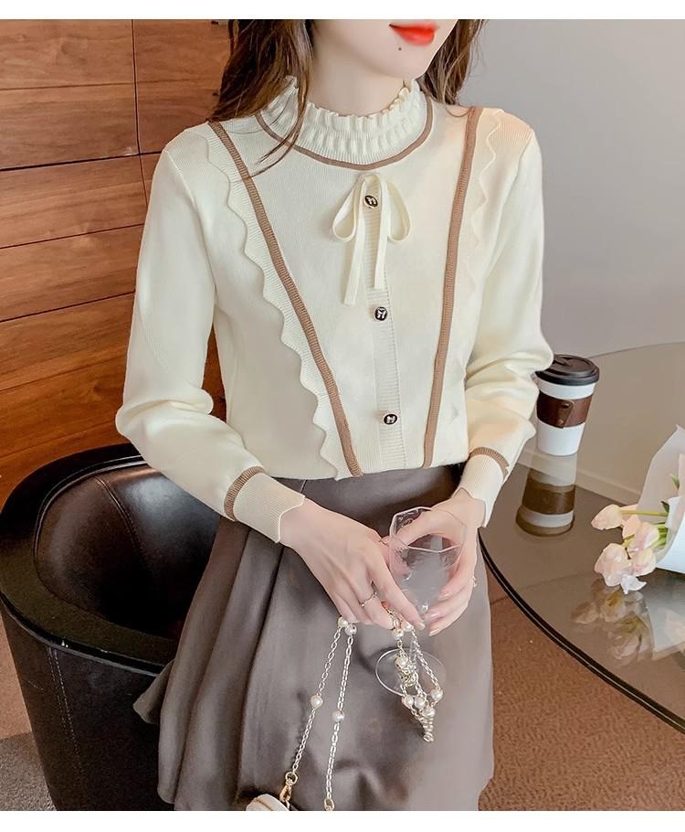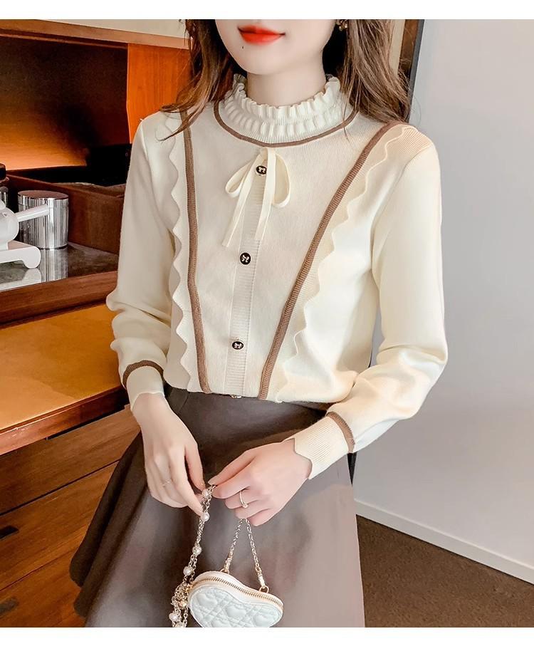 Suéter de punto de fondo de cuello alto medio transfronterizo, otoño e invierno 2023, nuevo diseño de moda con lazo, top para mujer