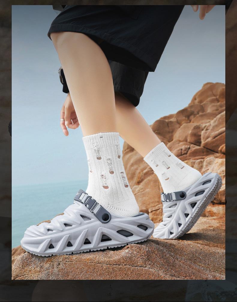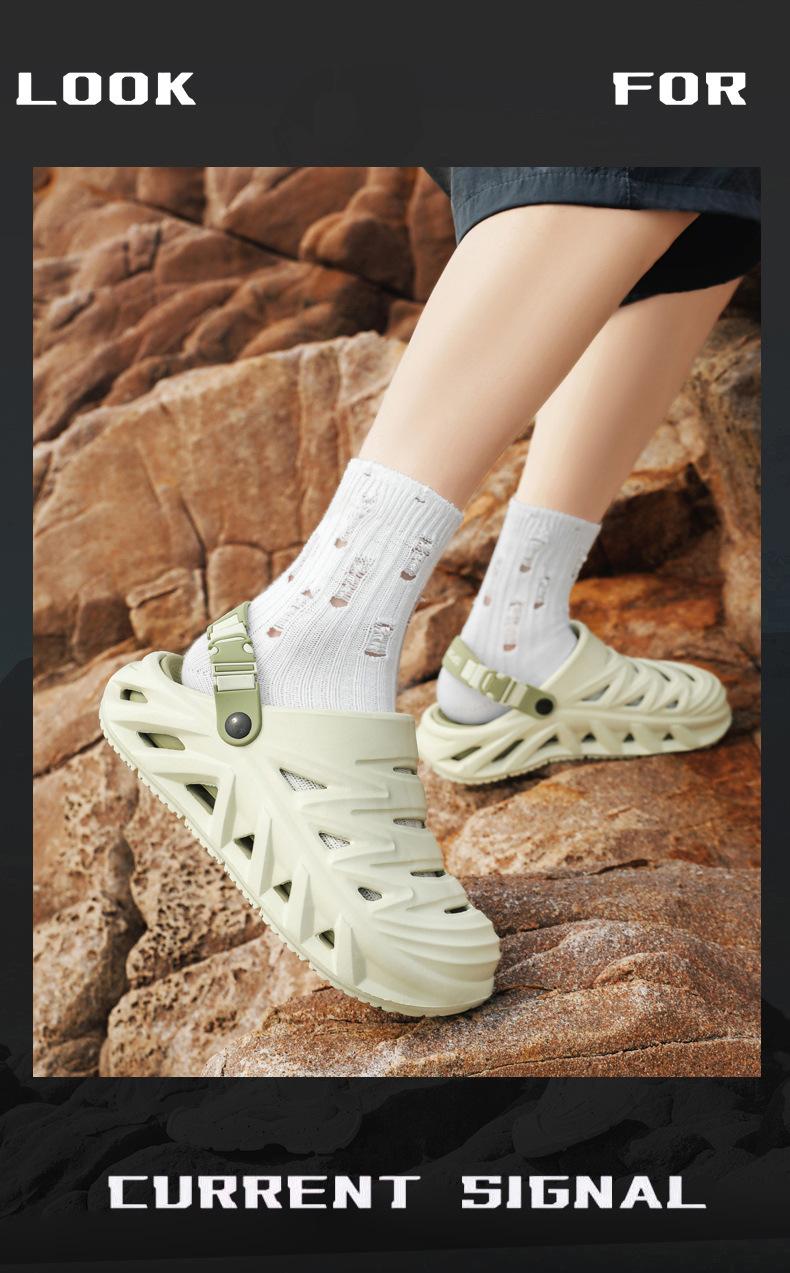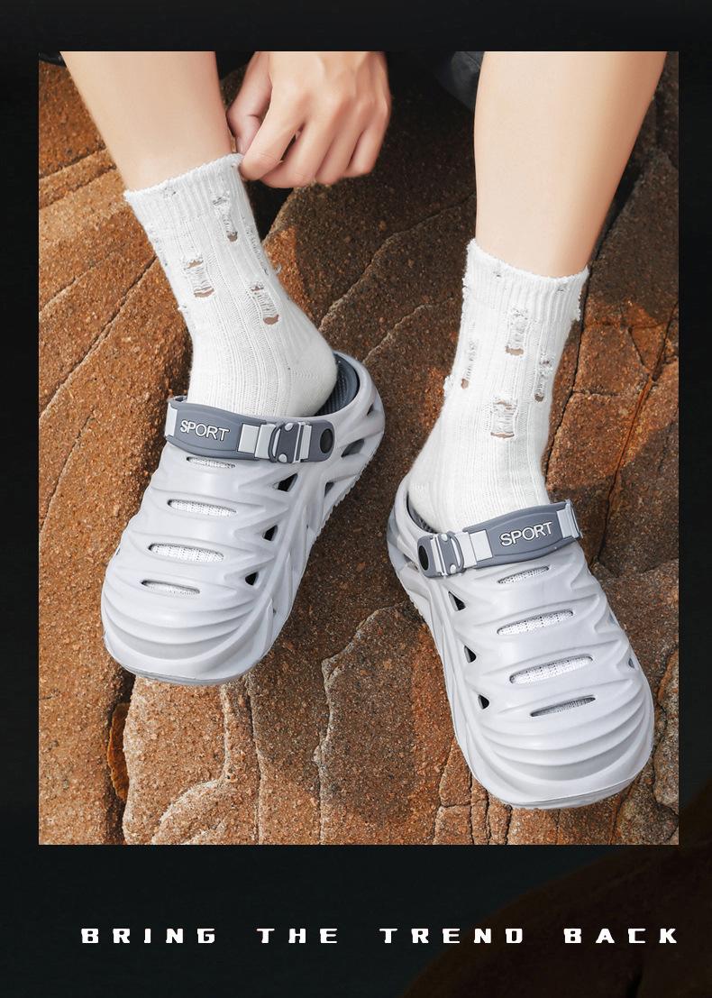 Zapatos con agujeros para hombre en verano 2025 nuevo estilo para uso exterior sandalias de doble propósito con cierres, zapatos antideslizantes y resistentes al desgaste sandalias EVA