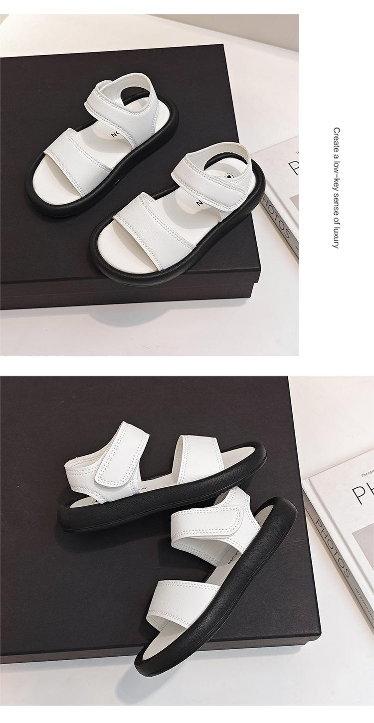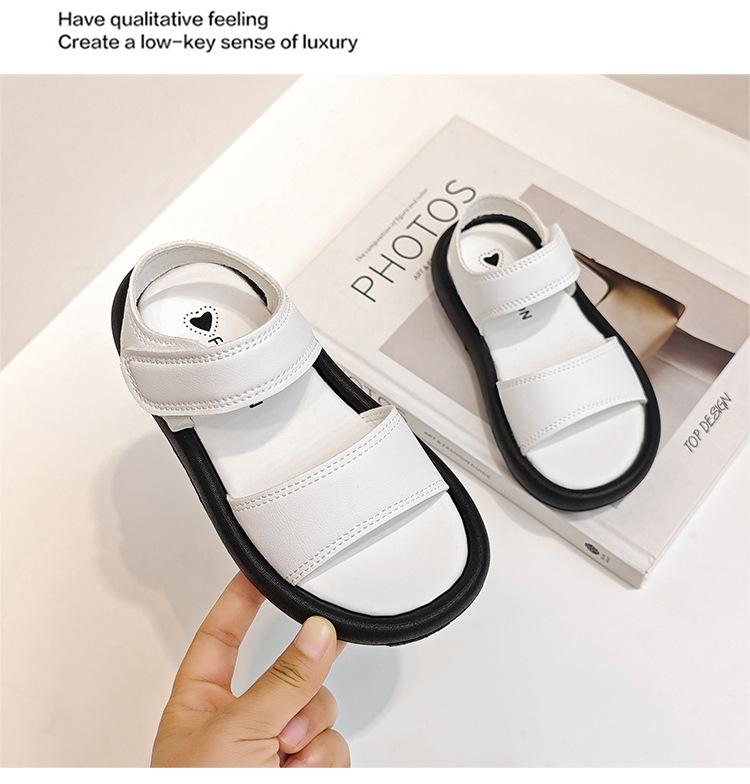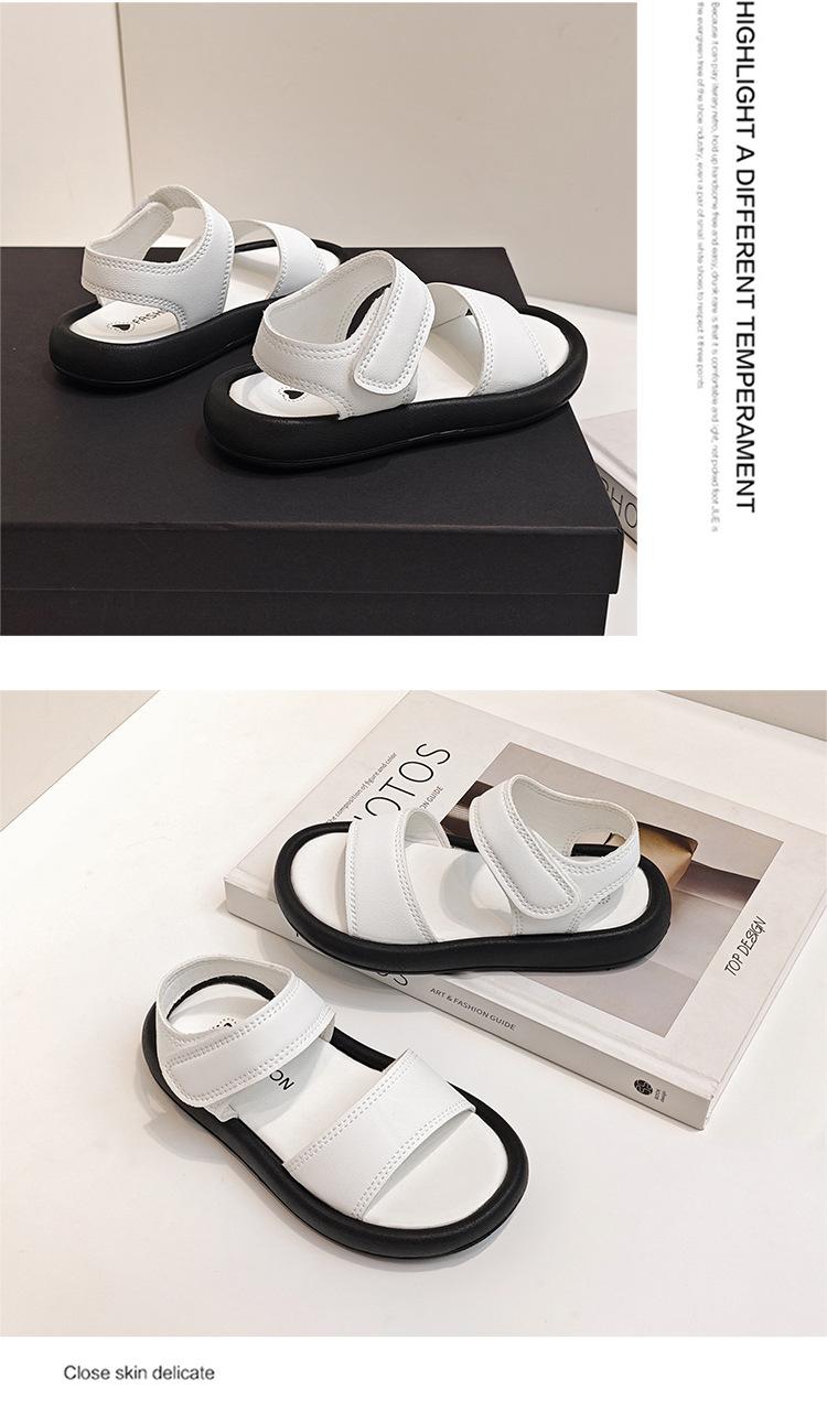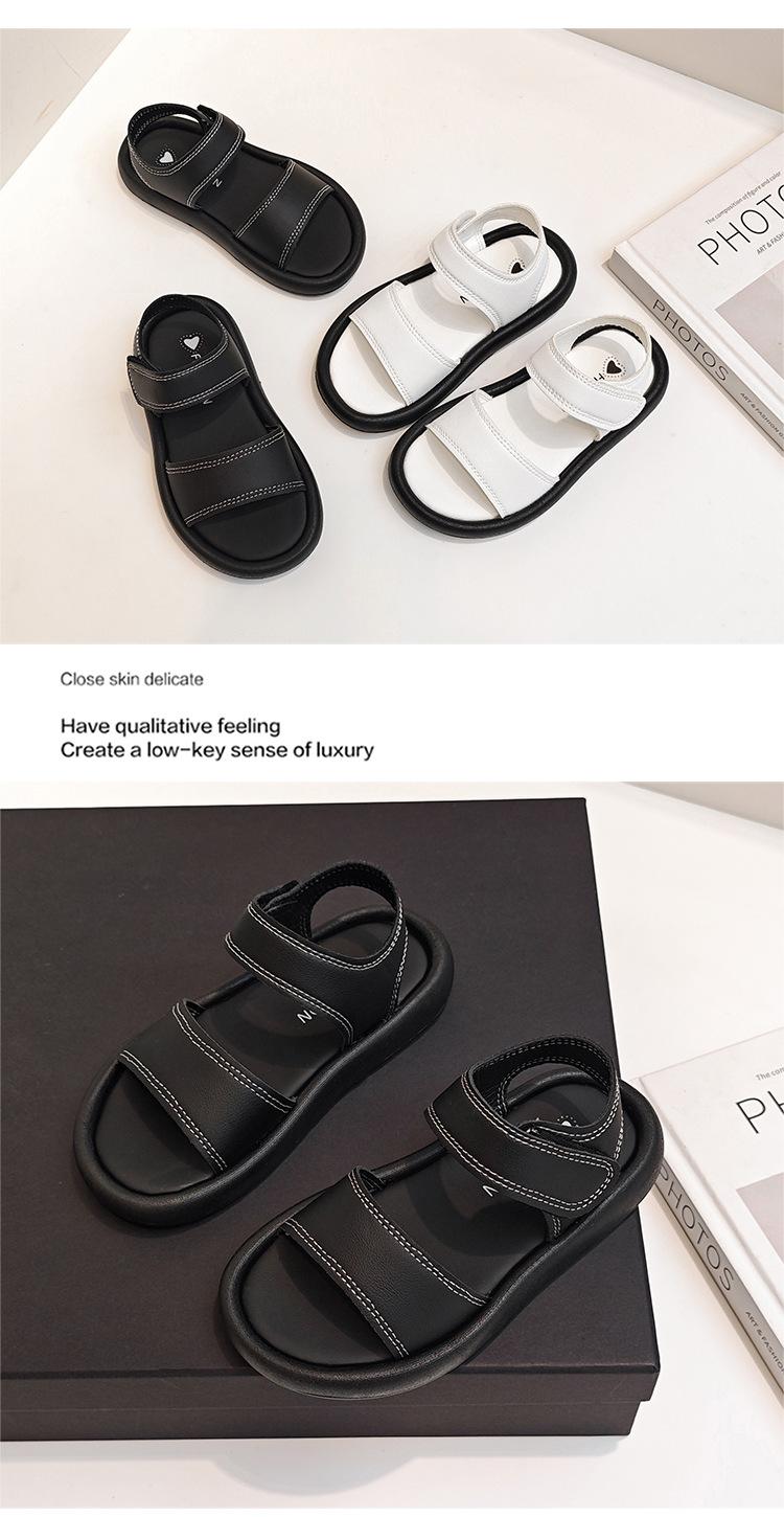 Sandalias para Niñas 2025 Verano Nuevo Zapatos Romanos Estilo Coreano para Niños Bebé Suela Suave Color Sólido Punta Abierta Zapatos de Playa