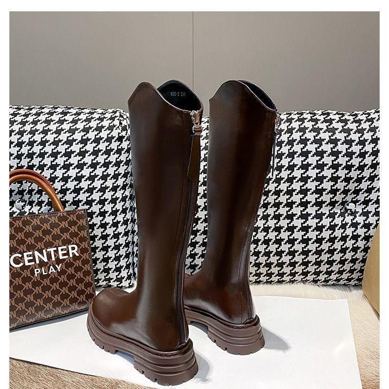 Botas Altas 2025 Nuevo Otoño e Invierno Maillard Botines Botas por Encima de la Rodilla Tacón Grueso Botas de Cuero Ins