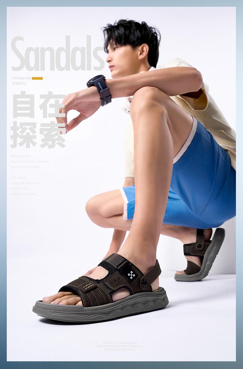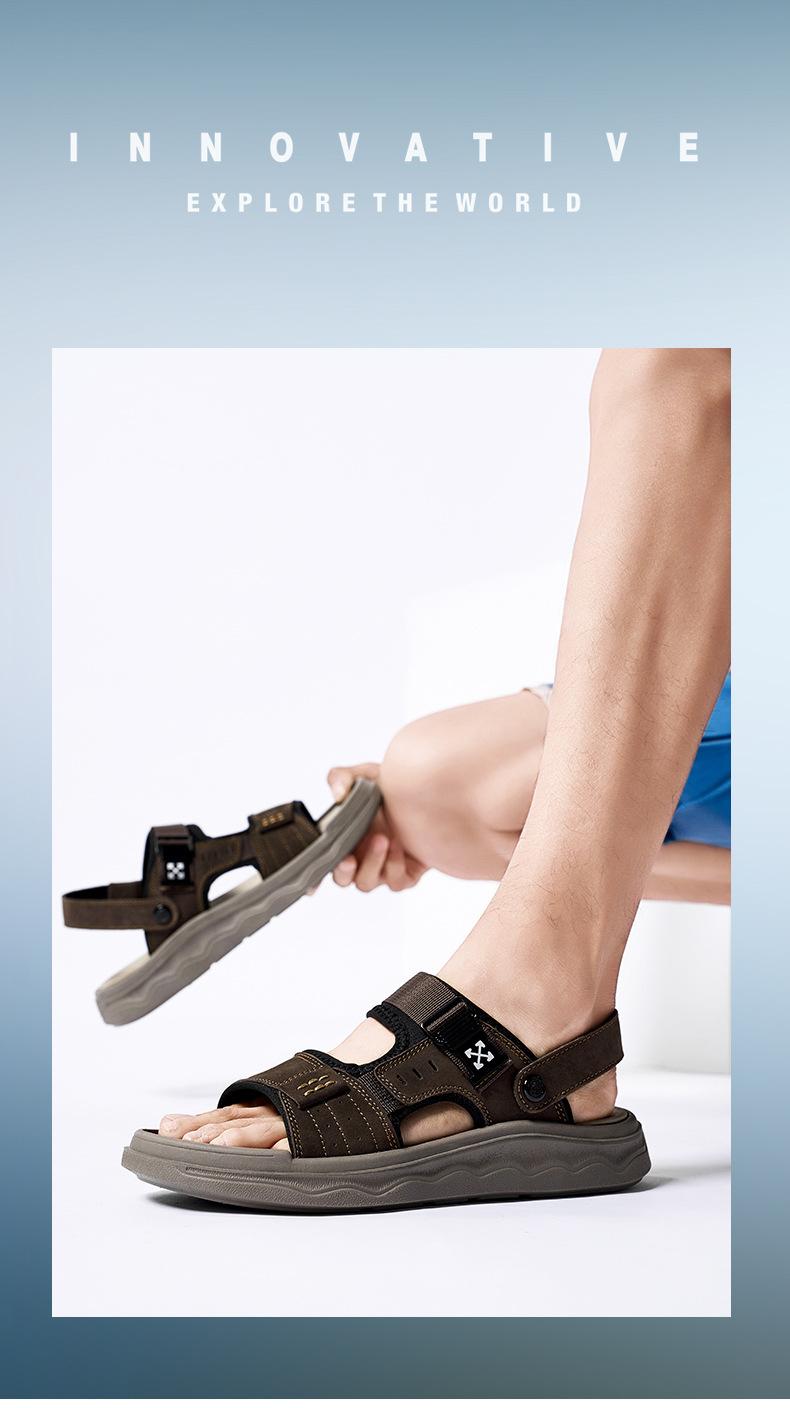Sandalias de Verano para Hombre, Zapatos Casuales de Punta Abierta con Suela Blanda para Playa, Sandalias de Velcro de Doble Propósito Antideslizantes de Suela Gruesa para Exterior para Hombre