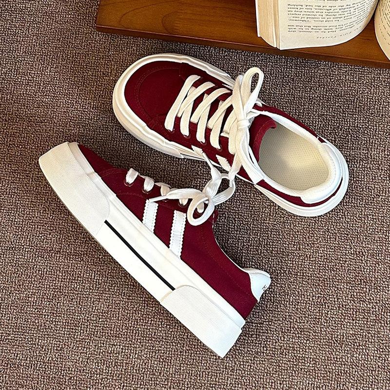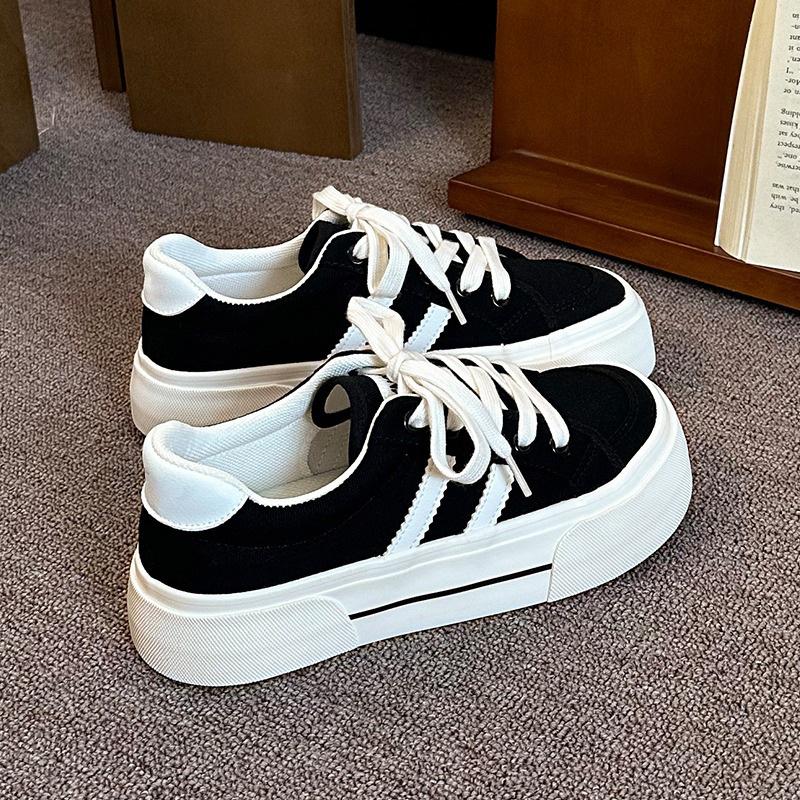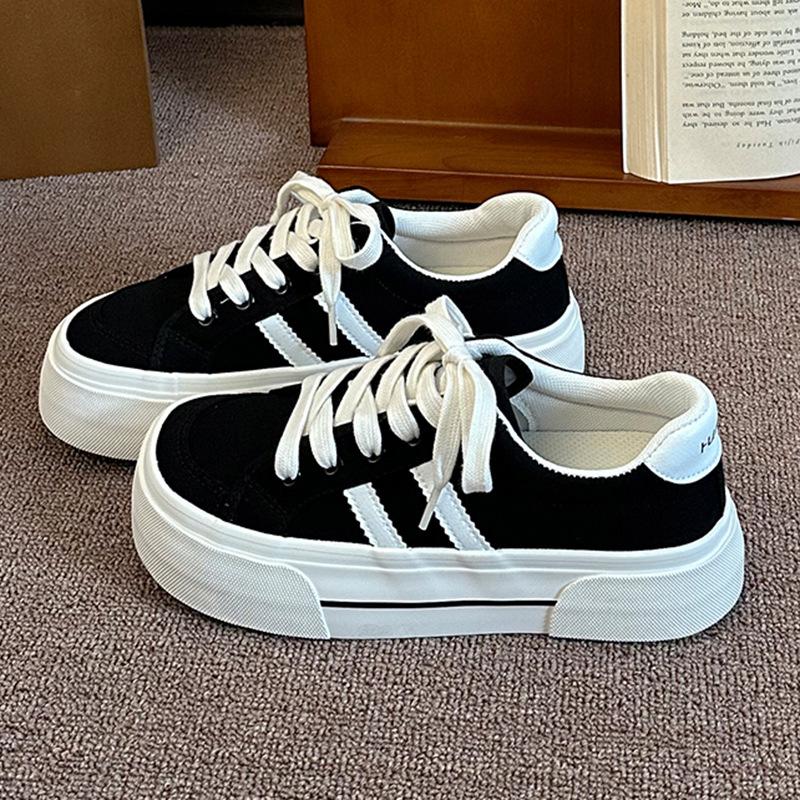 Zapatos Blancos Clásicos Versátiles de Lona Coreanos para Mujer Primavera y Otoño 2025 Nuevos Tenis Casuales Ligeros con Suela Gruesa para Aumentar la Altura