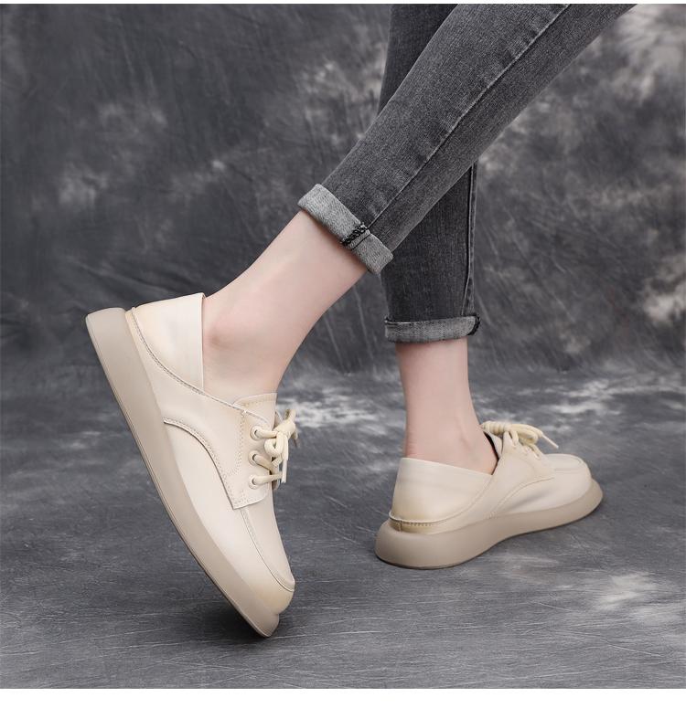 Zapatos Blancos para Mujer 2024 Nuevo Primavera y Otoño Versátiles Zapatos Casuales Flats Trabajo Zapatos Pequeños de Cuero Suela Suave Talla Grande 41