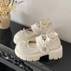 Zapatos Mary Jane Beige Francés para Mujer 2025 Primavera Nuevo Estilo Lazo Boca Baja Hada Brisa Nocturna Suaves Zapatos Planos