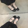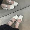 Zapatos Mary Jane de Punta Cuadrada Nicho Francés con Hebilla de Lentejuelas para Mujer 2025 Nuevos Zapatos Planos Estilo Hada Plateado con Falda