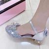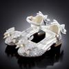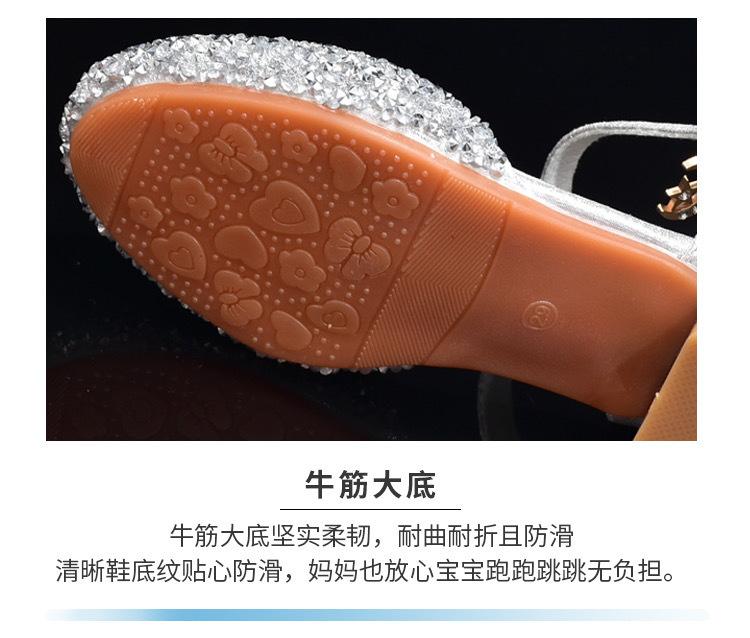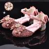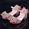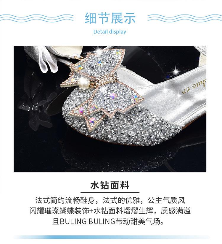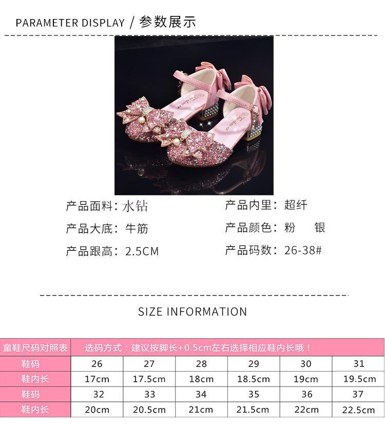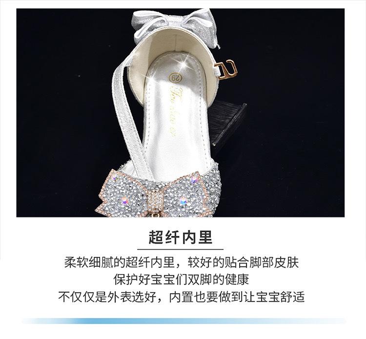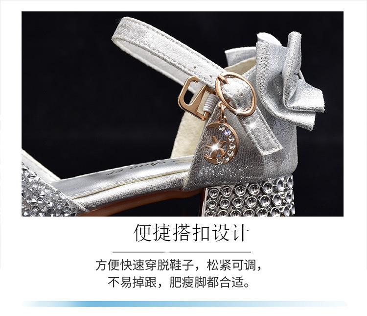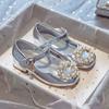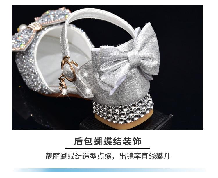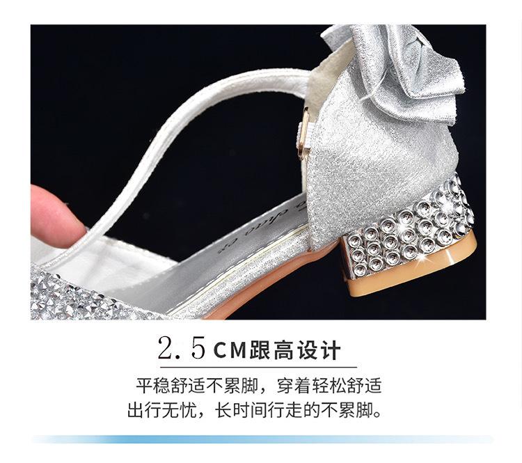 Zapatos plateados nuevos de cuero para niños, vestido de pasarela de princesa para presentación, zapatos de cristal, niñas, suela blanda, tacones altos pequeños