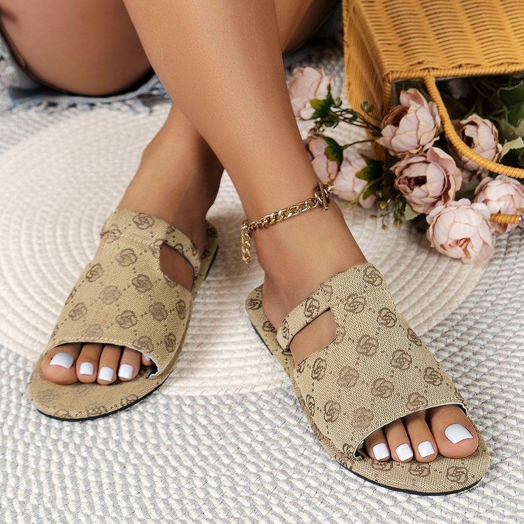 Nuevas Sandalias de Playa Bordadas de Estilo Europeo y Americano Transfronterizo de Comercio Exterior de Talla Grande Plana 2024 Zapatillas Ligeras para Mujer