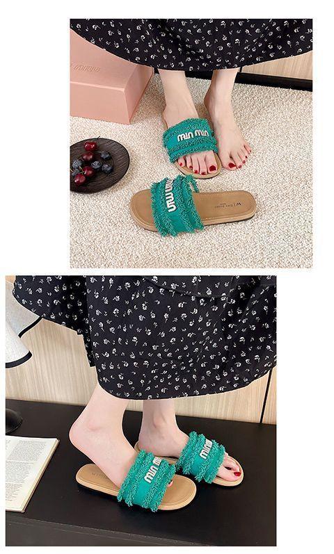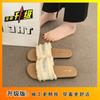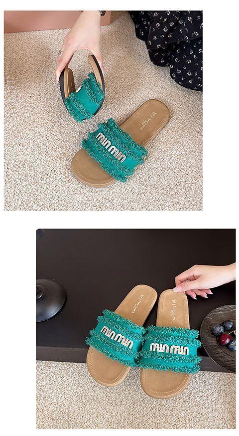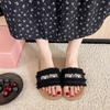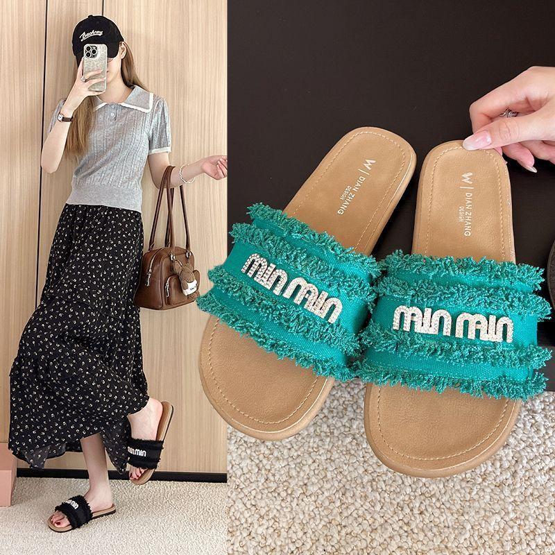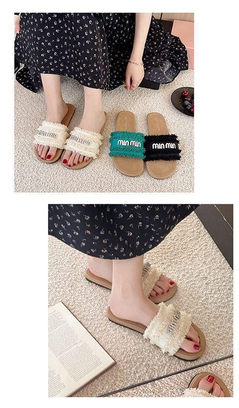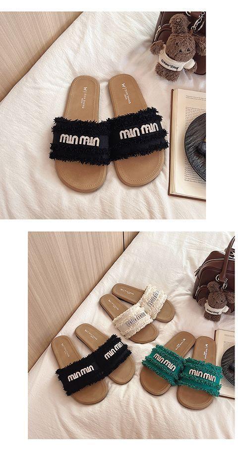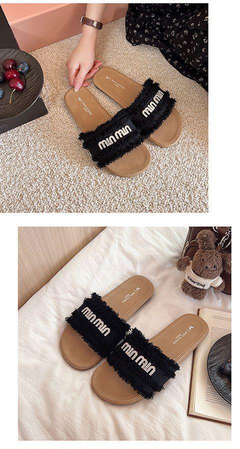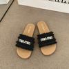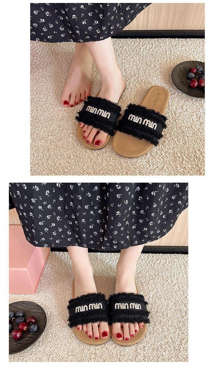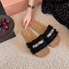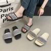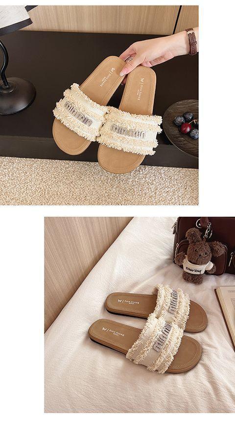 Sandalias planas de moda con letras de diamantes de imitación y punta abierta, zapatillas francesas para mujer, verano 2025, nuevo estilo