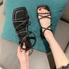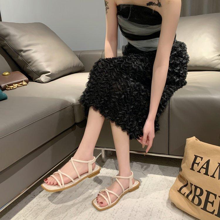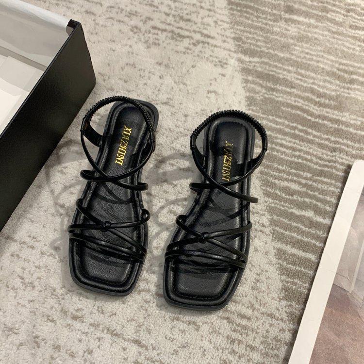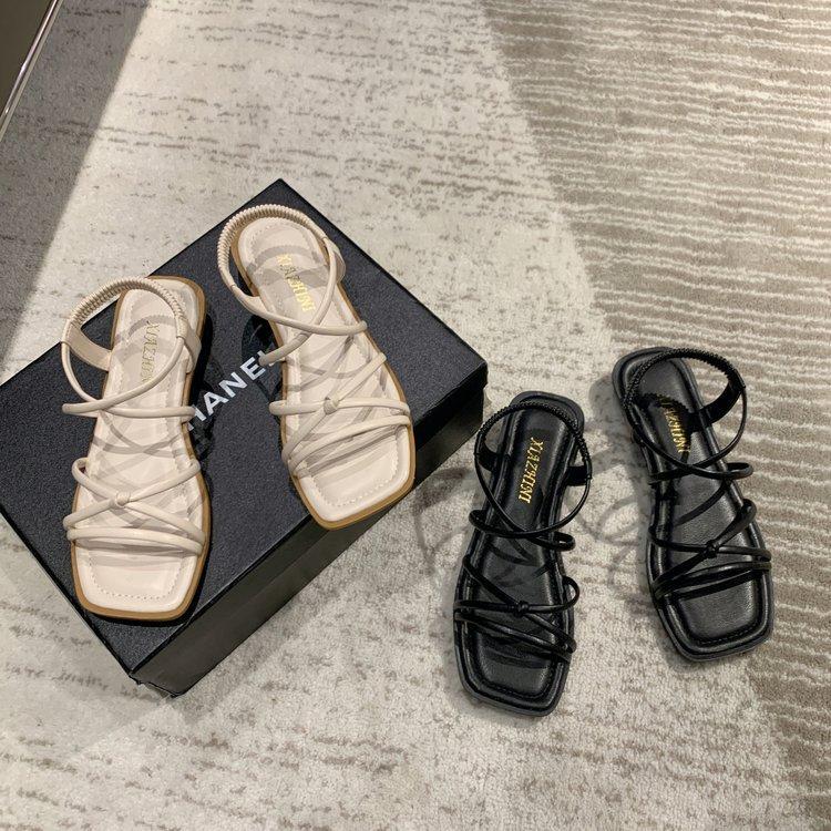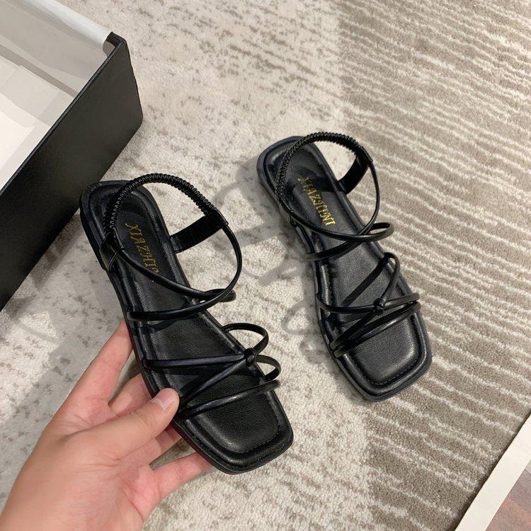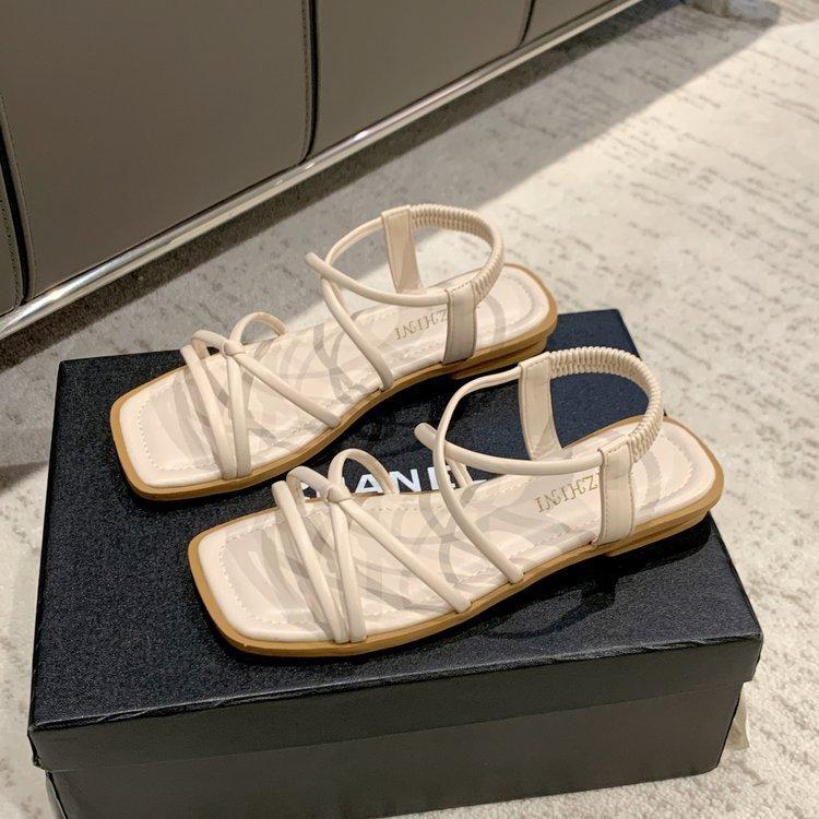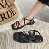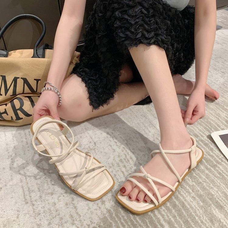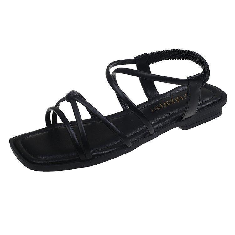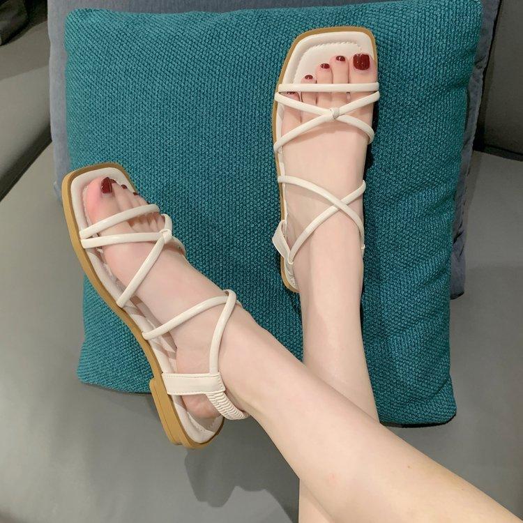 Zapatos Casuales de Playa de Punta Abierta con Elástico Cruzado para Mujer al Por Mayor 2025 Primavera Nuevas Sandalias Planas para Mujer