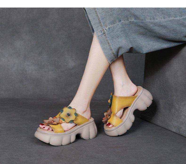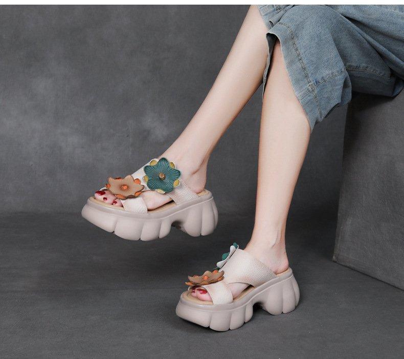 Verano 2025 Nuevo Transpirable Estilo Étnico Retro Zapatos de Plataforma Medias Pantuflas Mujer Sandalias Transfronterizas para Mujer