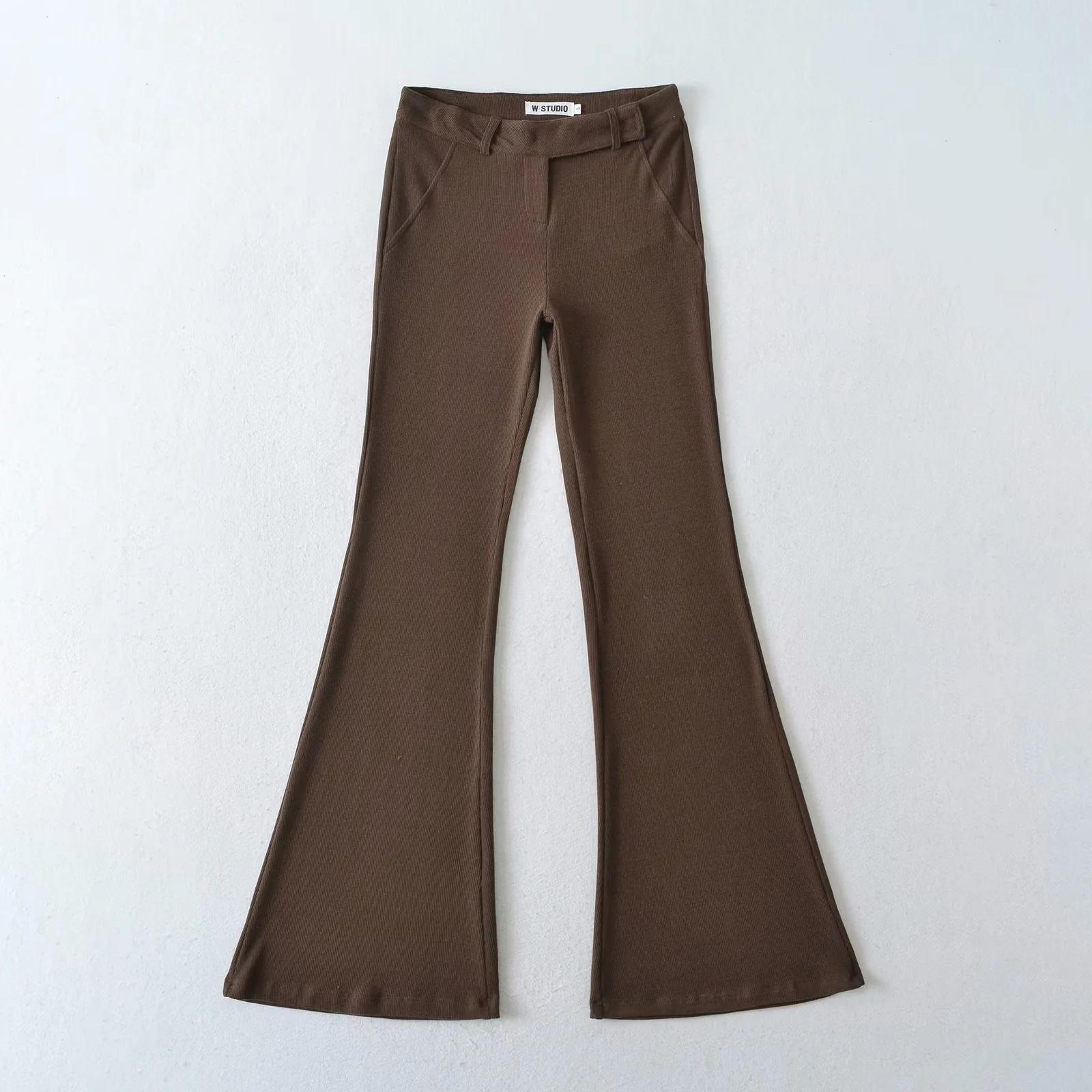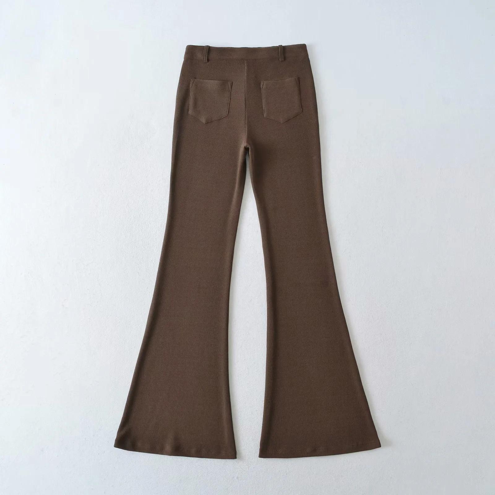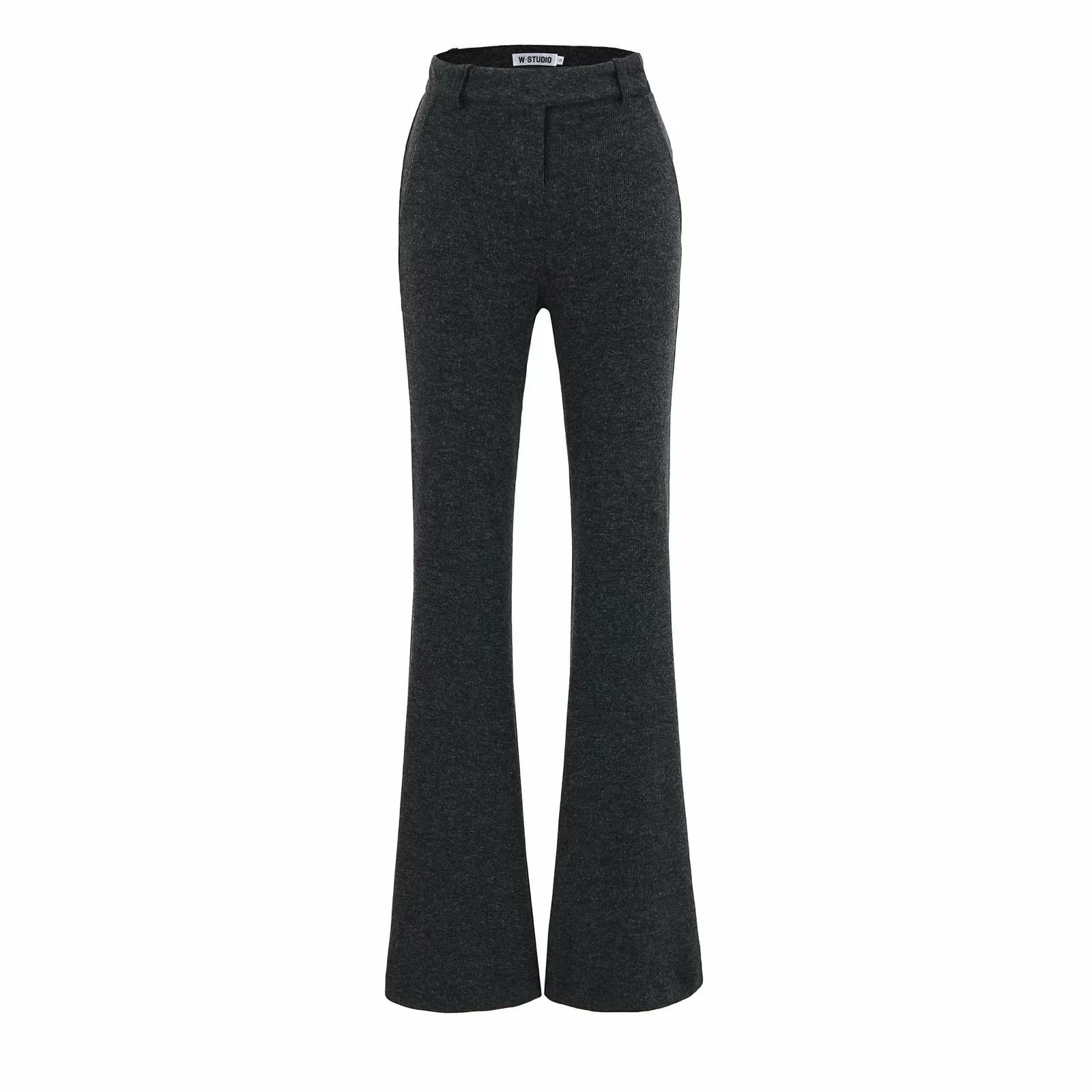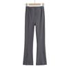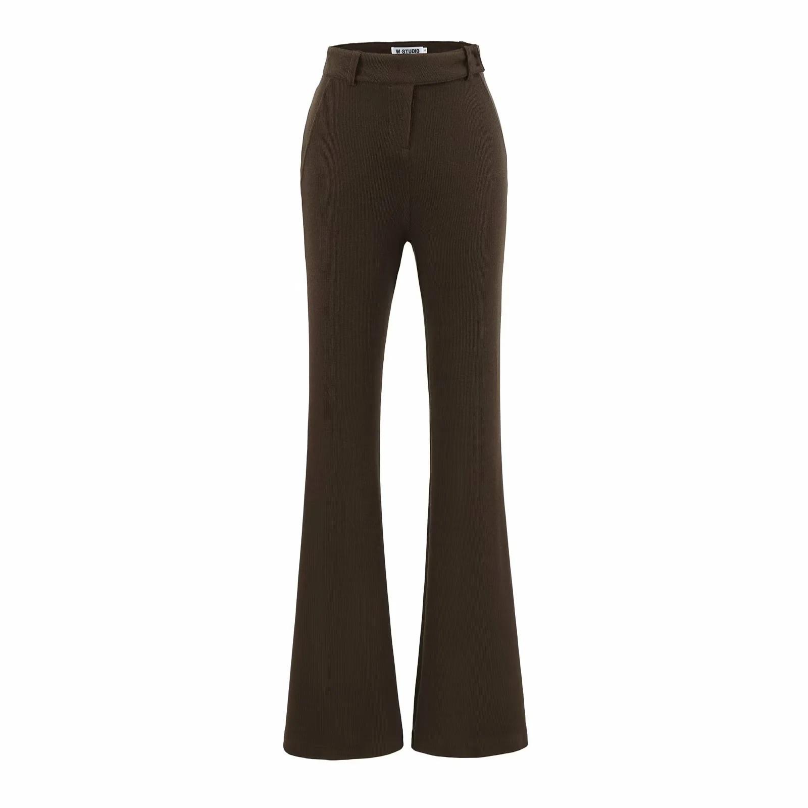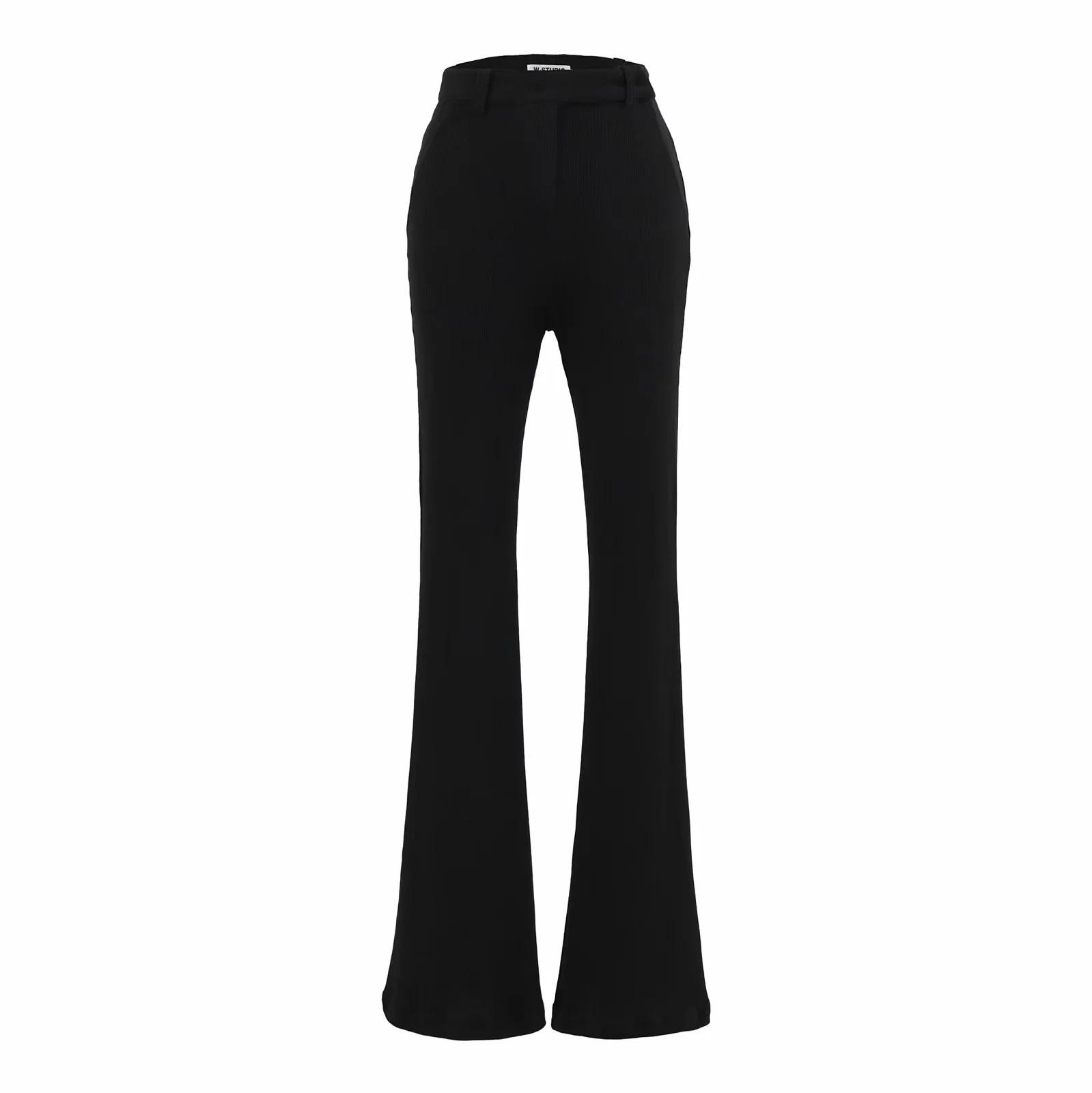 Pantalones casuales negros suaves de punto microacampanados para mujer 2025 Otoño Nuevo Cintura alta Slim Elásticos Largo hasta el suelo