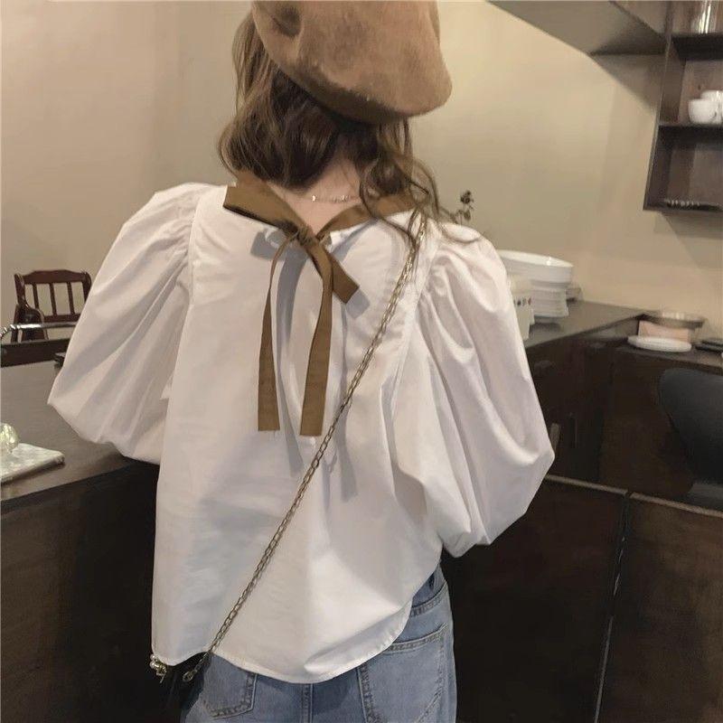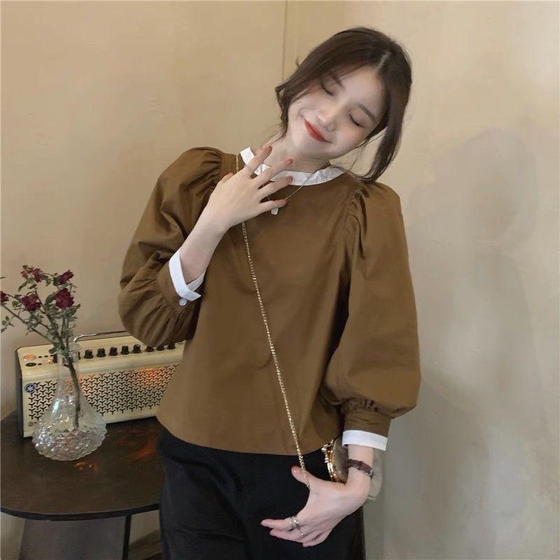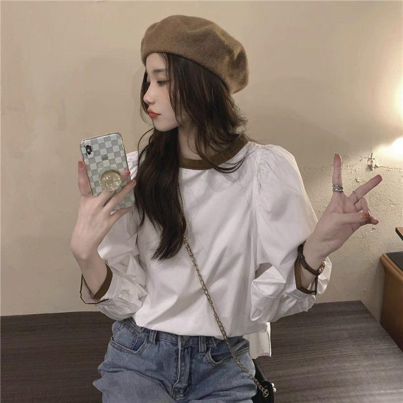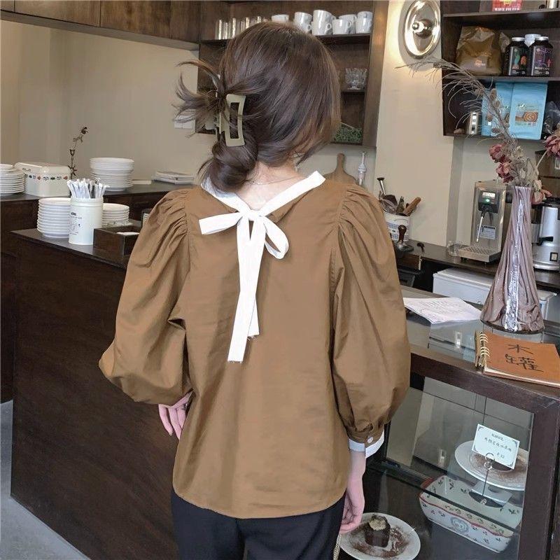 Nueva Camisa Holgada estilo coreano estilo francés retro de manga larga con sentido del diseño, elegante top tipo jersey con cordones para mujer