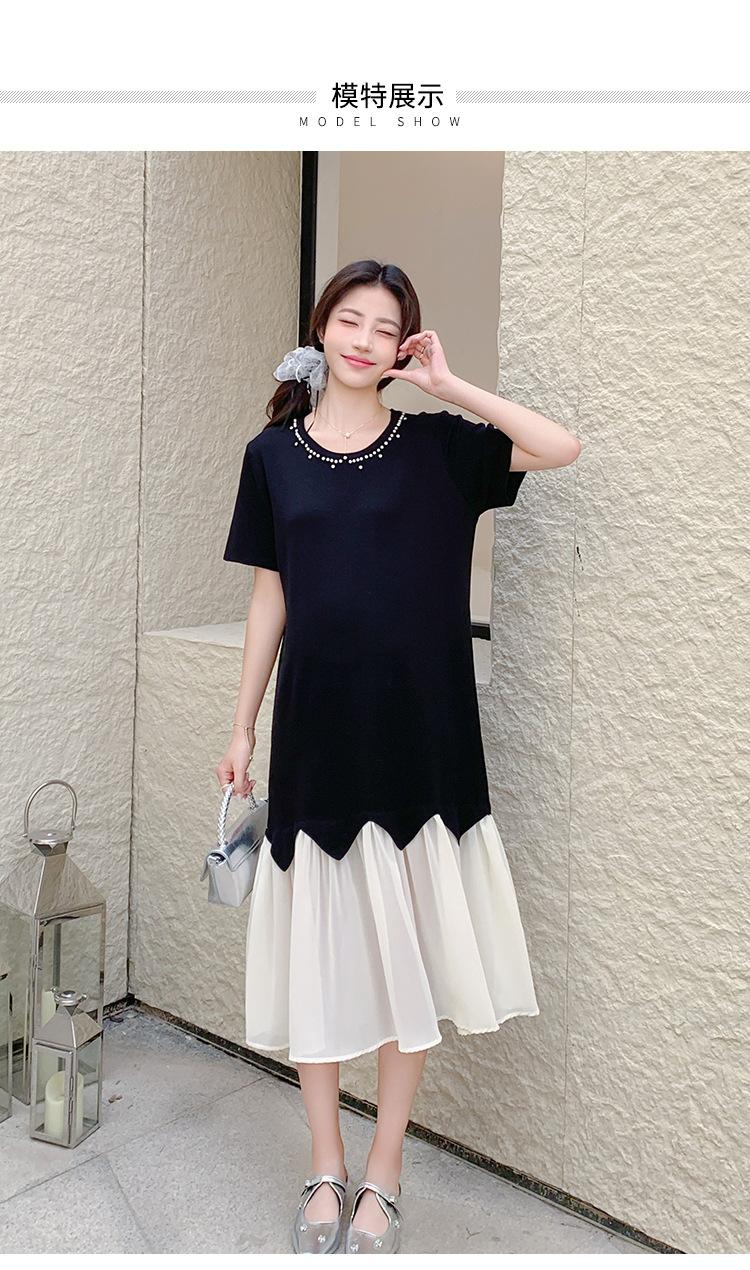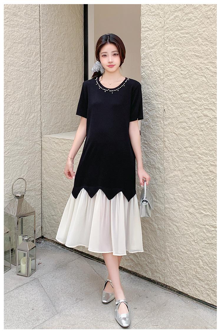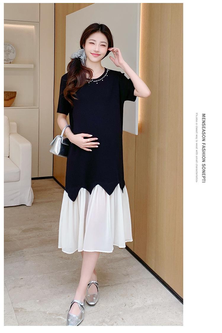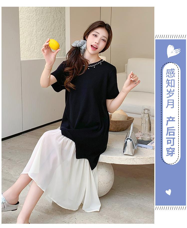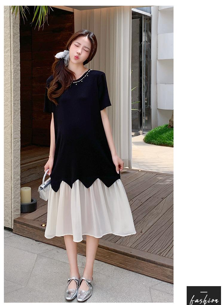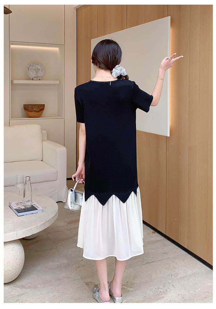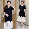Maternidad 2025 Verano Nuevo Moda Coreana Costuras Falso Dos Suelto Slim Tejido Vestido para Mujeres Embarazadas