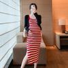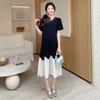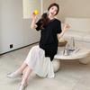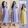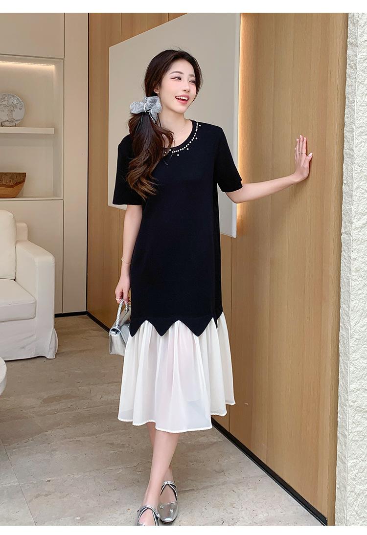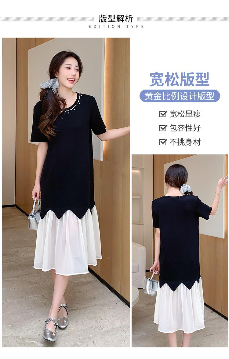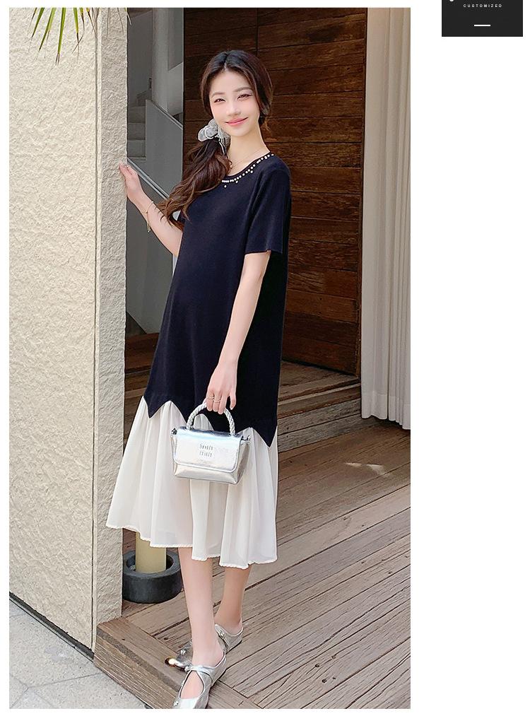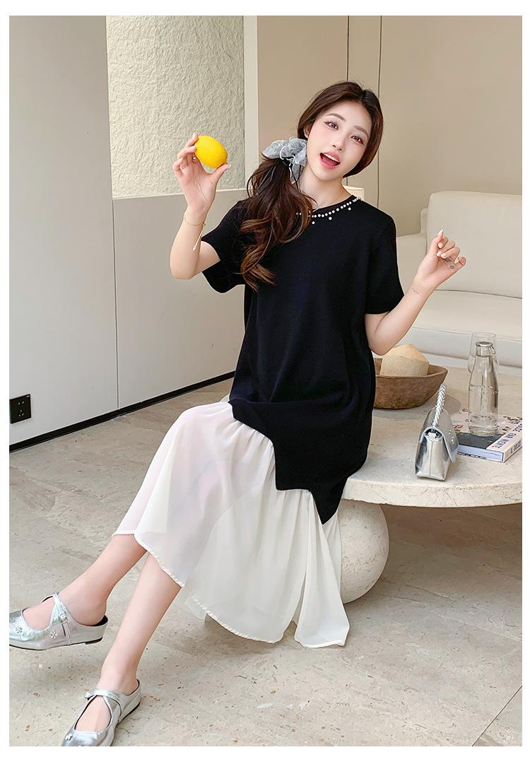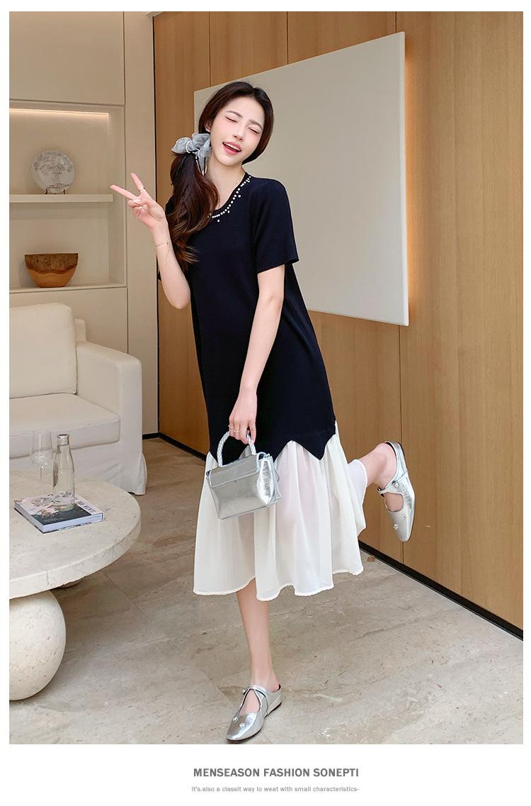 Maternidad 2025 Verano Nuevo Moda Coreana Costuras Falso Dos Suelto Slim Tejido Vestido para Mujeres Embarazadas