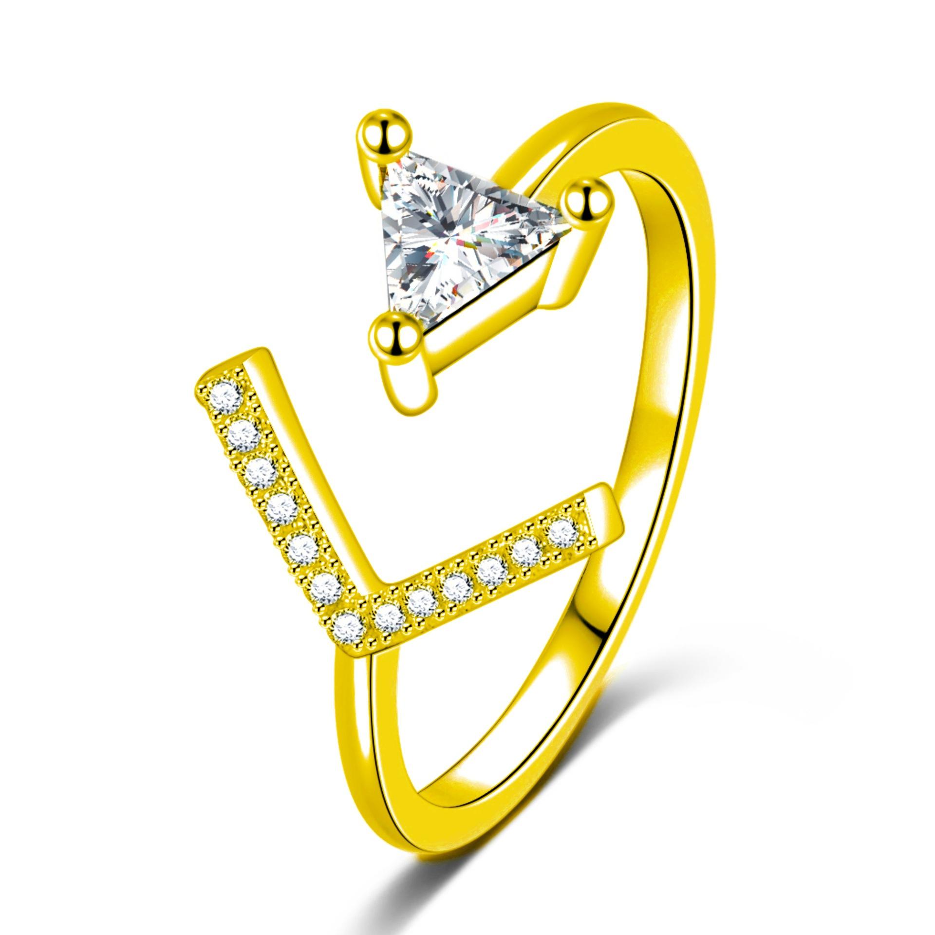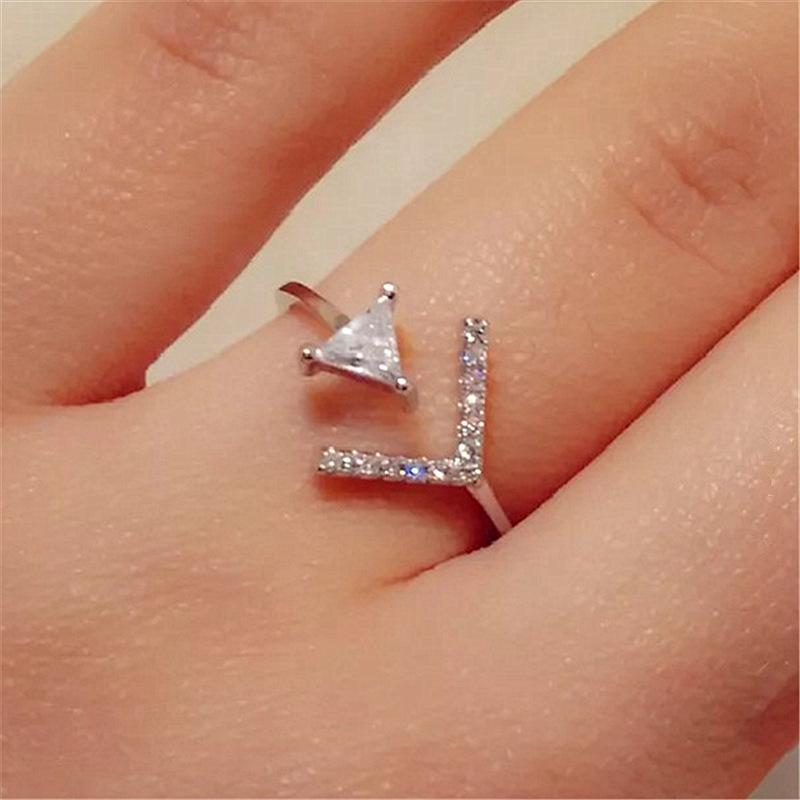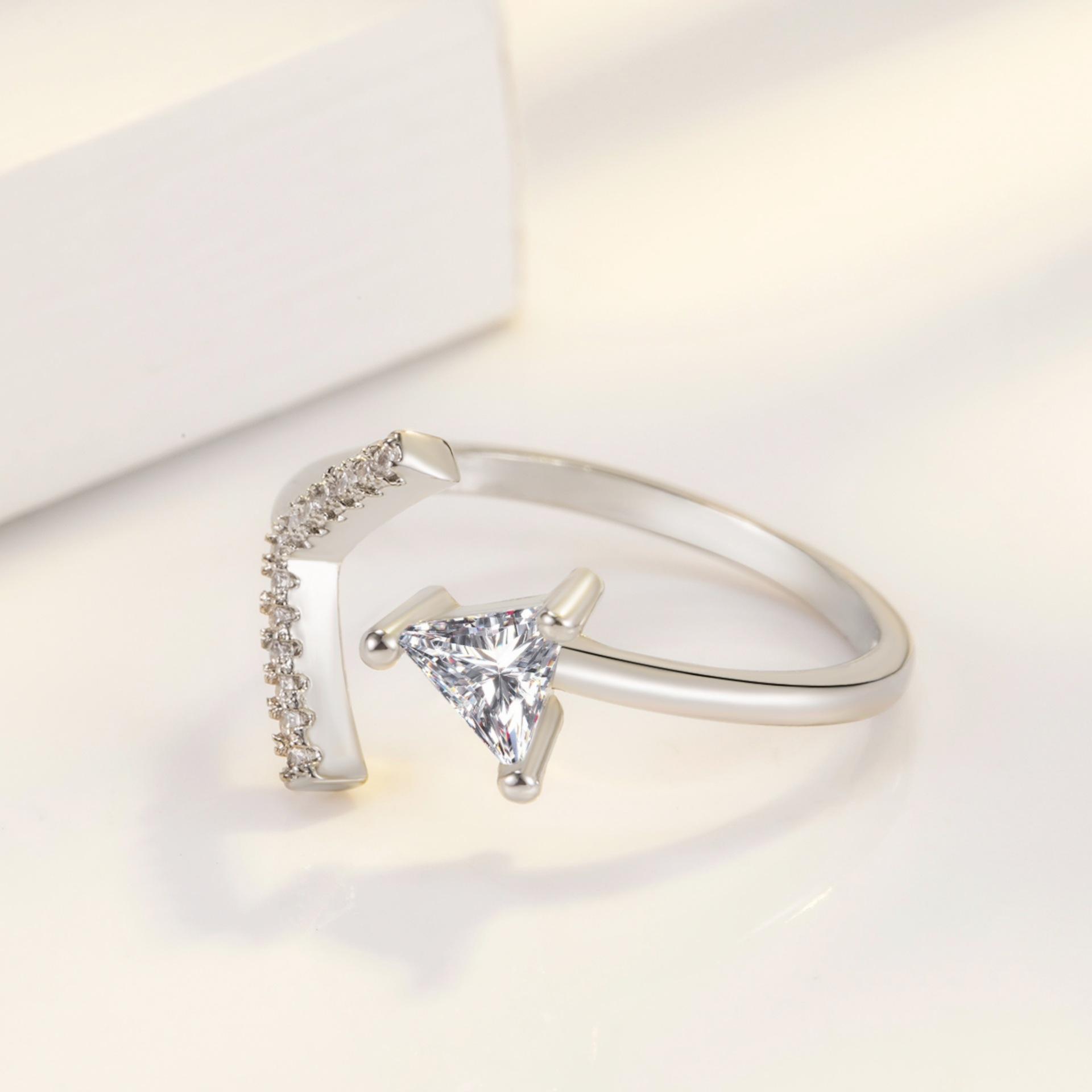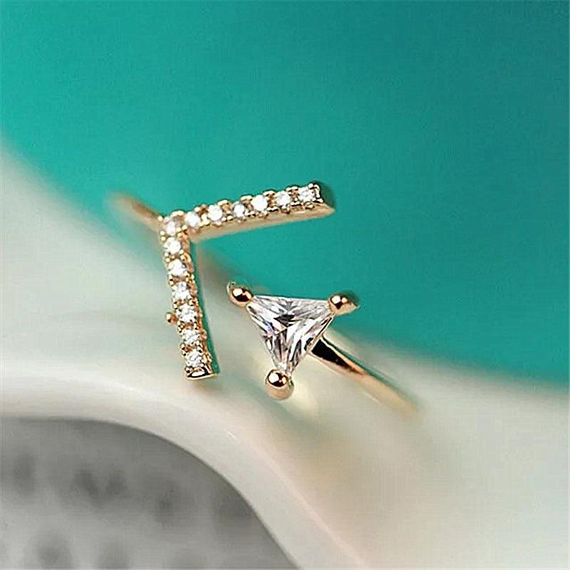 Moda coreana moda personalidad joyería chapado en oro anillo de circonita triángulo anillo de flecha anillo de cola abierta anillo anillo al por mayor