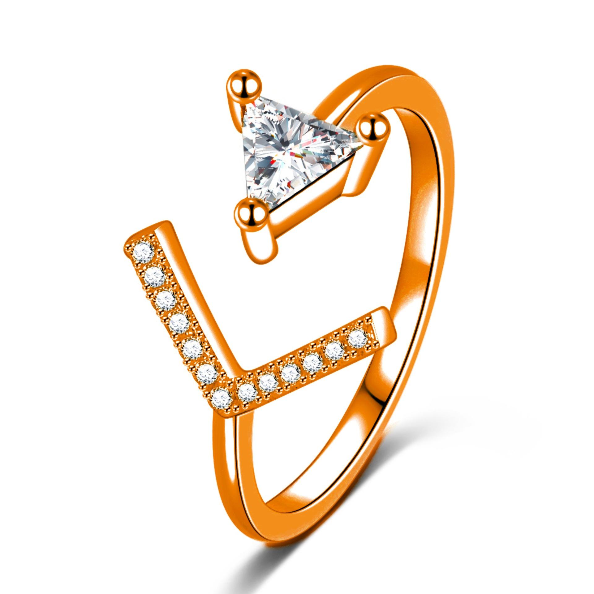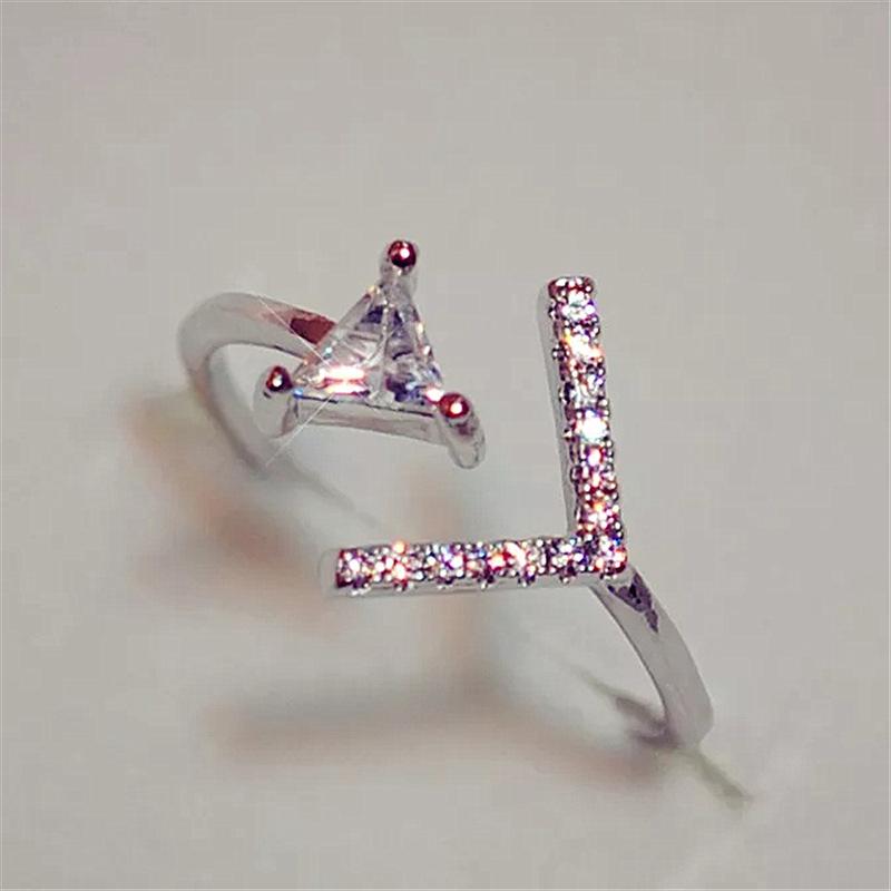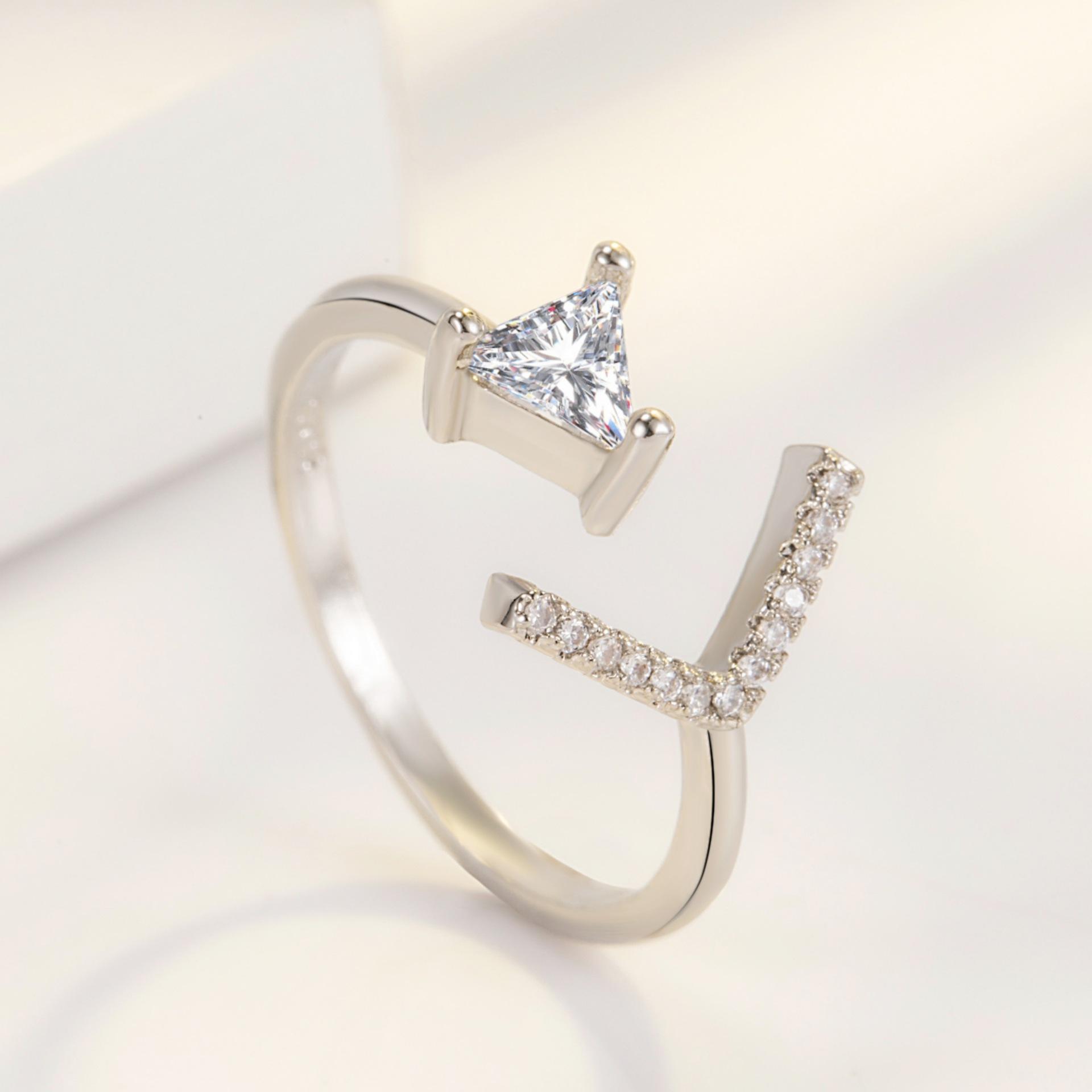 Moda coreana moda personalidad joyería chapado en oro anillo de circonita triángulo anillo de flecha anillo de cola abierta anillo anillo al por mayor