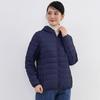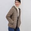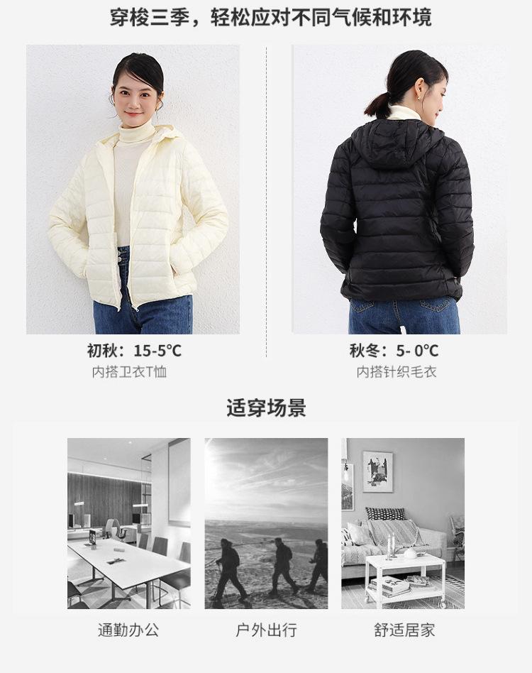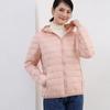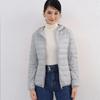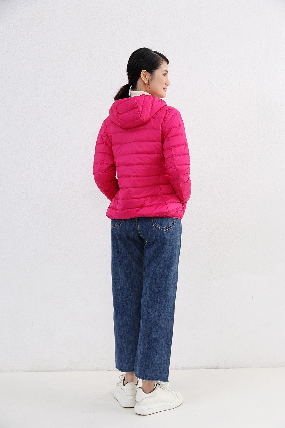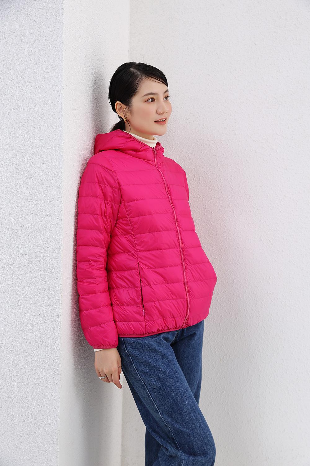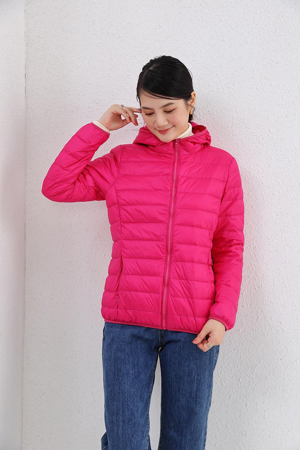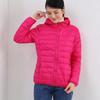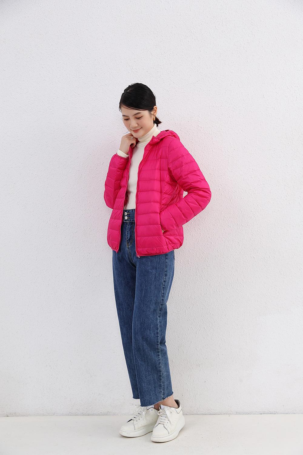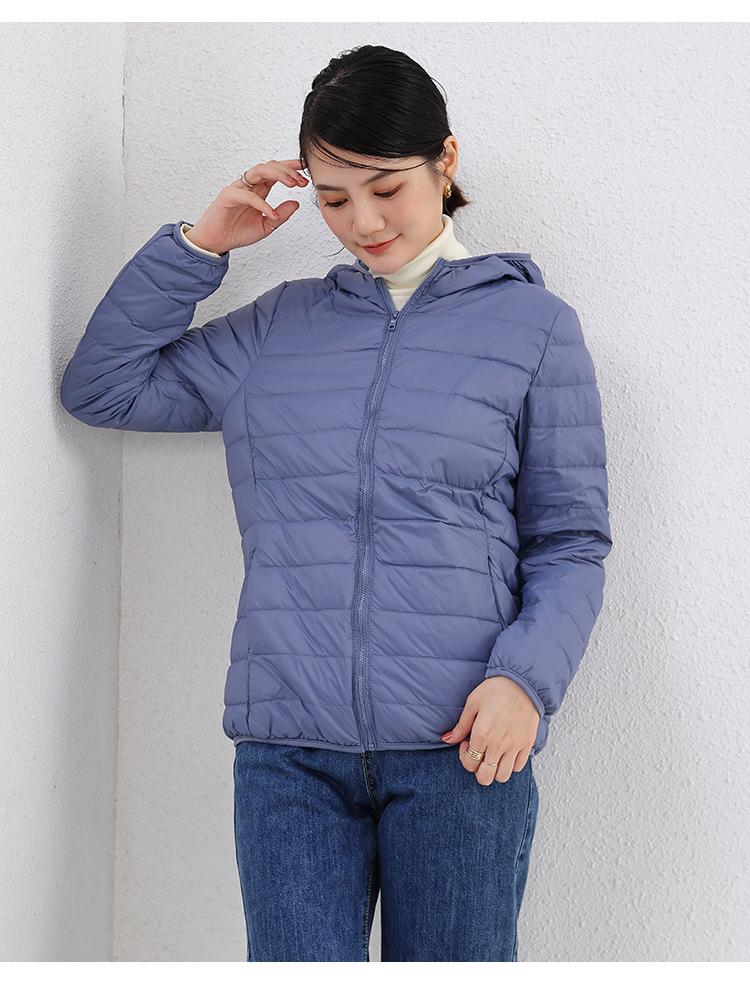Foto real 2023 otoño e invierno nuevo abrigo de plumas delgado con capucha de color sólido combinable