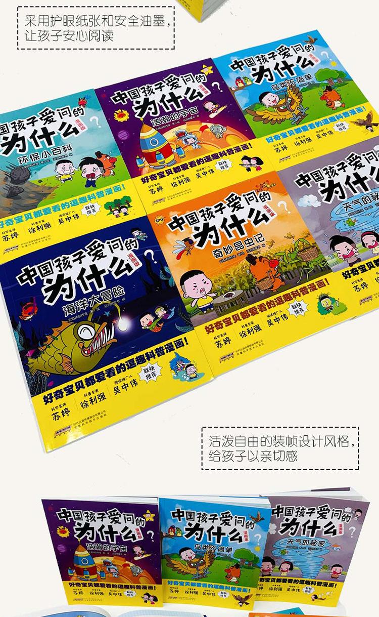 A los niños chinos les encanta preguntar por qué Versión cómic, 6 volúmenes de imágenes a color, Hermosa versión ilustrada de libros de cómics para niños, Libros de divulgación científica