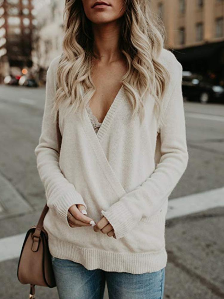 2025 Otoño e Invierno Nuevo Amazon Aliexpress Punto Cuello en V Empalme de Terciopelo de Conejo Punto Cruzado Exportación Punto para Mujer