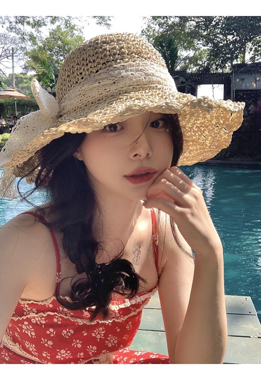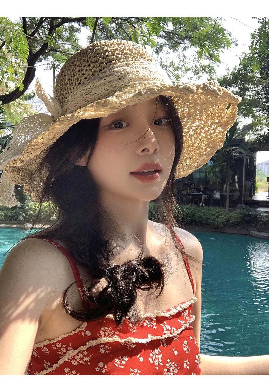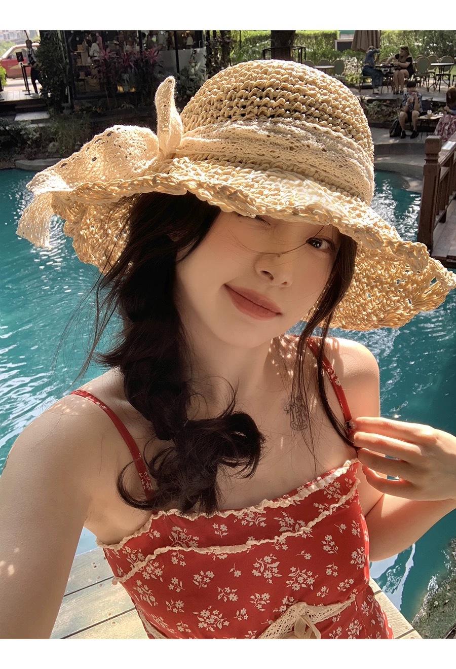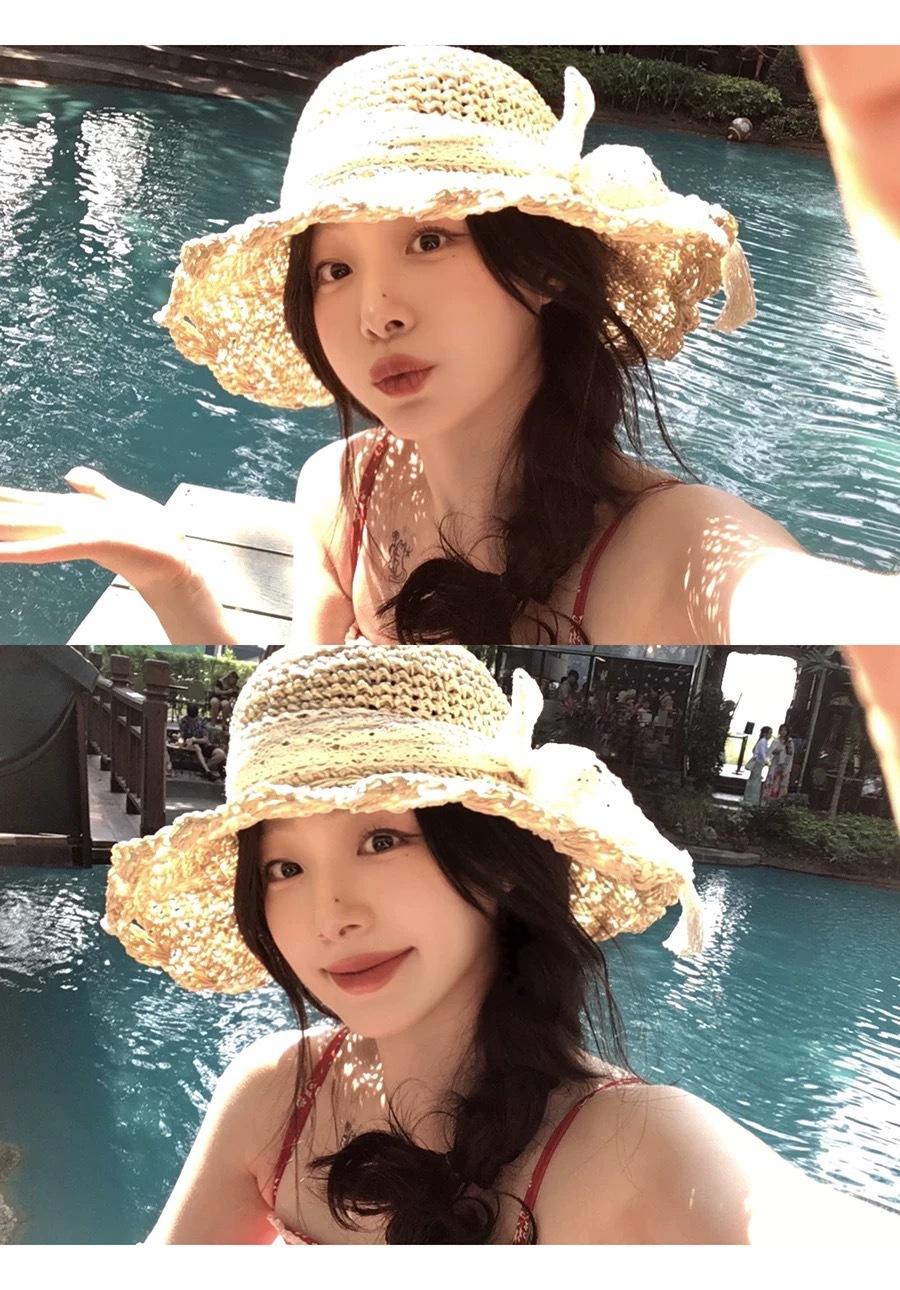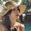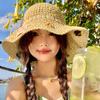 Sombrero de Paja Hueco Tejido a Mano Nuevo 2025 para Mujer Primavera y Verano Playa Marítima Lazo Sombrero para el Sol Sombrero de Pescador
