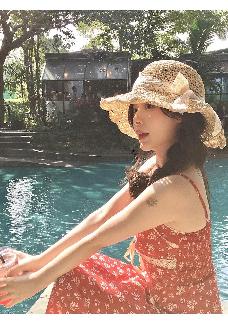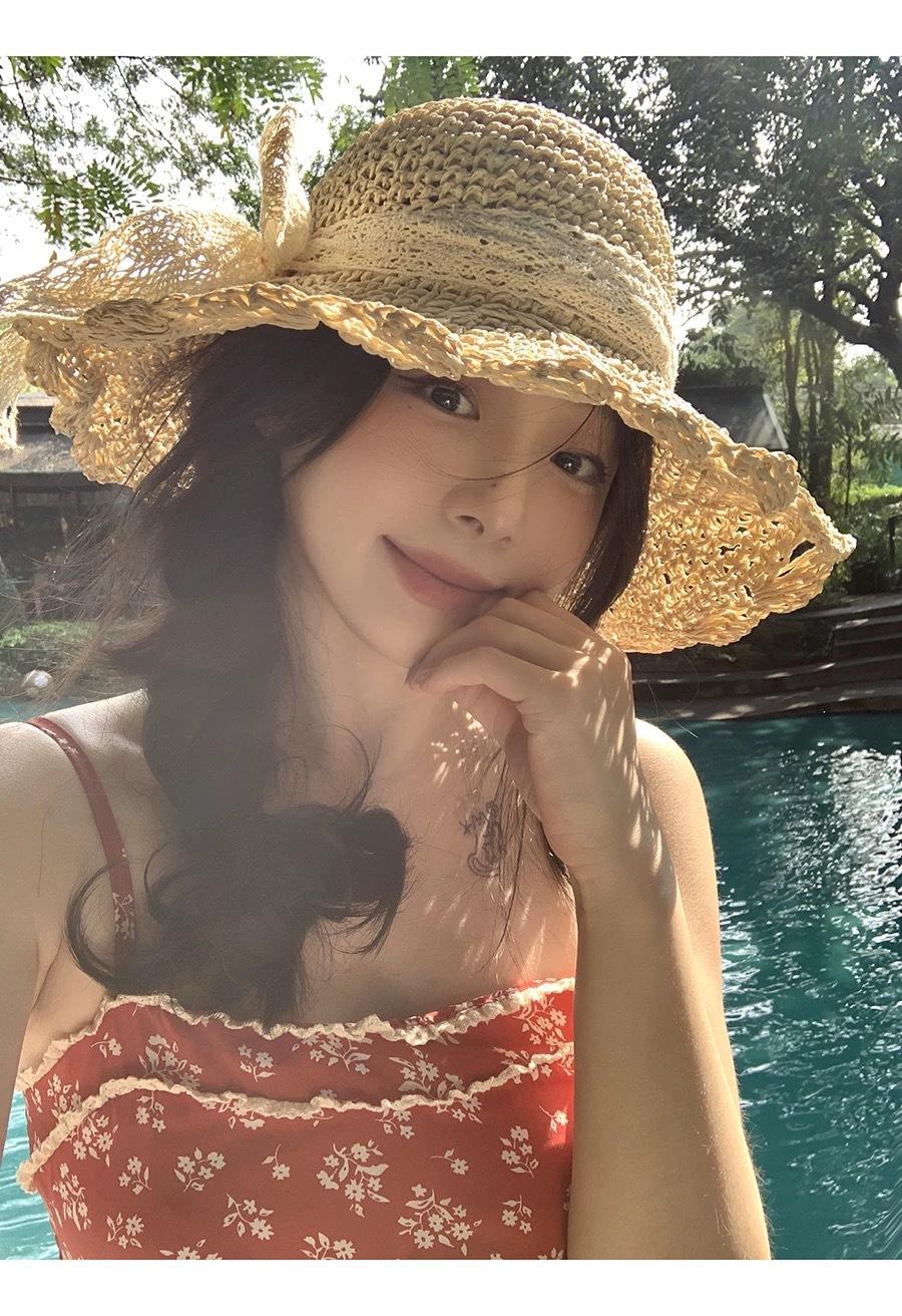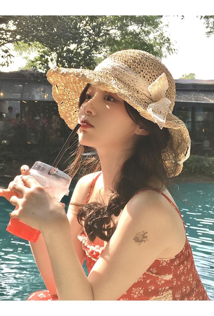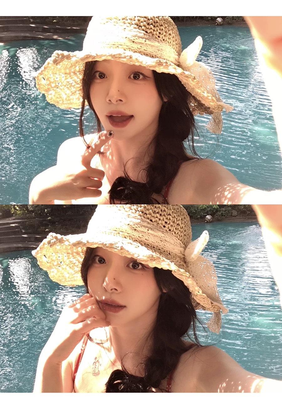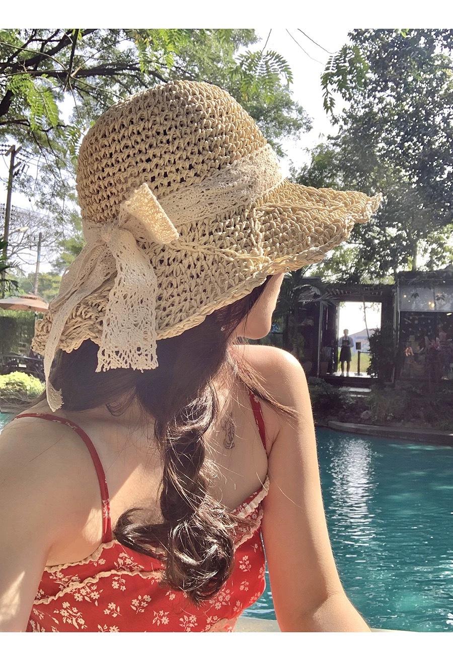 Sombrero de Paja Hueco Tejido a Mano Nuevo 2025 para Mujer Primavera y Verano Playa Marítima Lazo Sombrero para el Sol Sombrero de Pescador