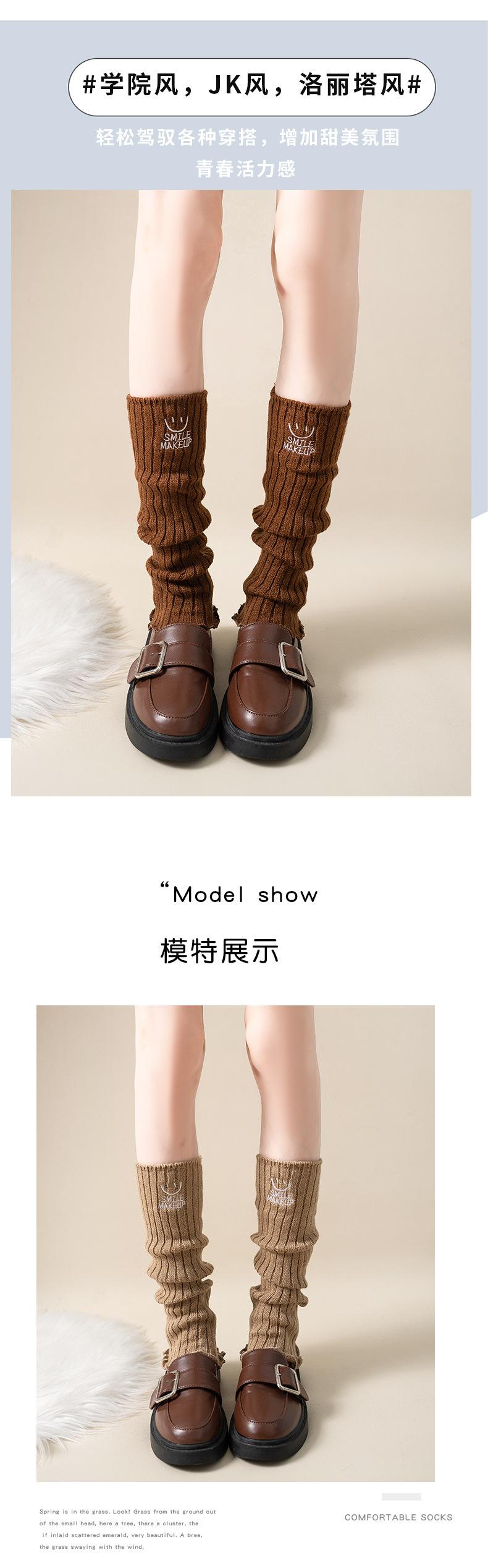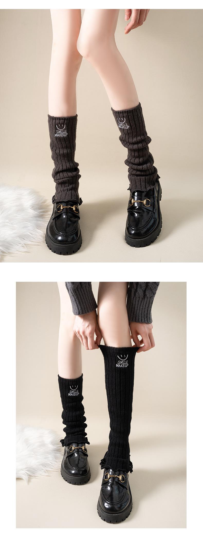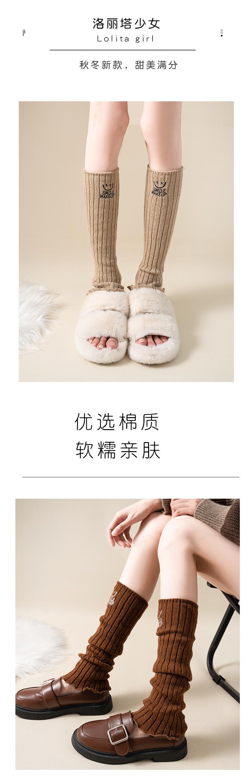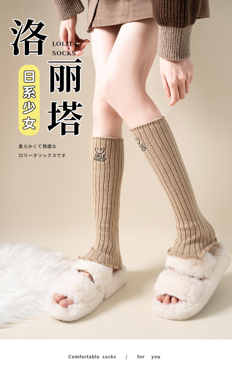 Calcetines apilados para mujer, otoño e invierno, medias adelgazantes para chicas calientes, bordadas con cara sonriente, cubiertas de piernas de lana de becerro japonesa, fábrica al por mayor