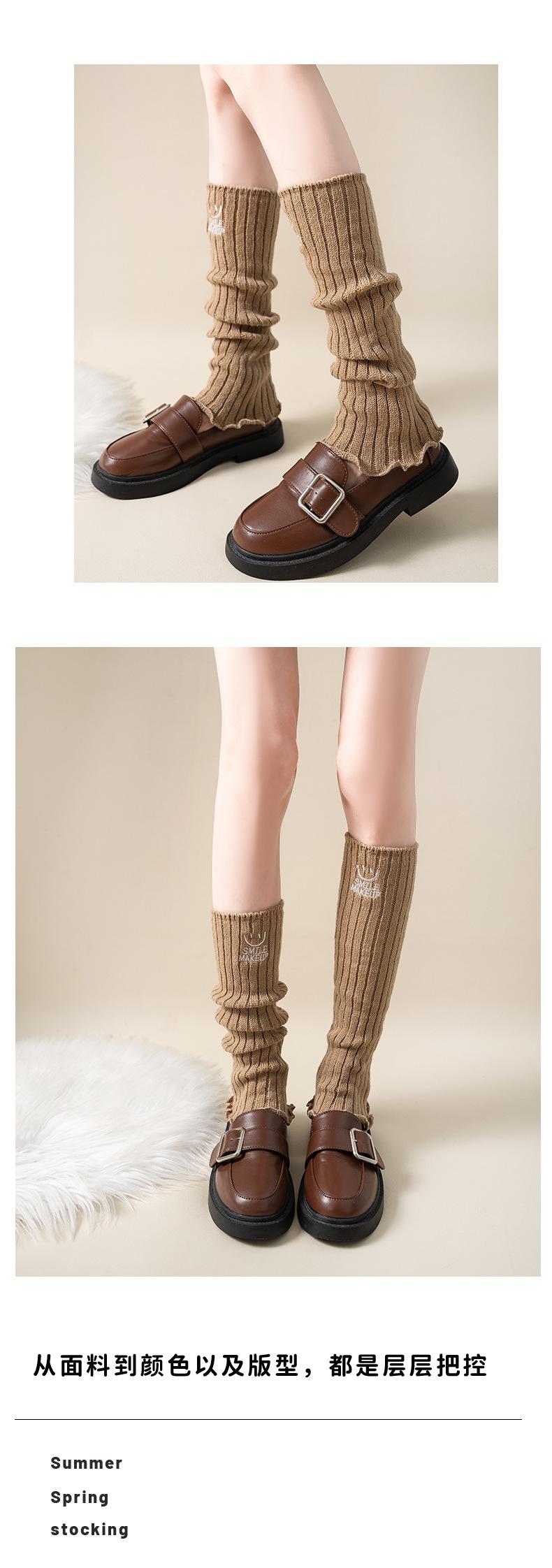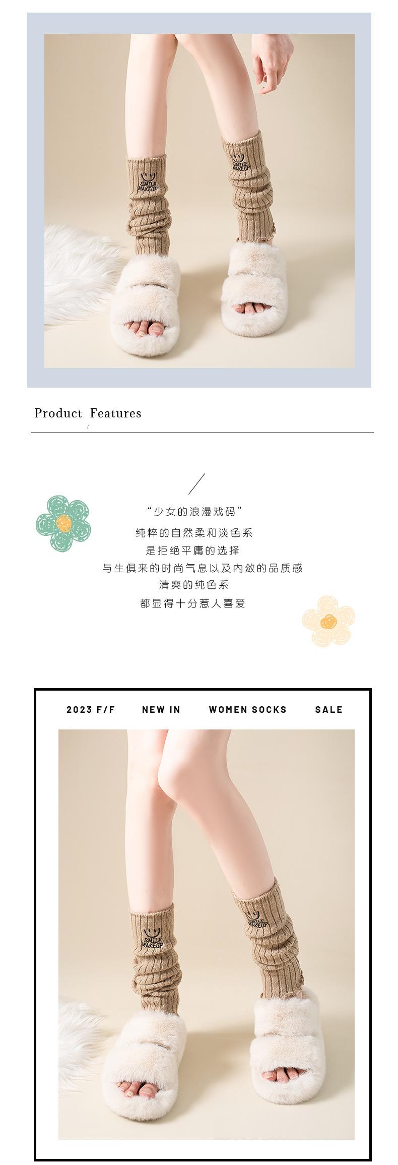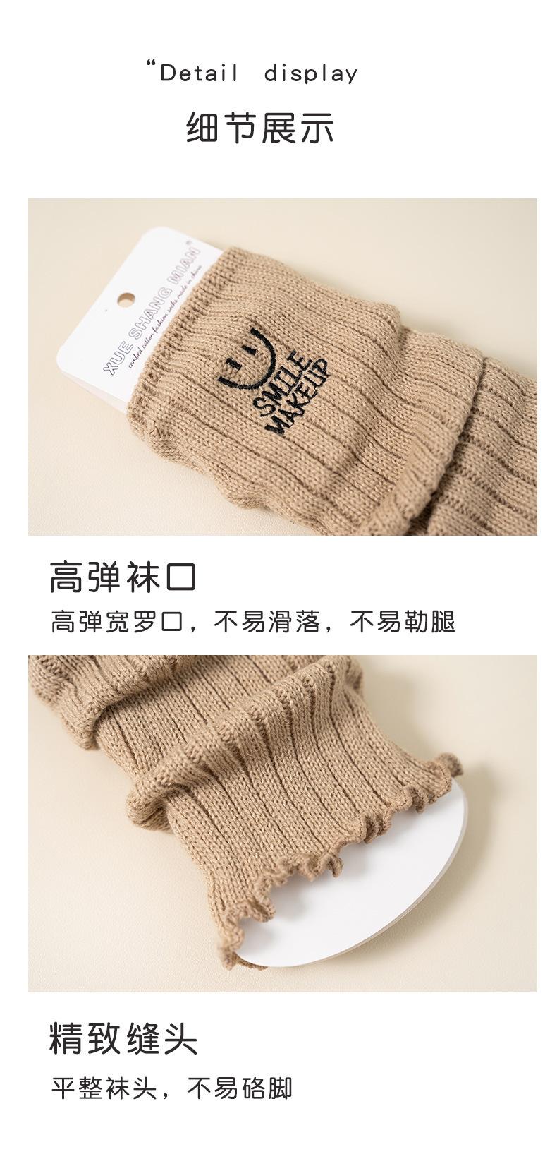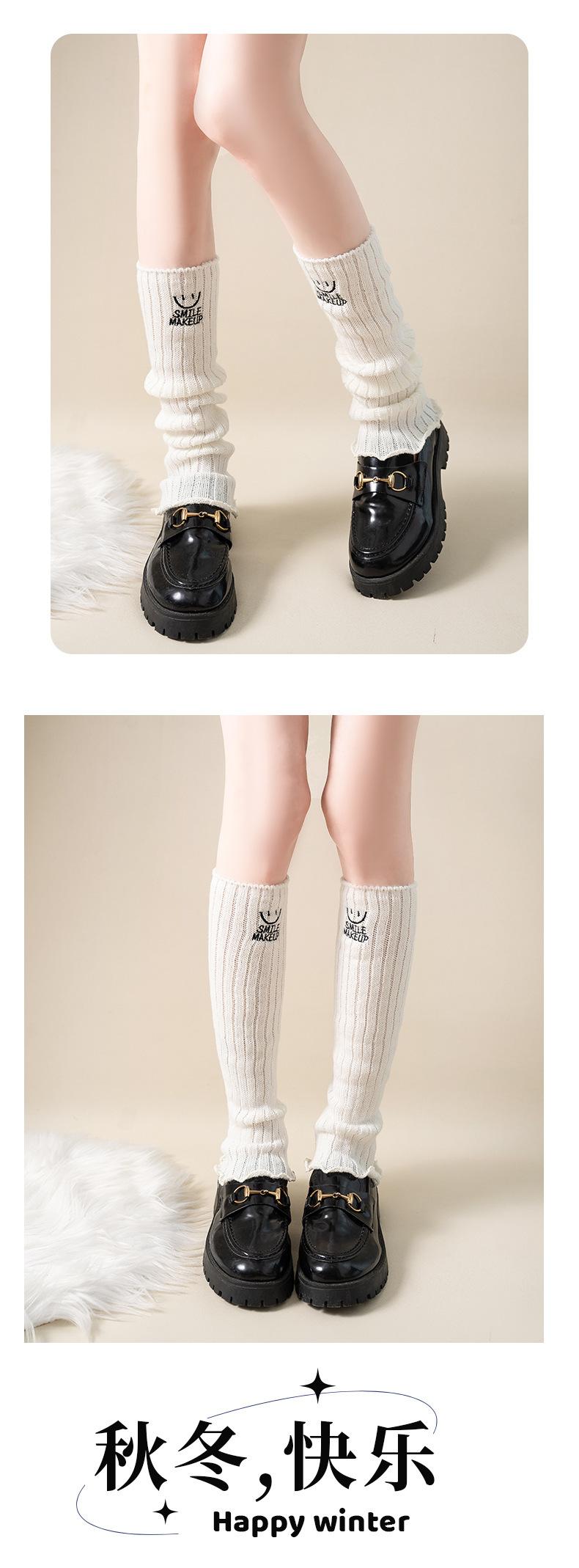 Calcetines apilados para mujer, otoño e invierno, medias adelgazantes para chicas calientes, bordadas con cara sonriente, cubiertas de piernas de lana de becerro japonesa, fábrica al por mayor