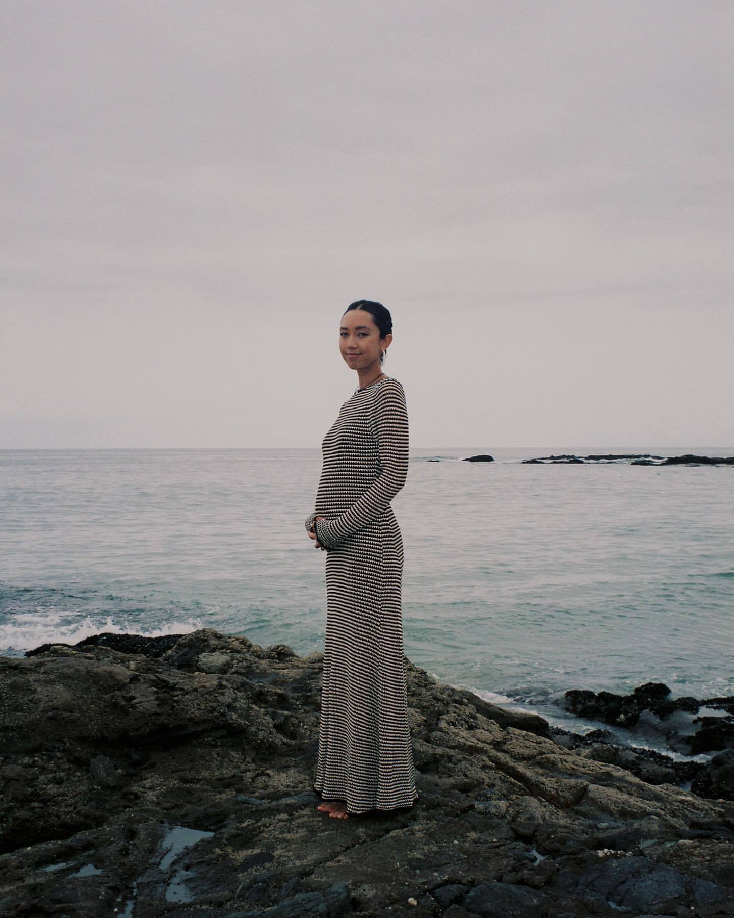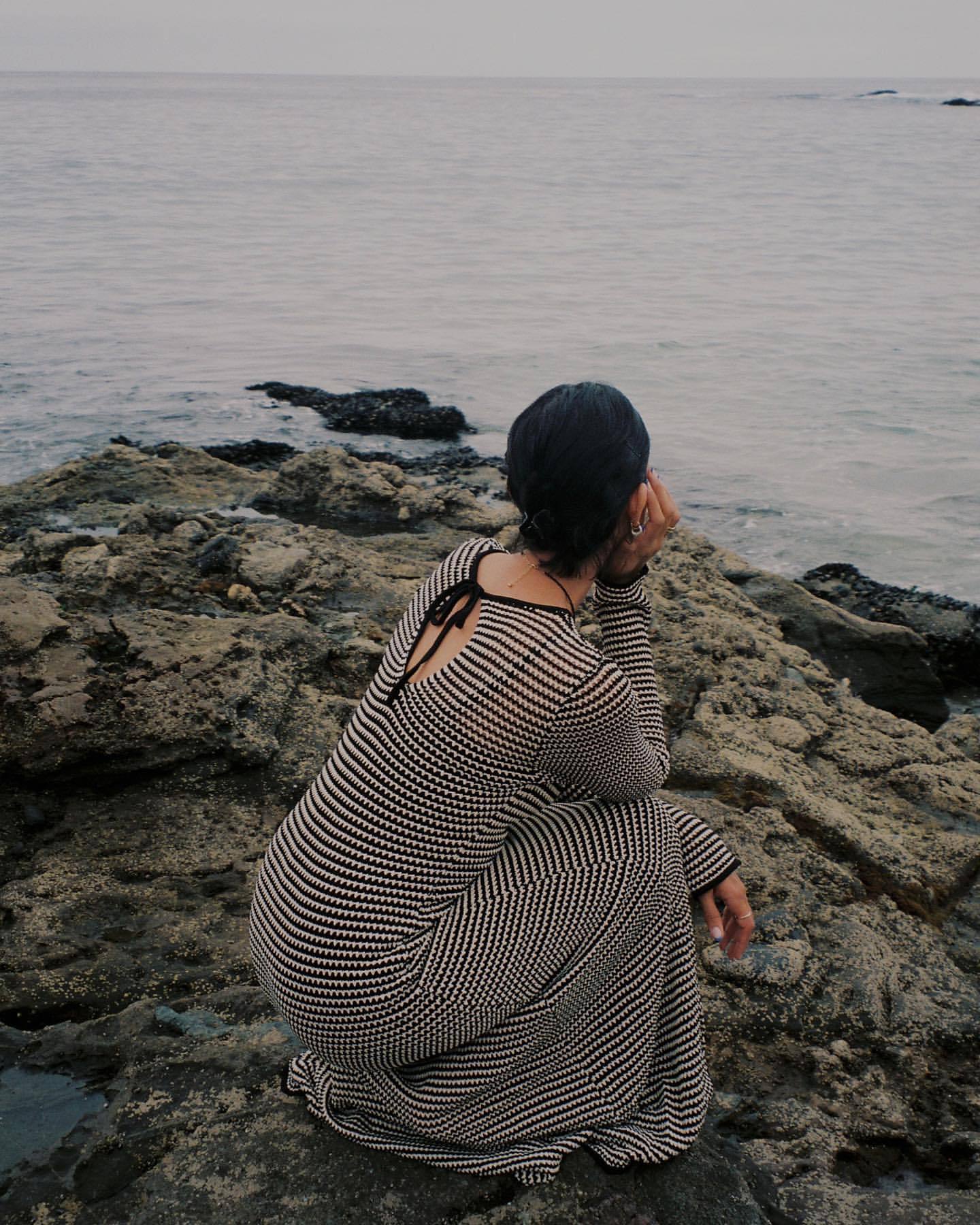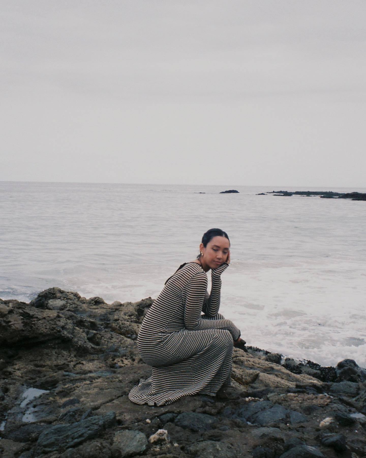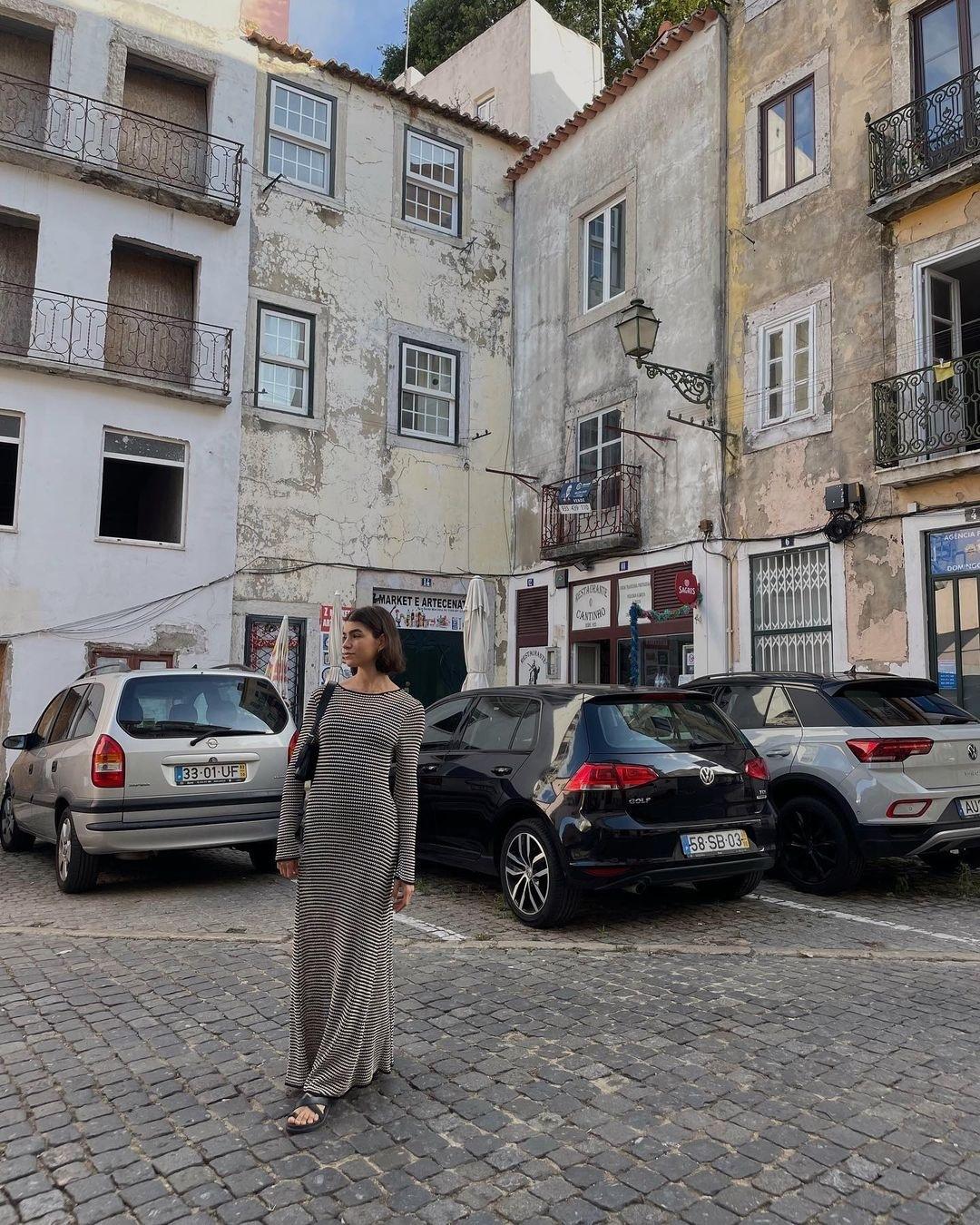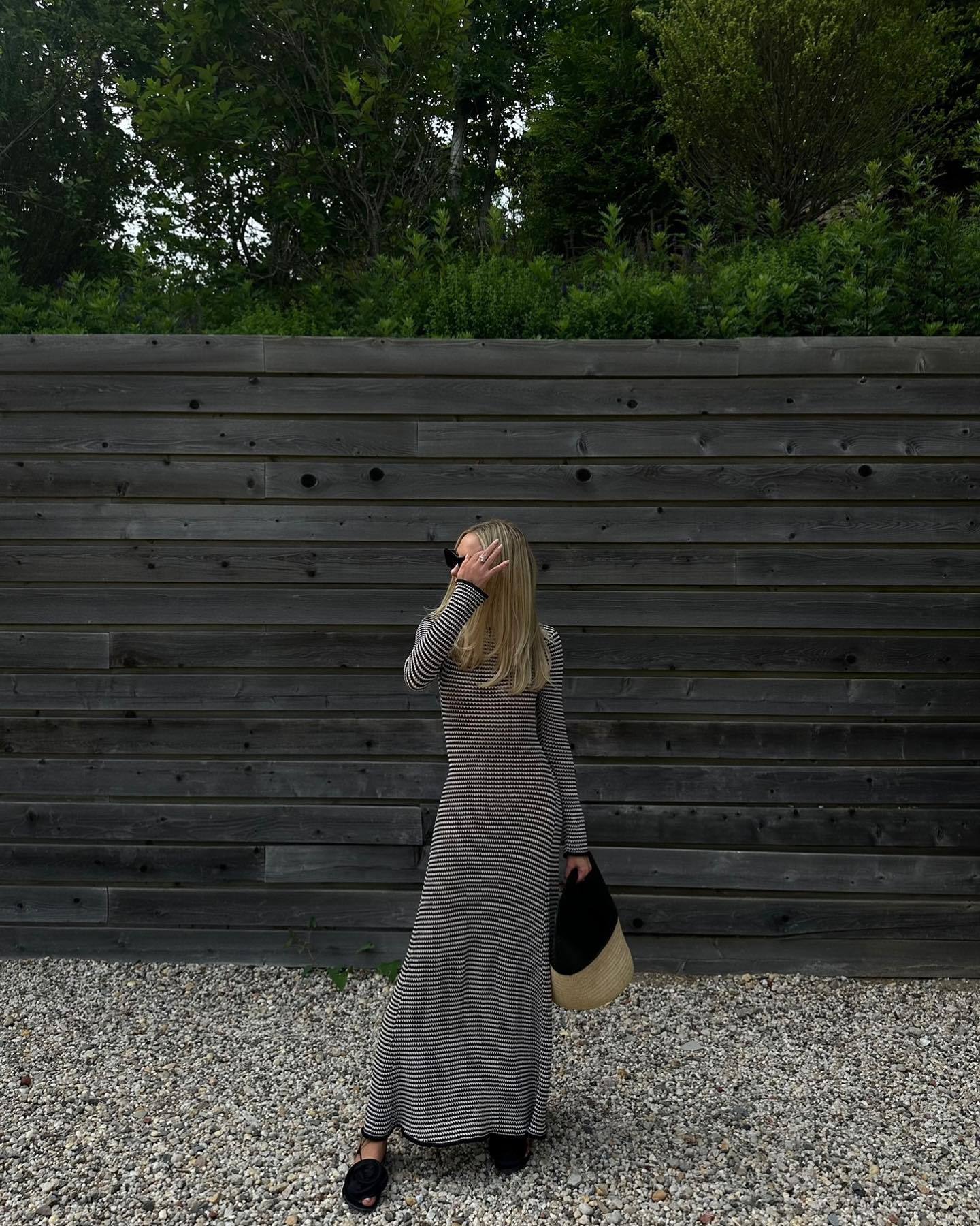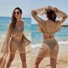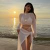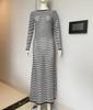 2023 Vestido Largo Sexy de Vacaciones de Playa Estilo Europeo y Americano de Malla Rayada Tejido Calado Vestido Largo Blusa Verano